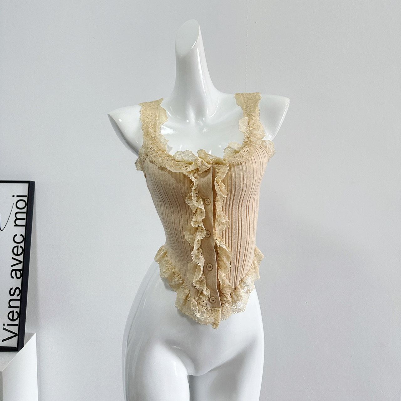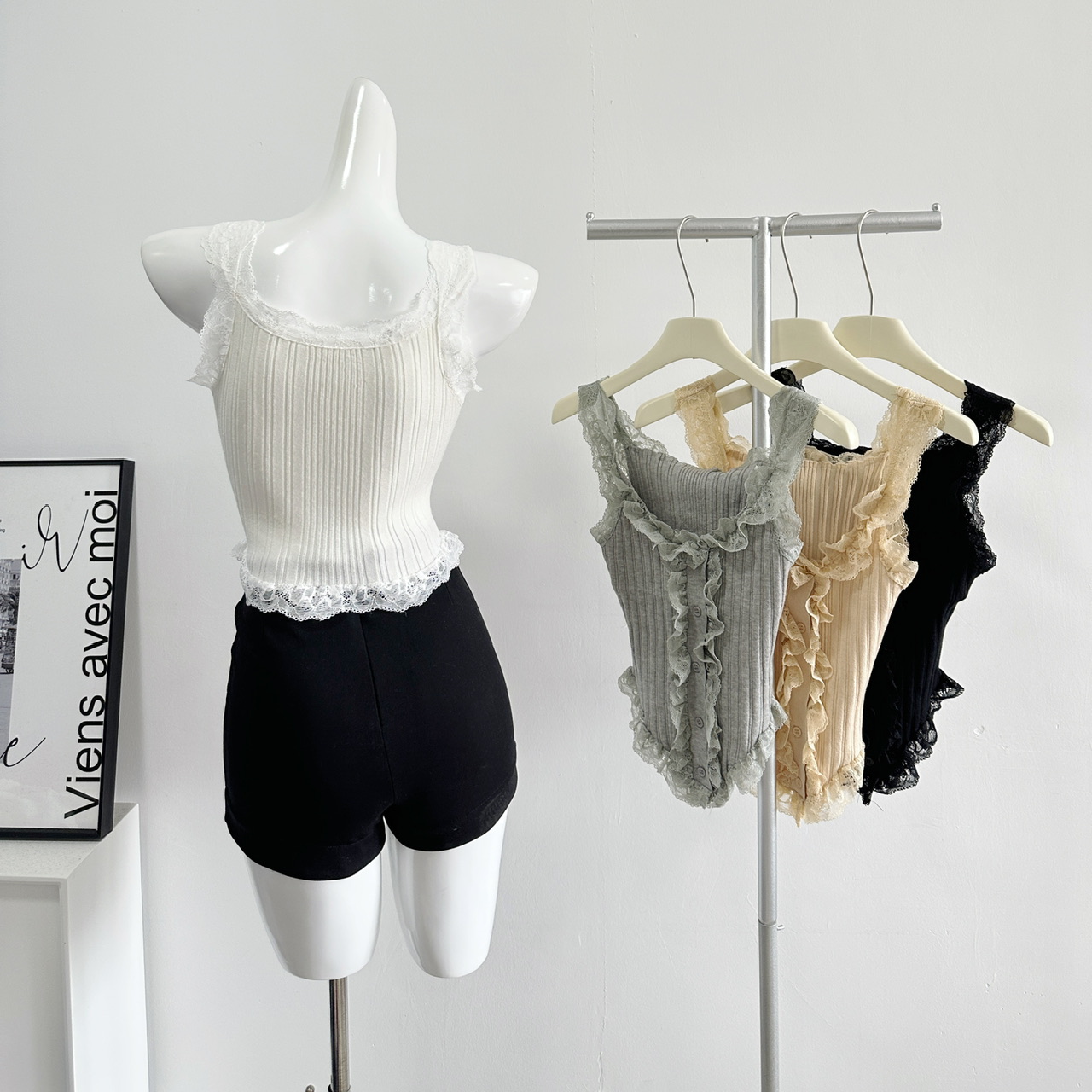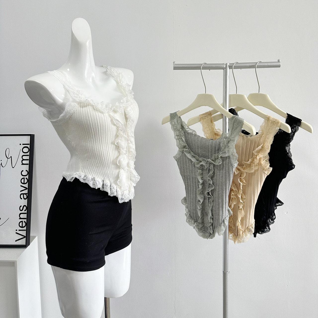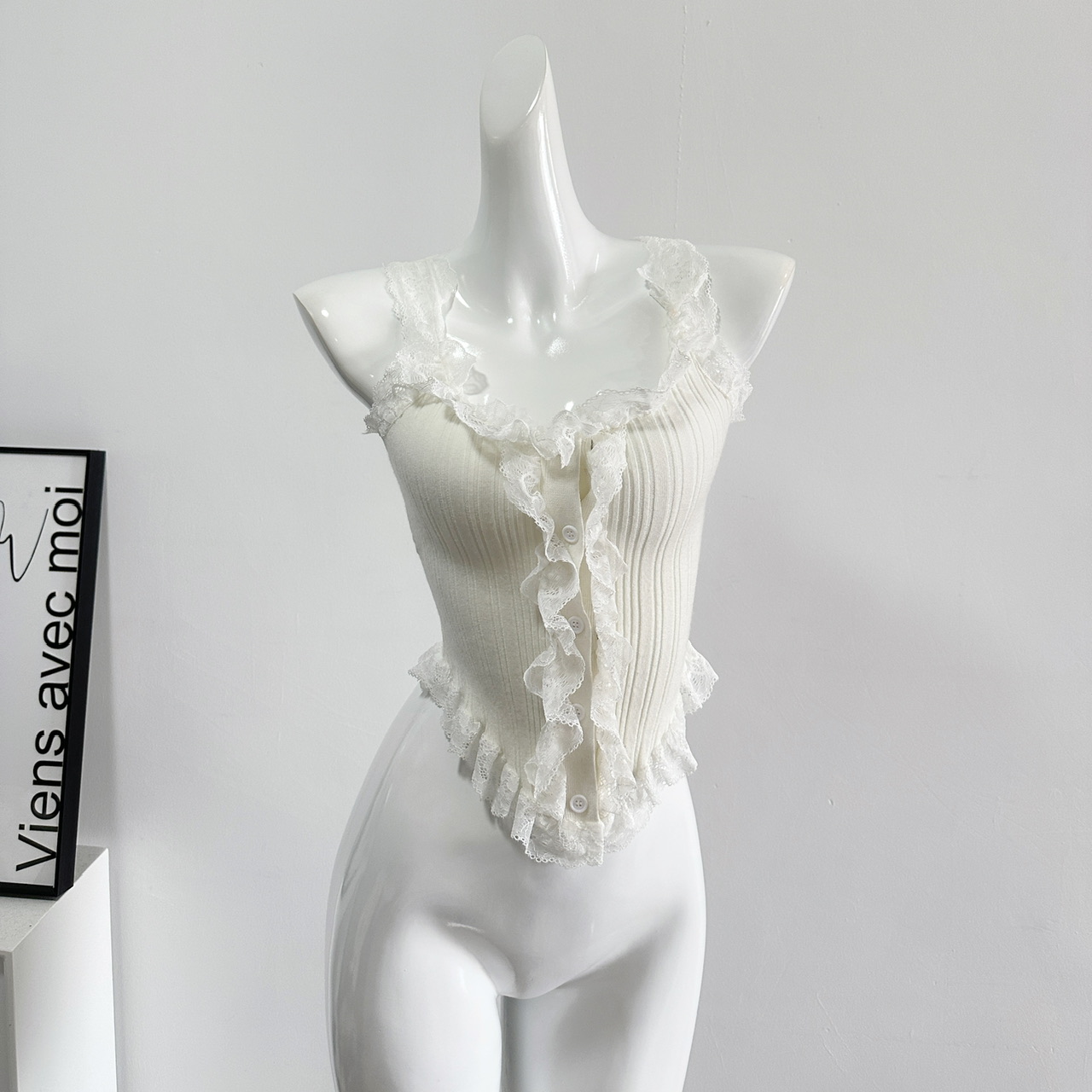 POPW自製 甜辣妹蕾絲針織吊帶背心女夏2025新款小衆外穿短款上衣