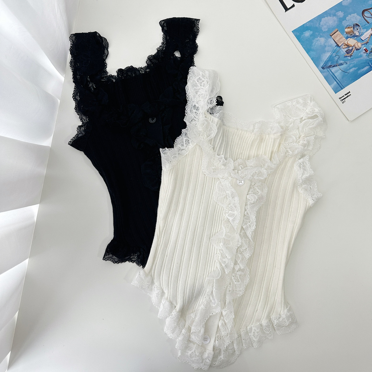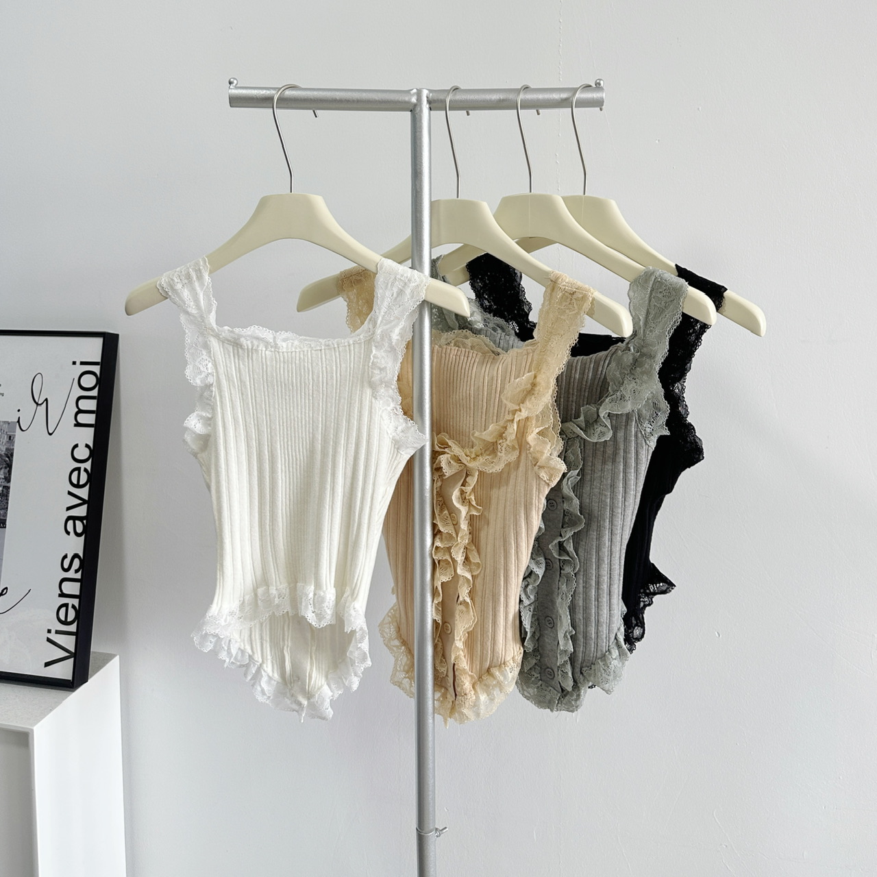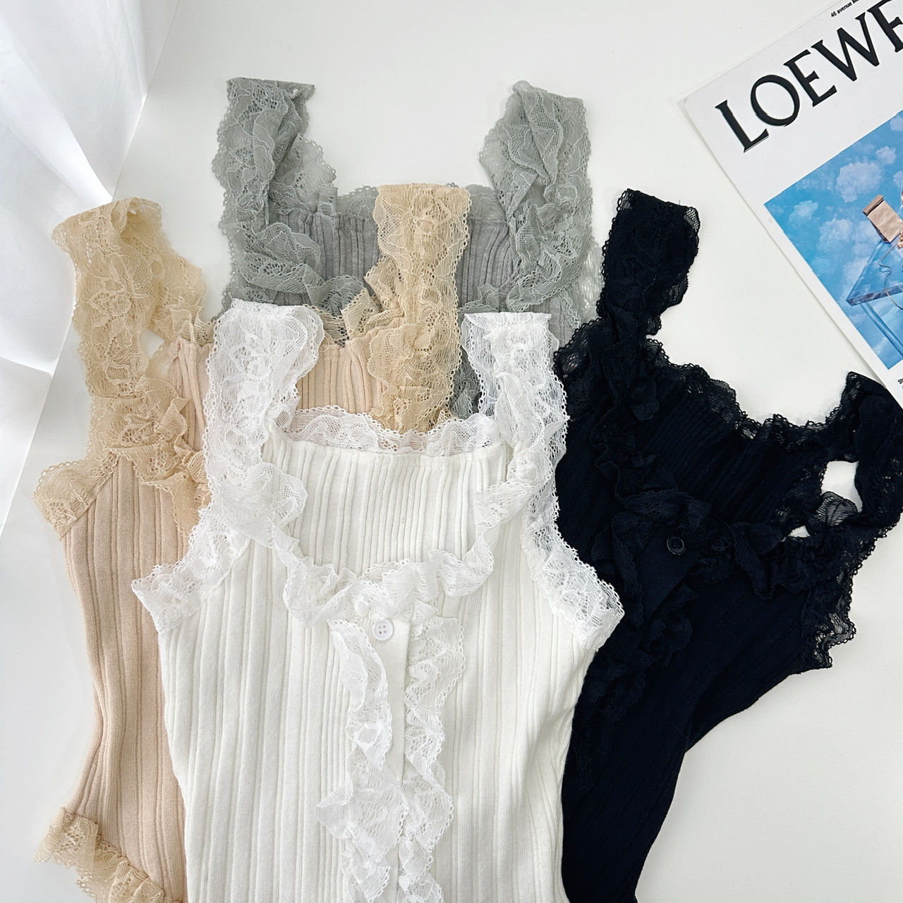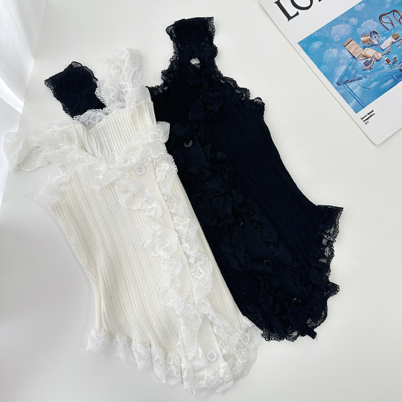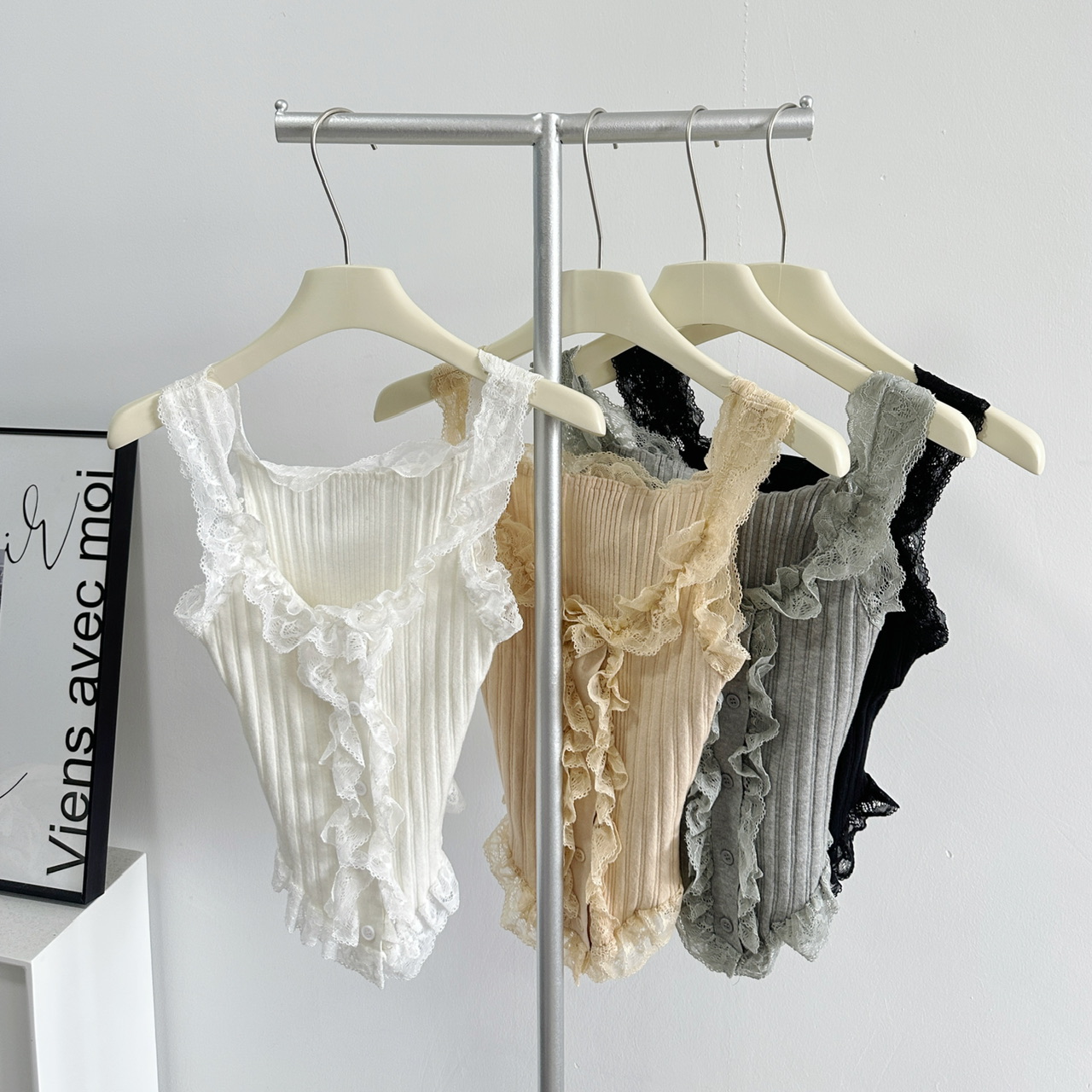 POPW自製 甜辣妹蕾絲針織吊帶背心女夏2025新款小衆外穿短款上衣