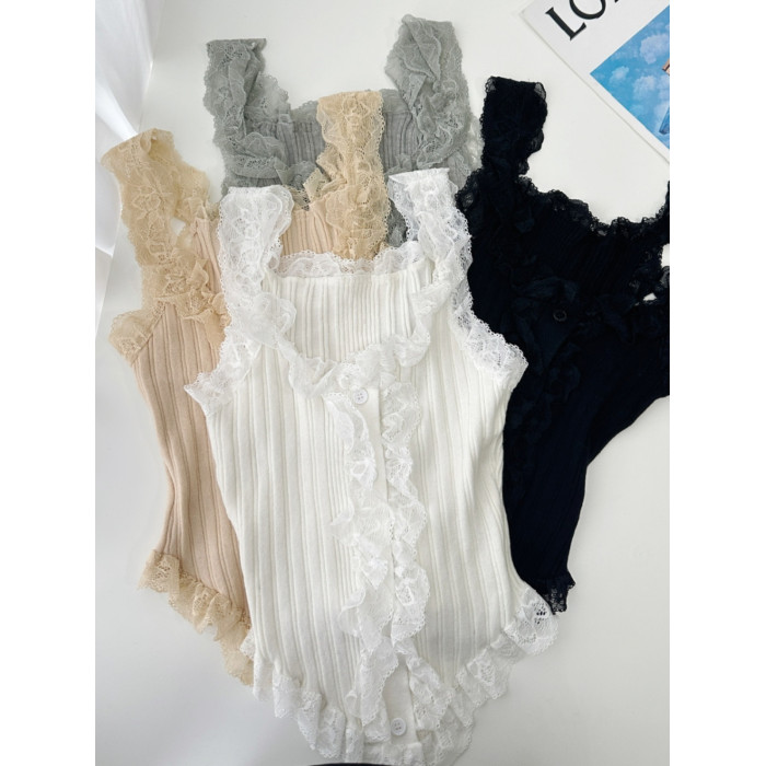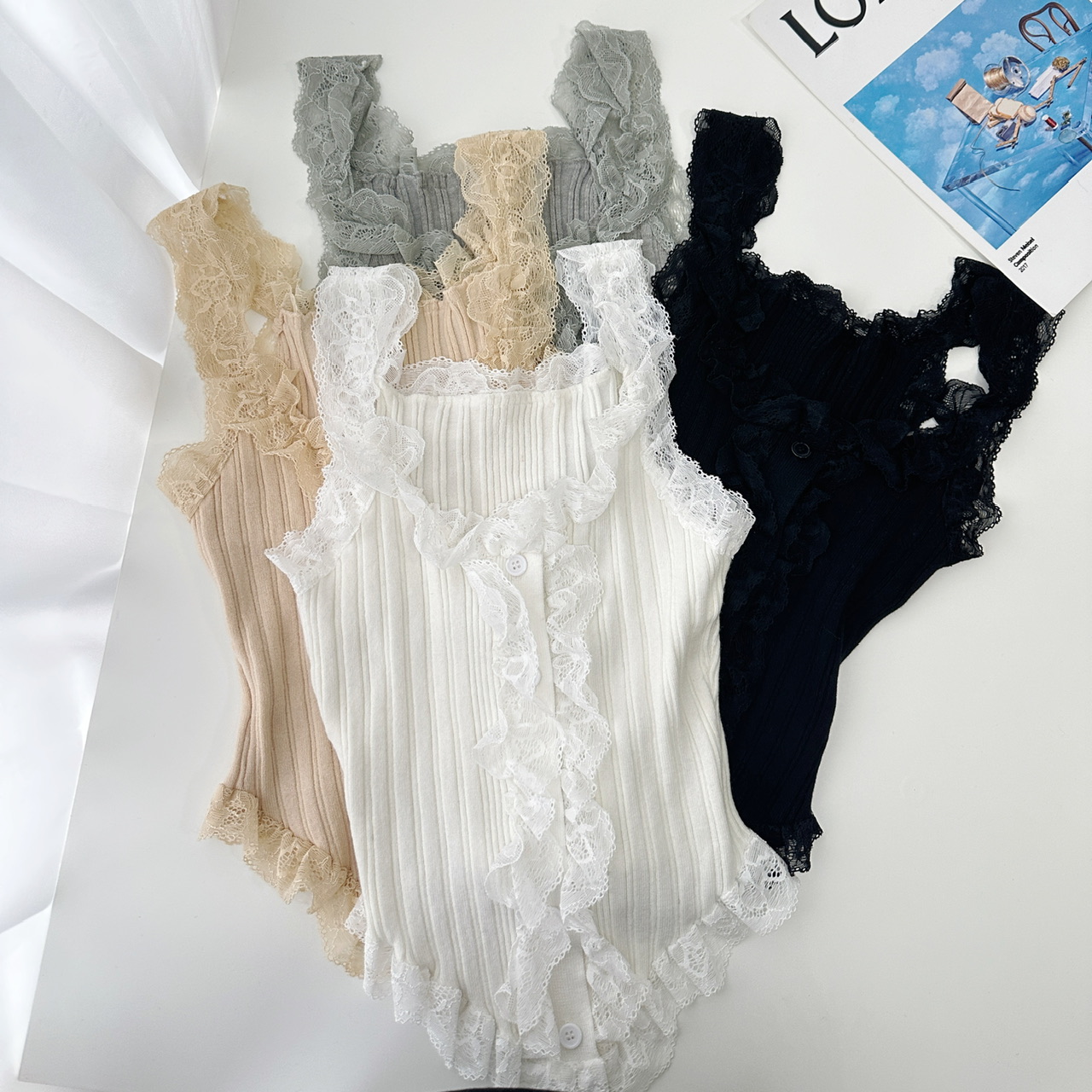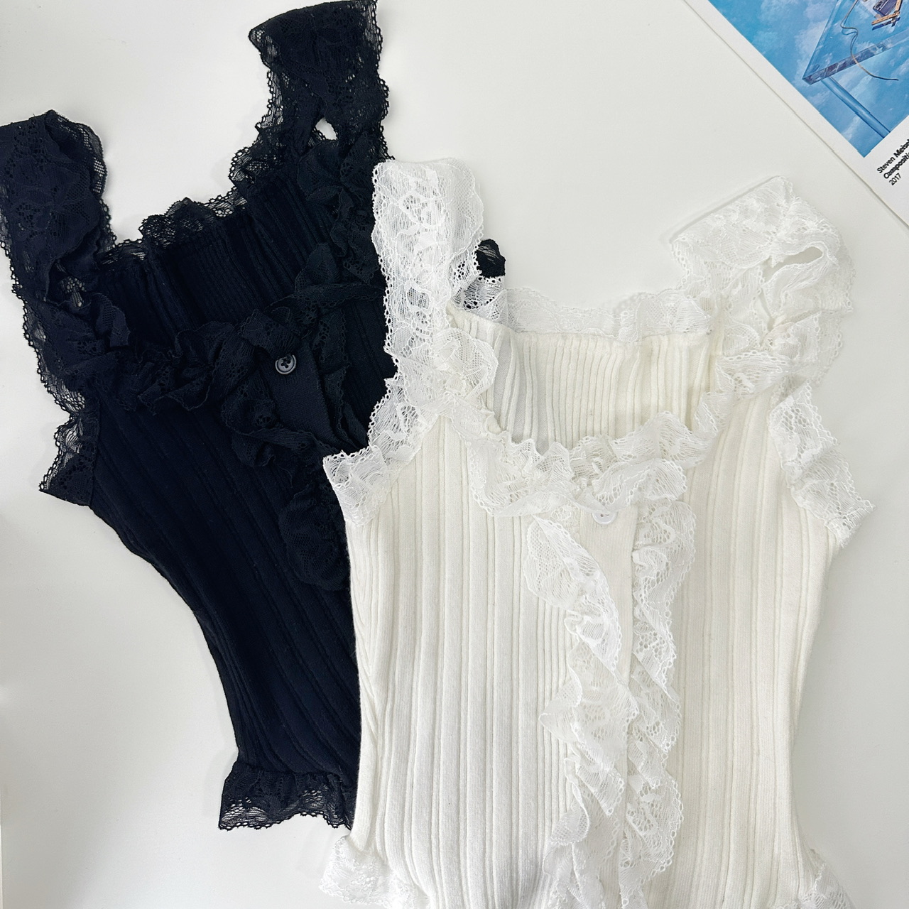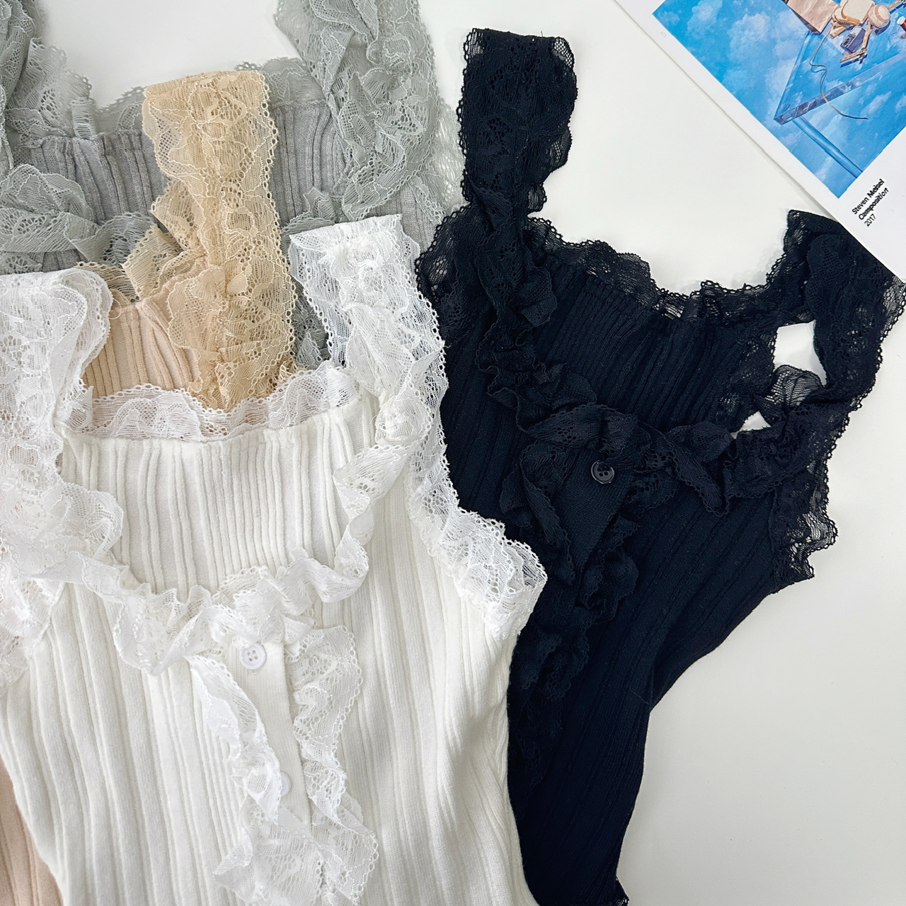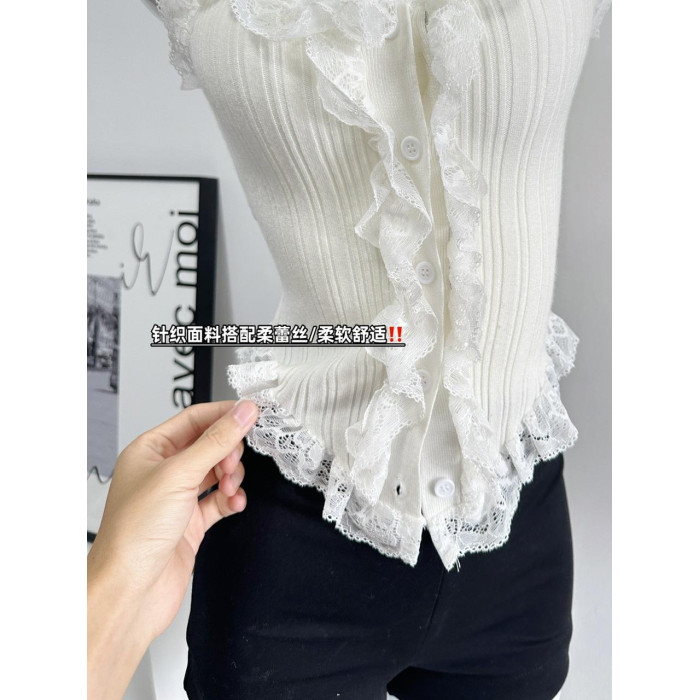 POPW自製 甜辣妹蕾絲針織吊帶背心女夏2025新款小衆外穿短款上衣