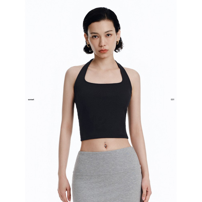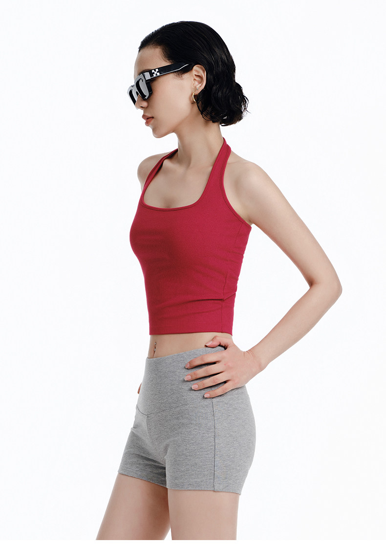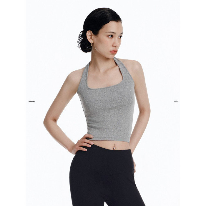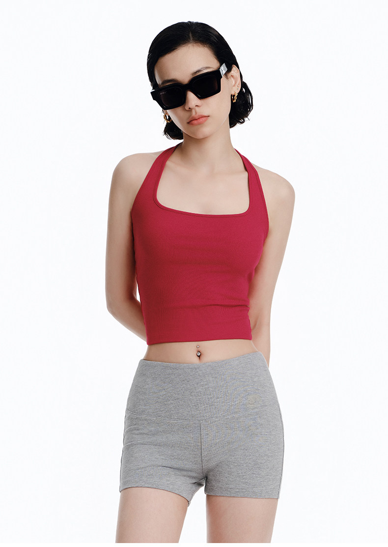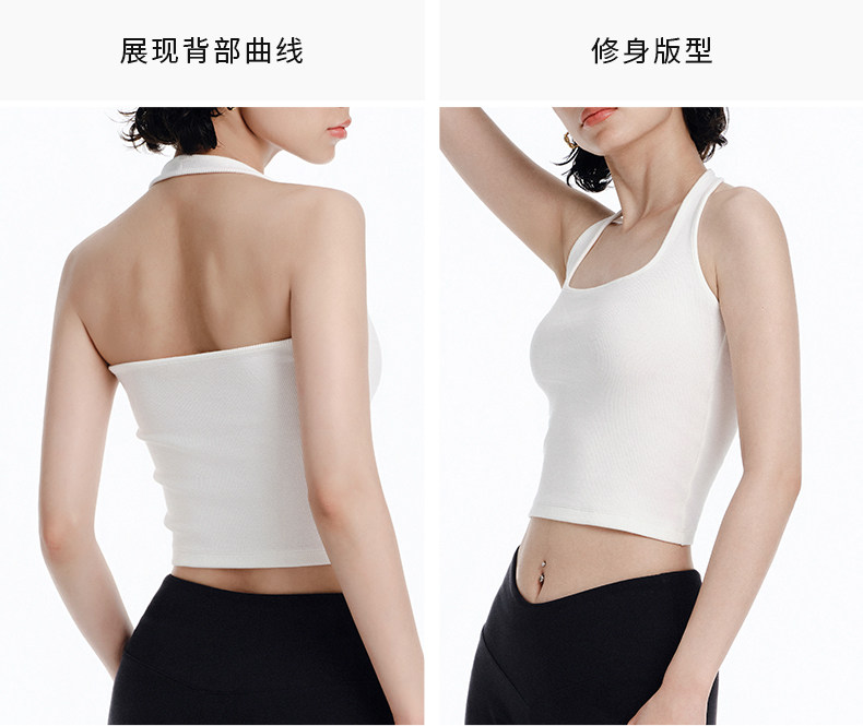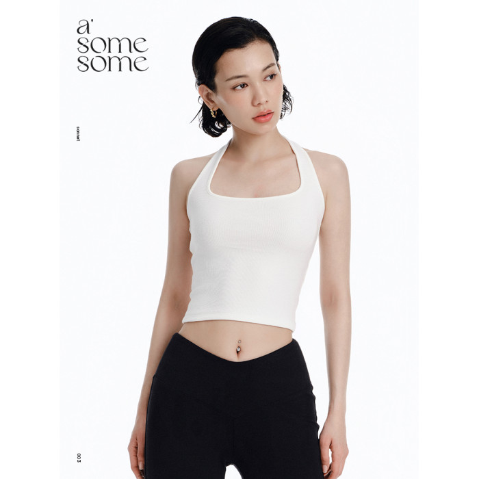 asomesome美式辣妹白色掛脖吊帶背心女春夏紅色掛脖運動內衣上衣