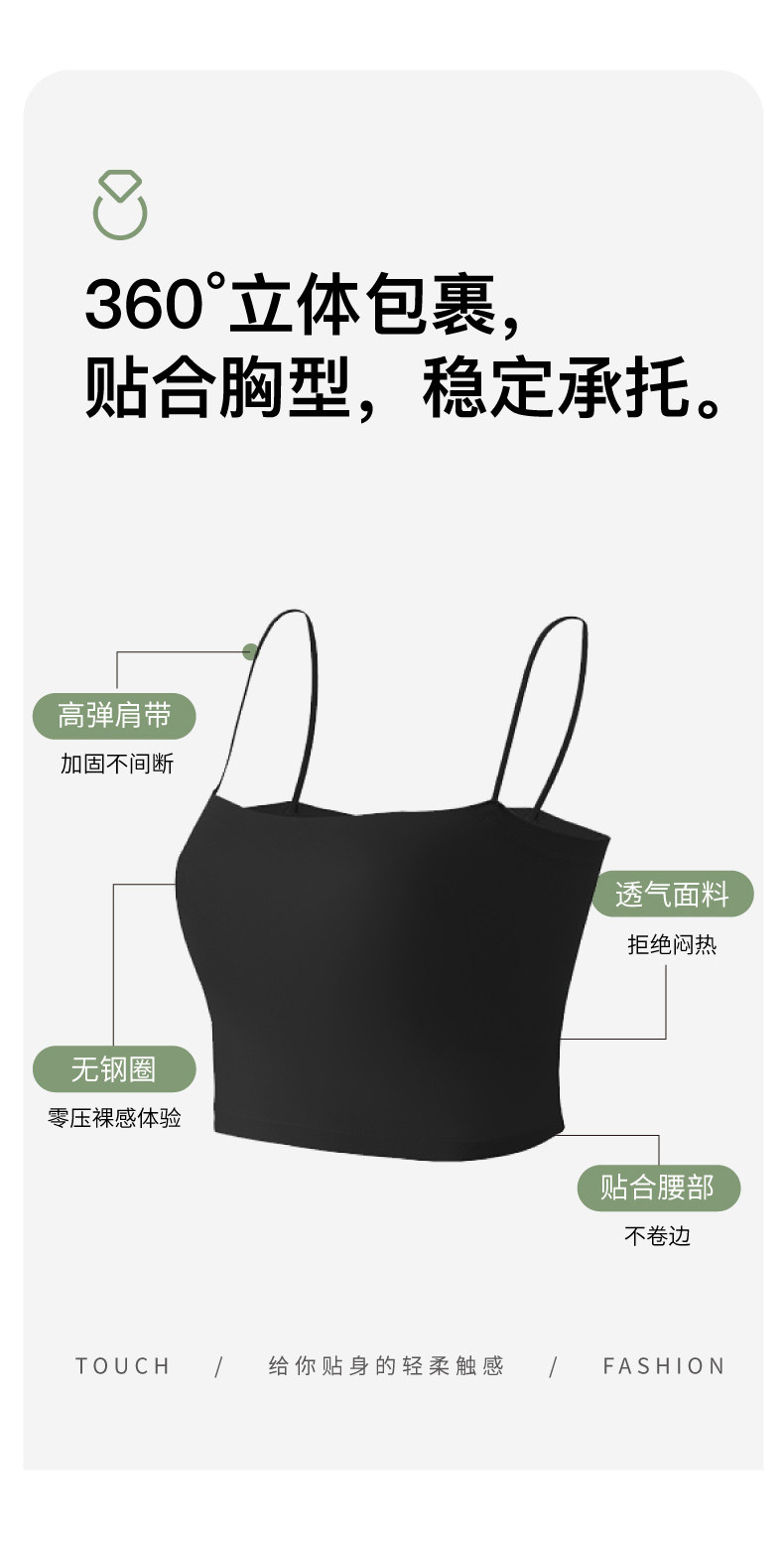 吊帶背心女2025新款外穿黑白色內搭美背文胸一體式帶胸墊打底上衣