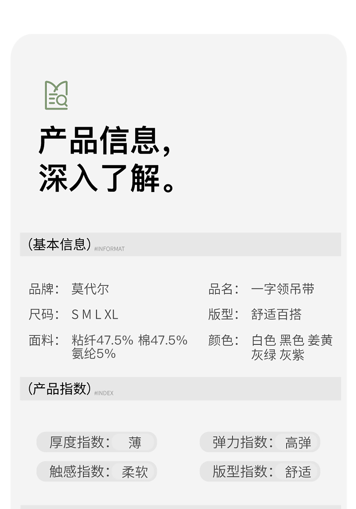 材質成分 粘膠纖維(粘纖)46.5% 棉46.5% 聚氨酯彈性纖維(氨綸)7%