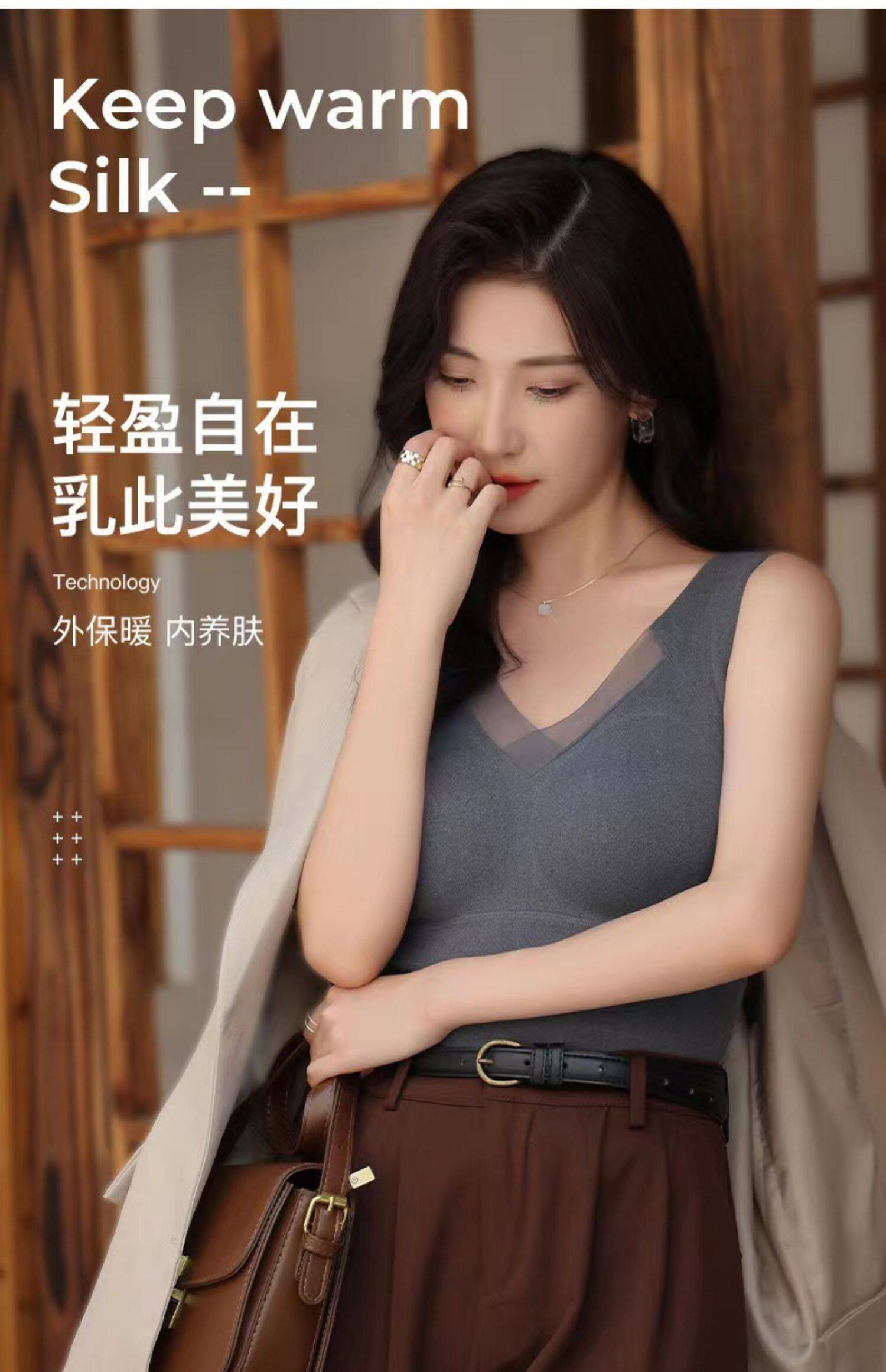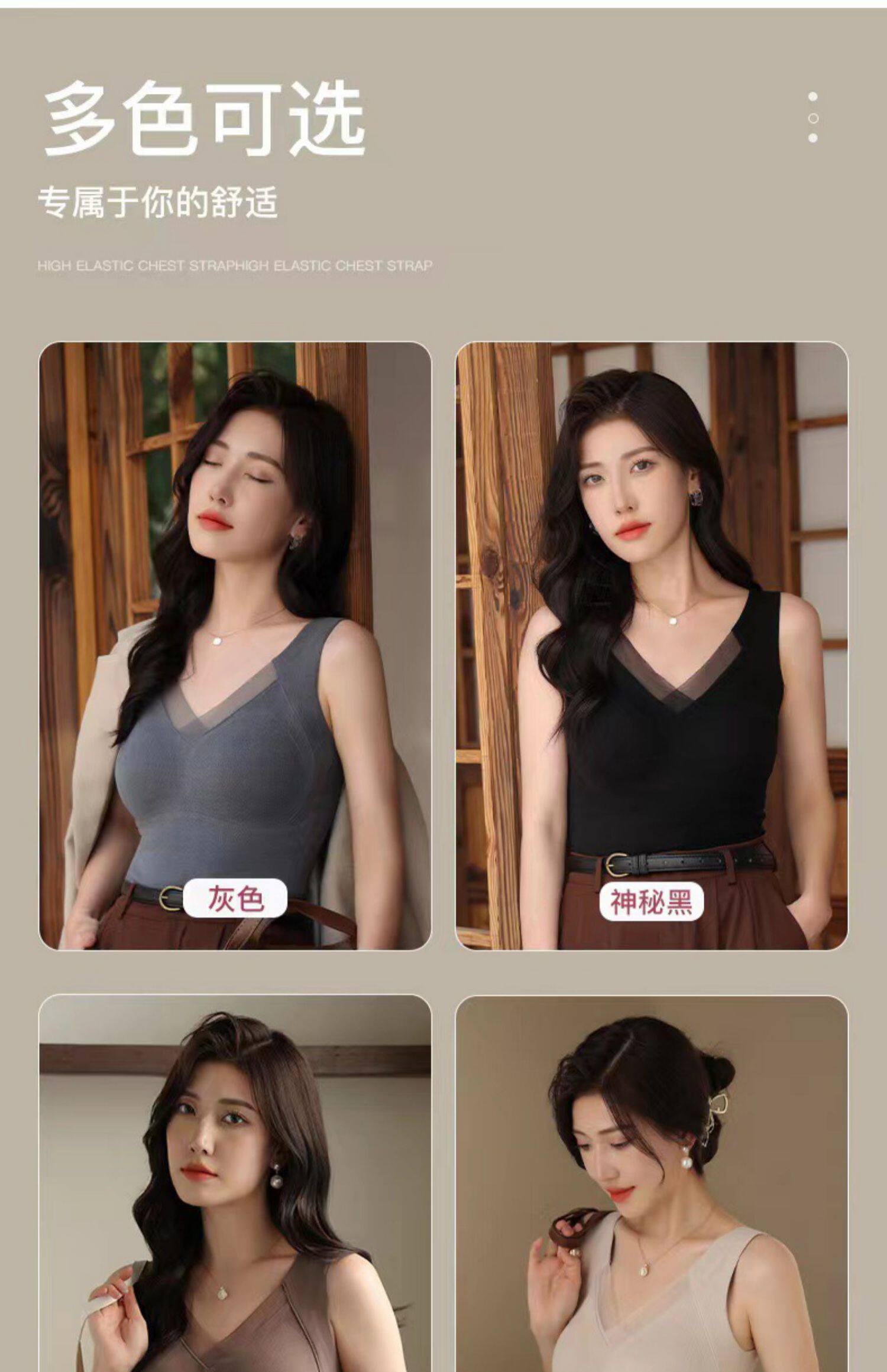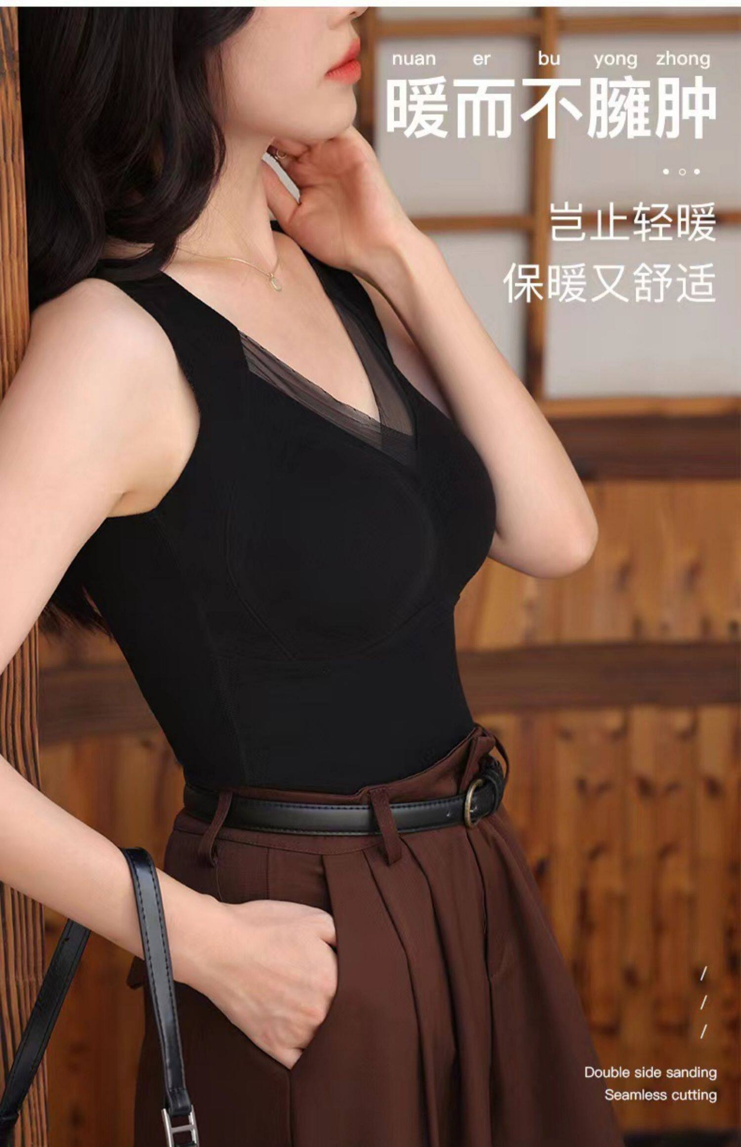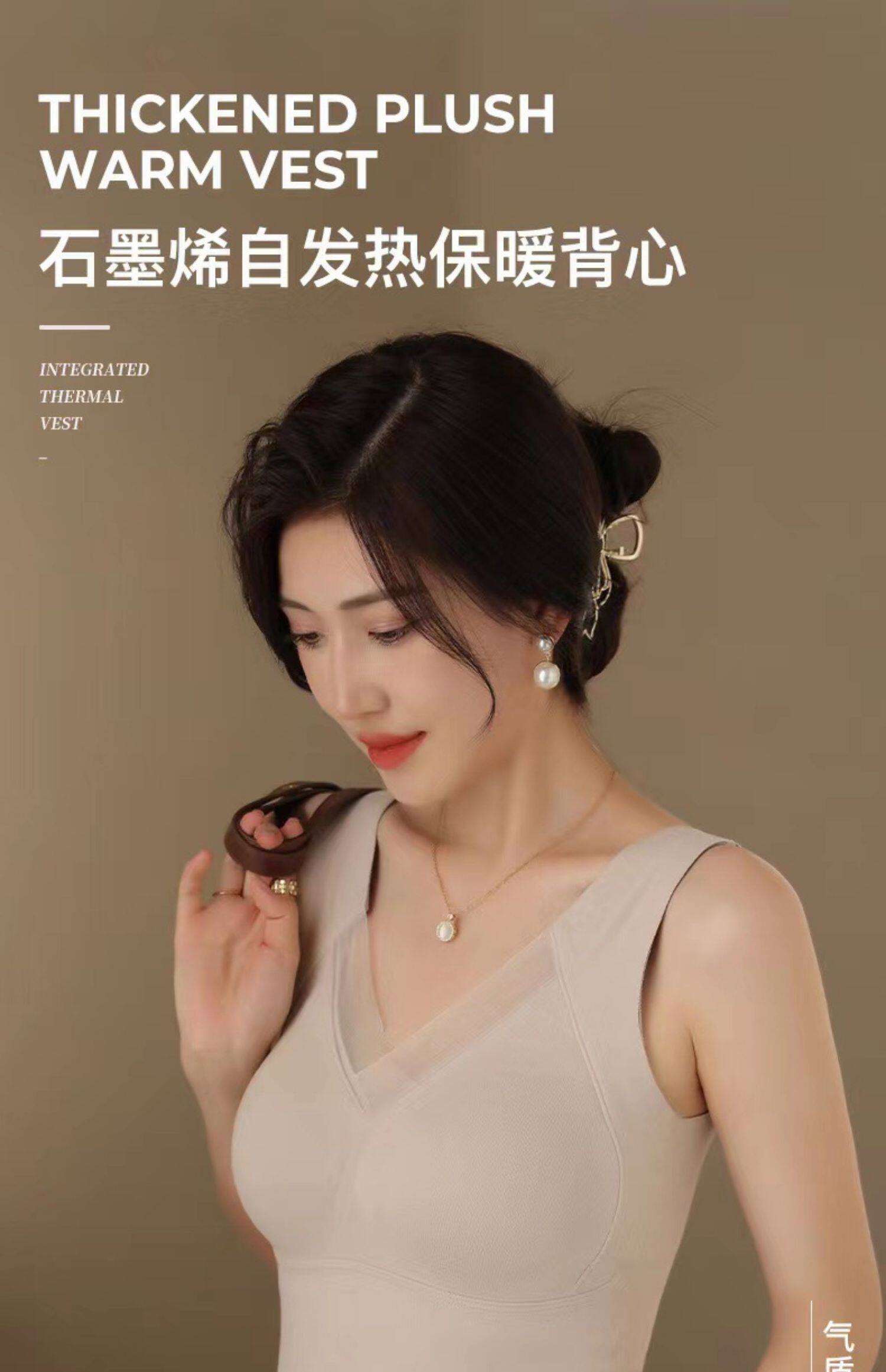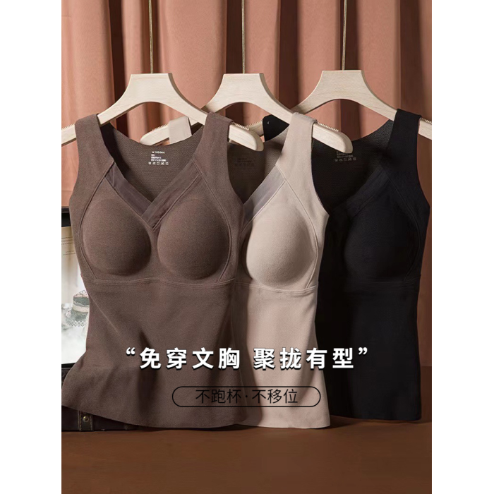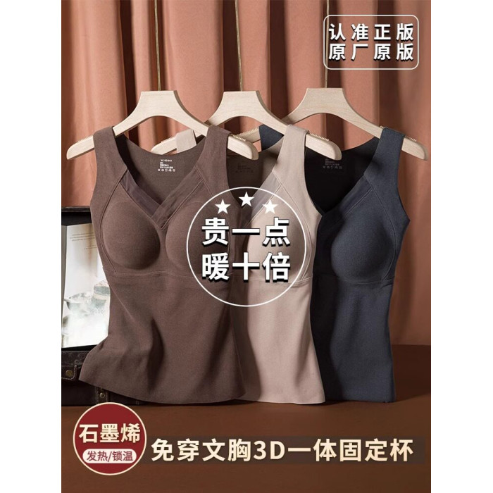 石墨烯保暖吊帶背心女2025冬季加絨加厚帶胸墊一體固定杯內穿上衣