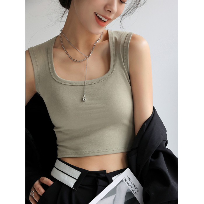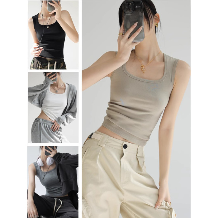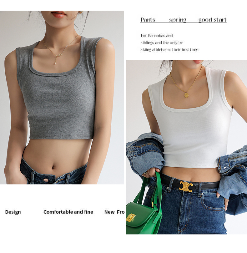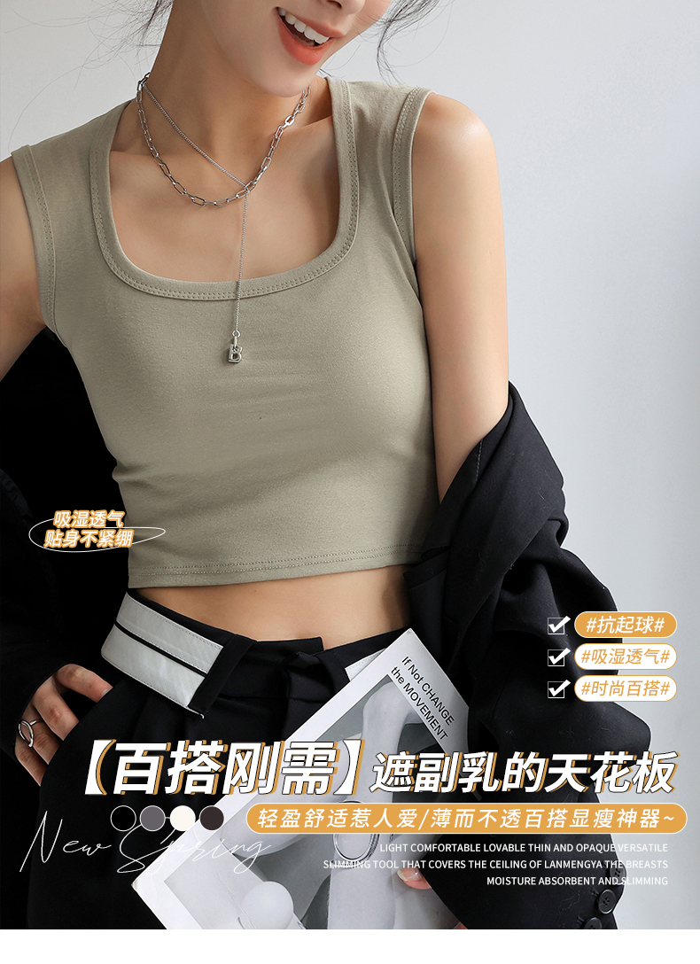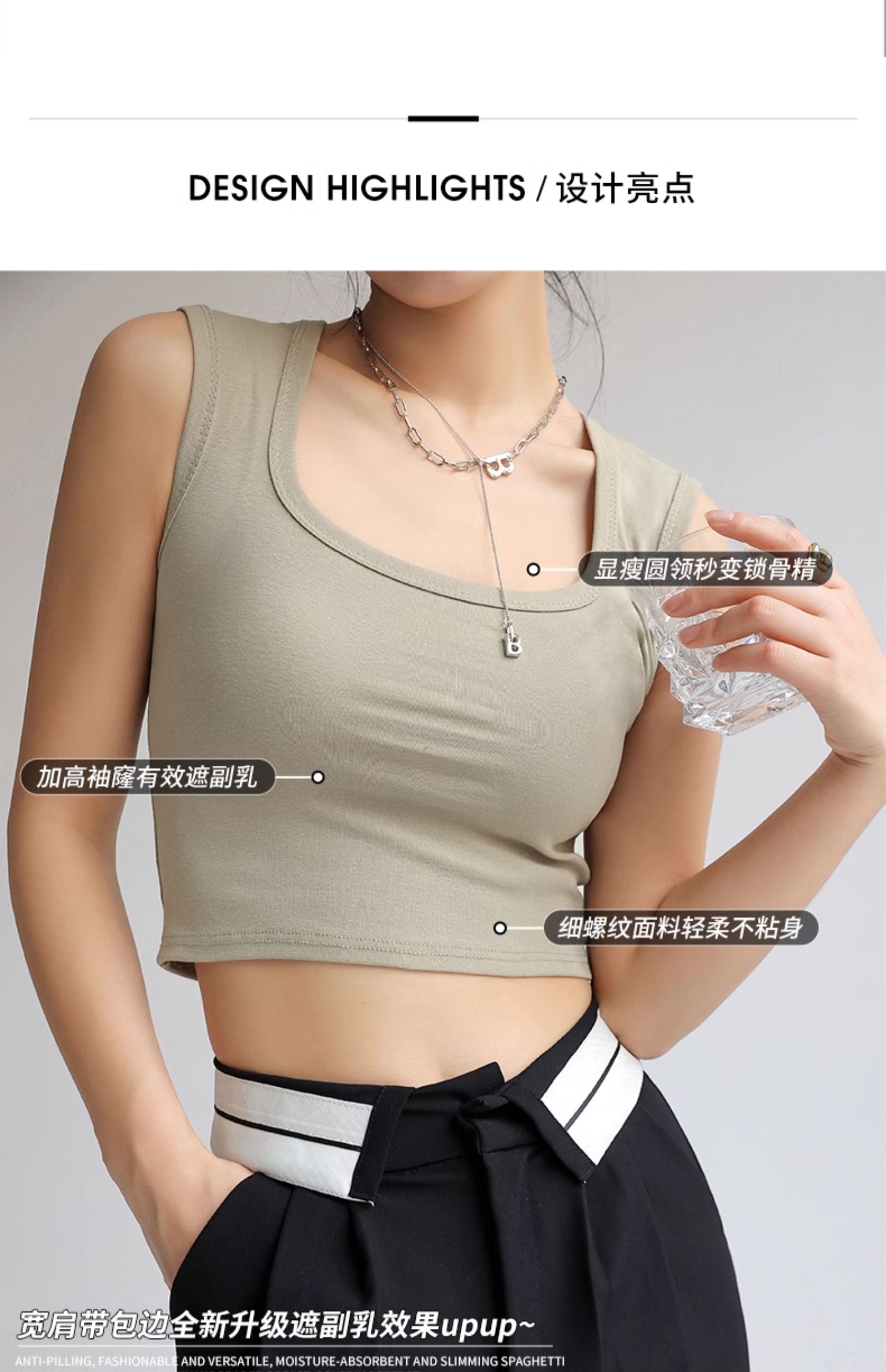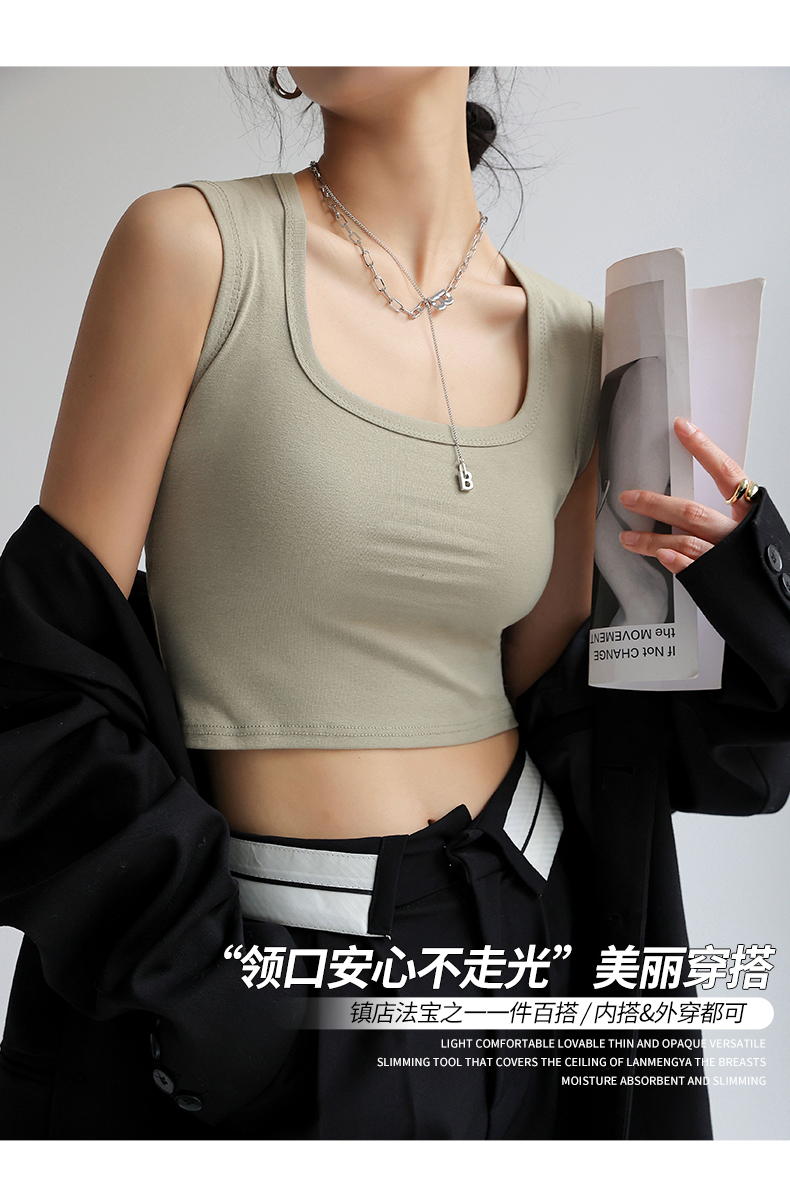 方領短款吊帶背心女內搭夏季白色辣妹寬肩純棉遮副乳外穿打底上衣