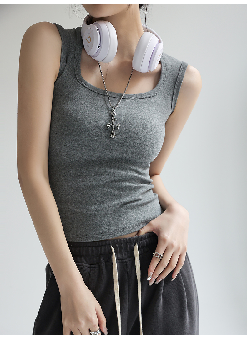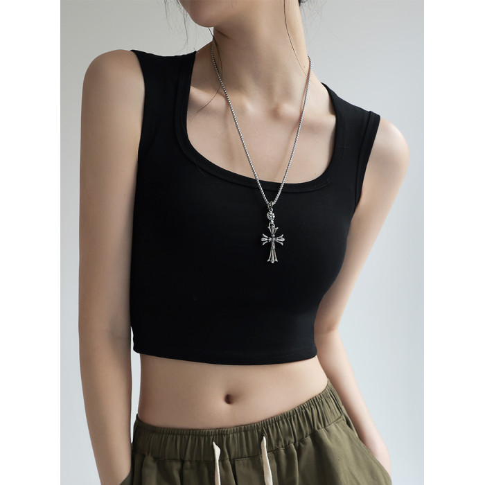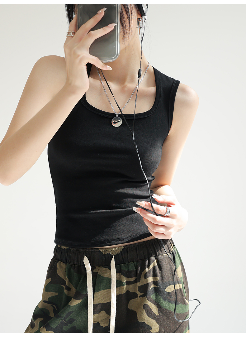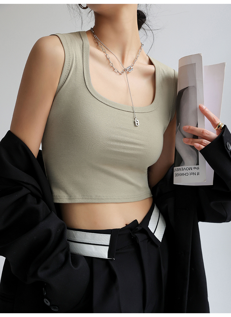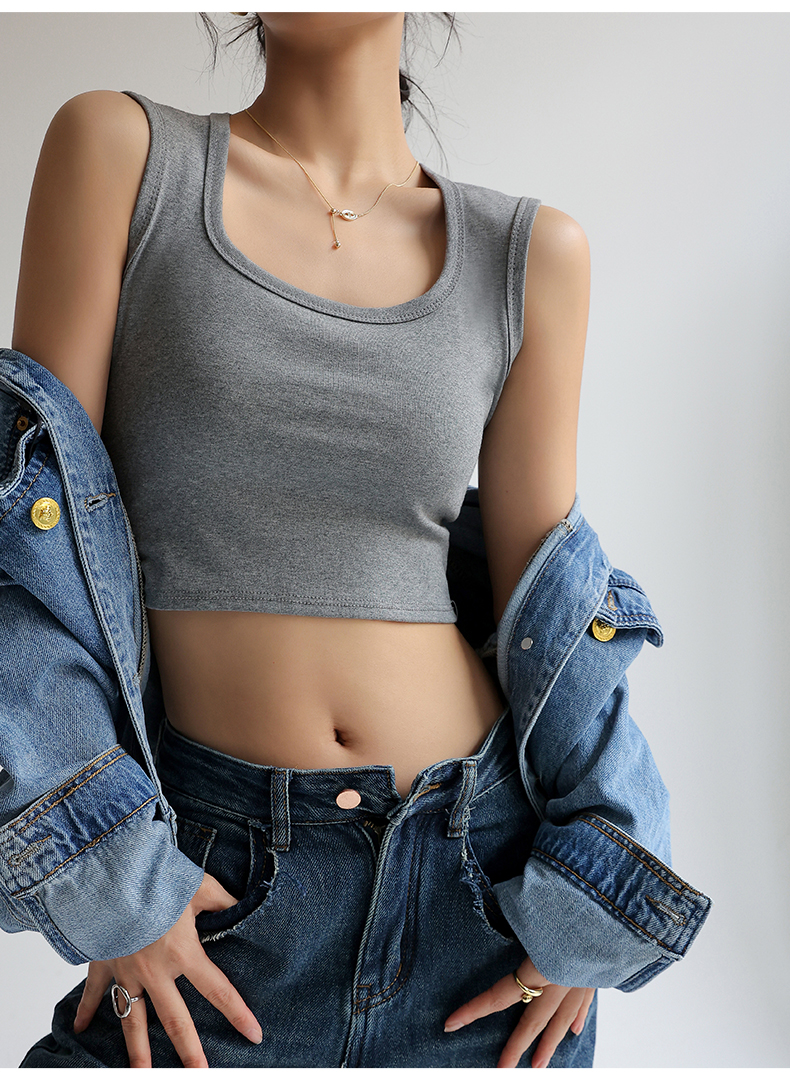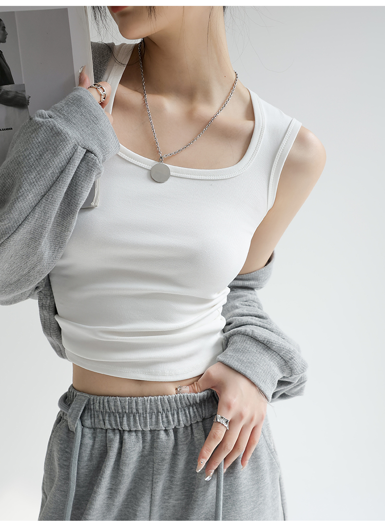 方領短款吊帶背心女內搭夏季白色辣妹寬肩純棉遮副乳外穿打底上衣