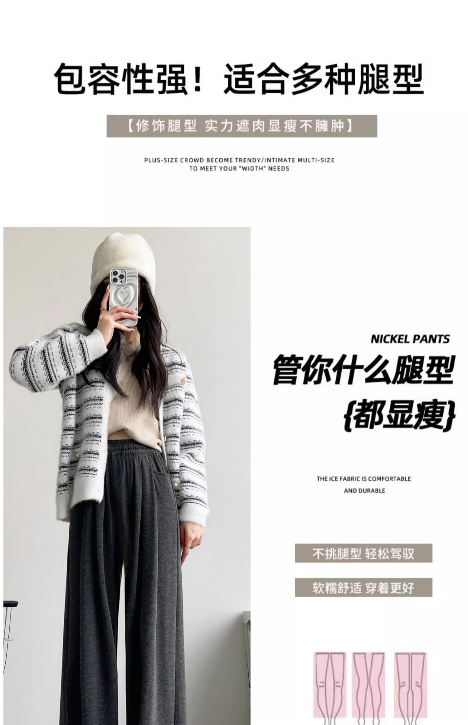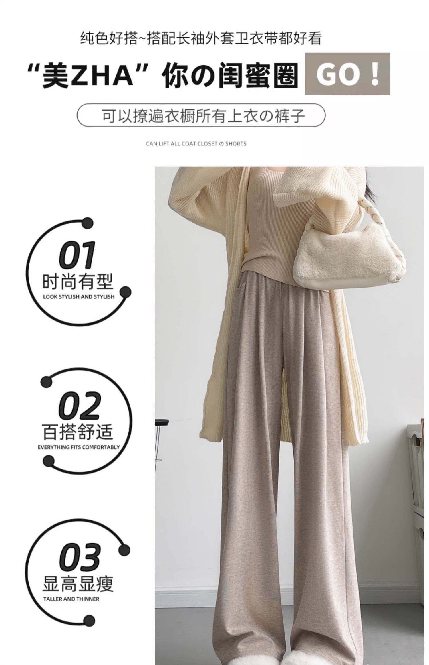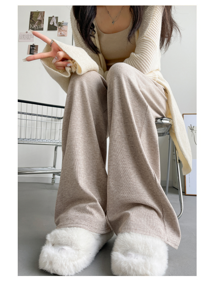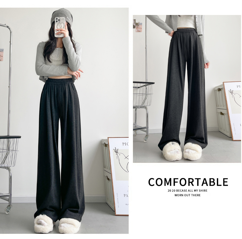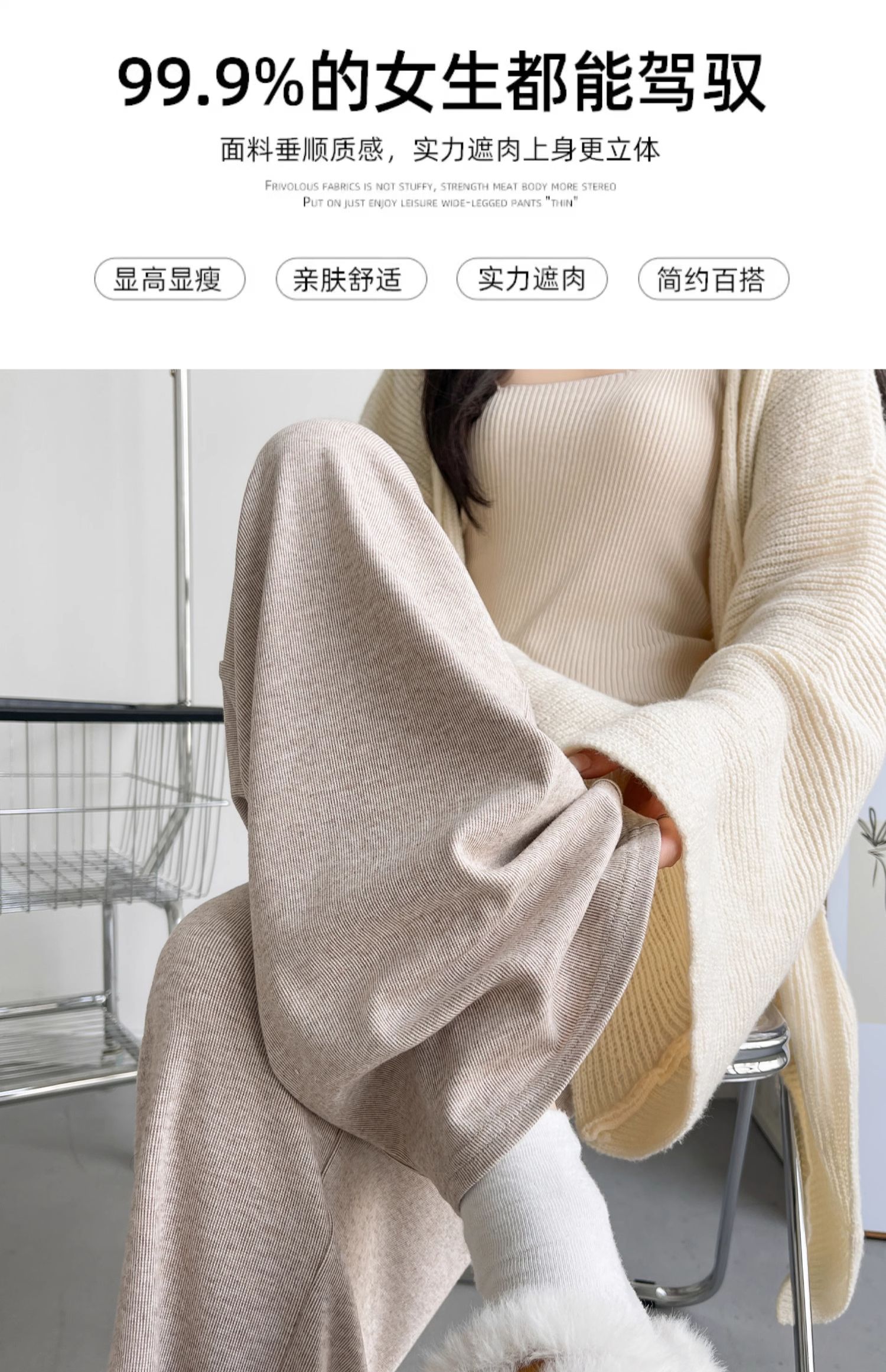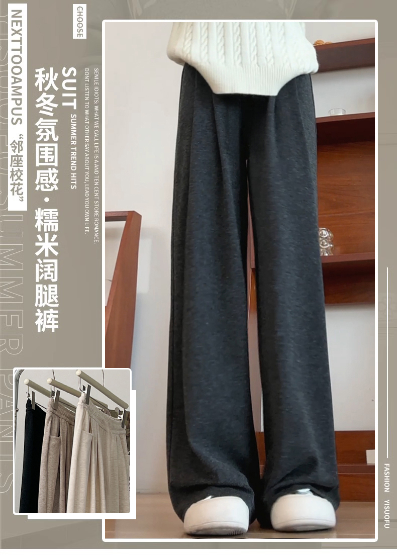 糯米褲女秋冬季2025新款寬松垂感直筒休閒慵懶小個子加絨濶腿褲子