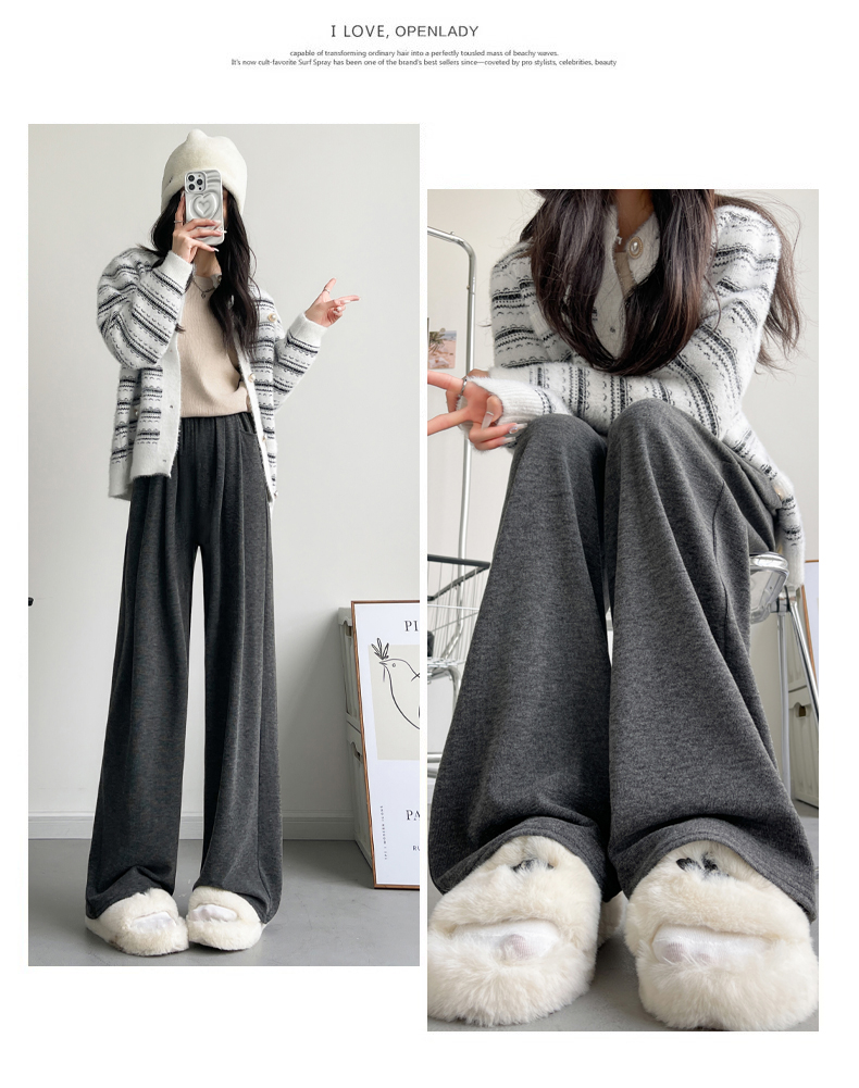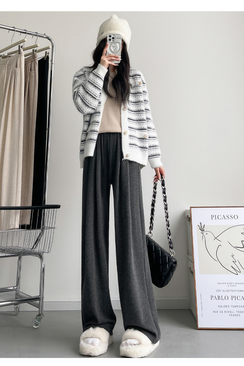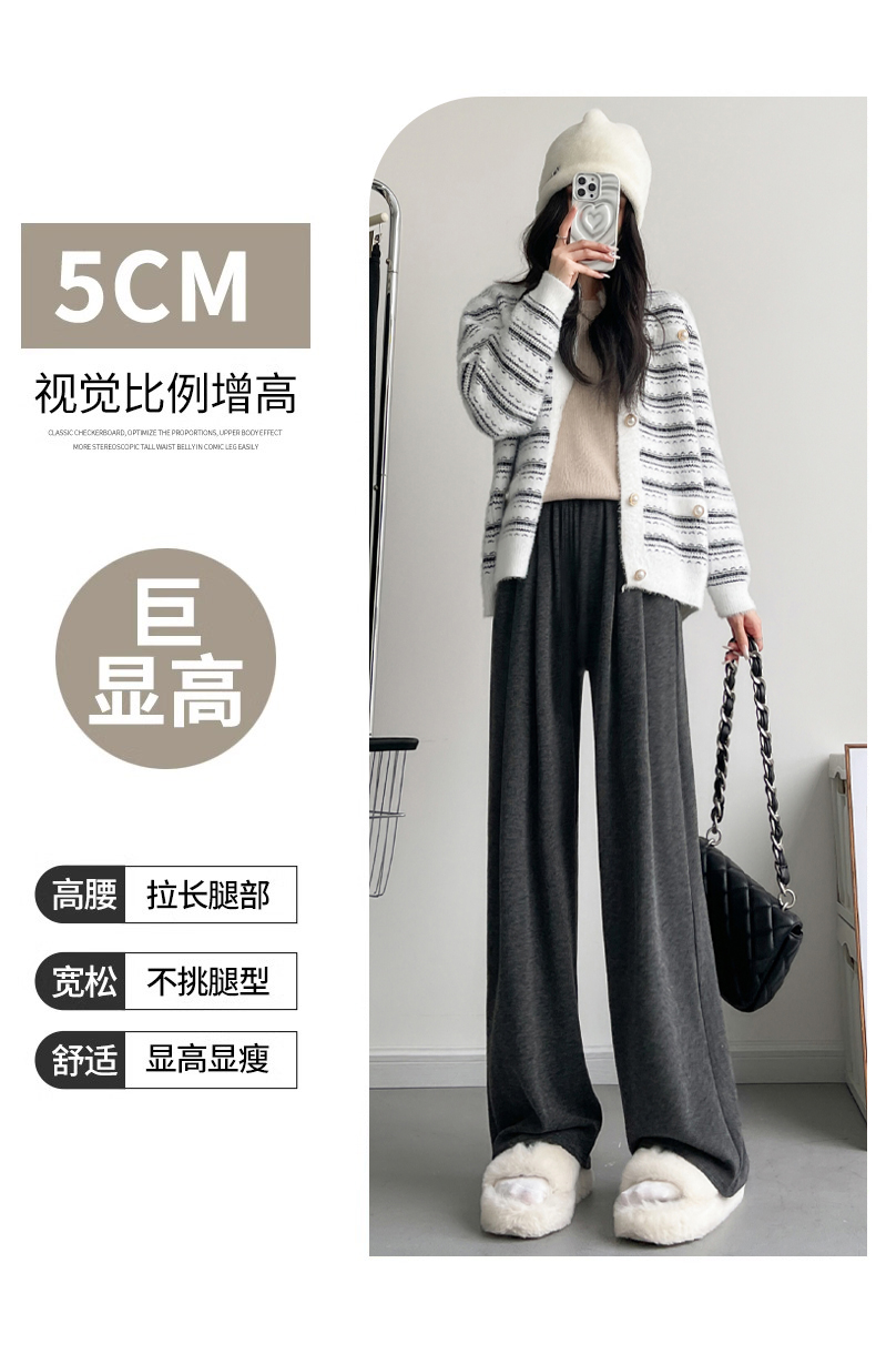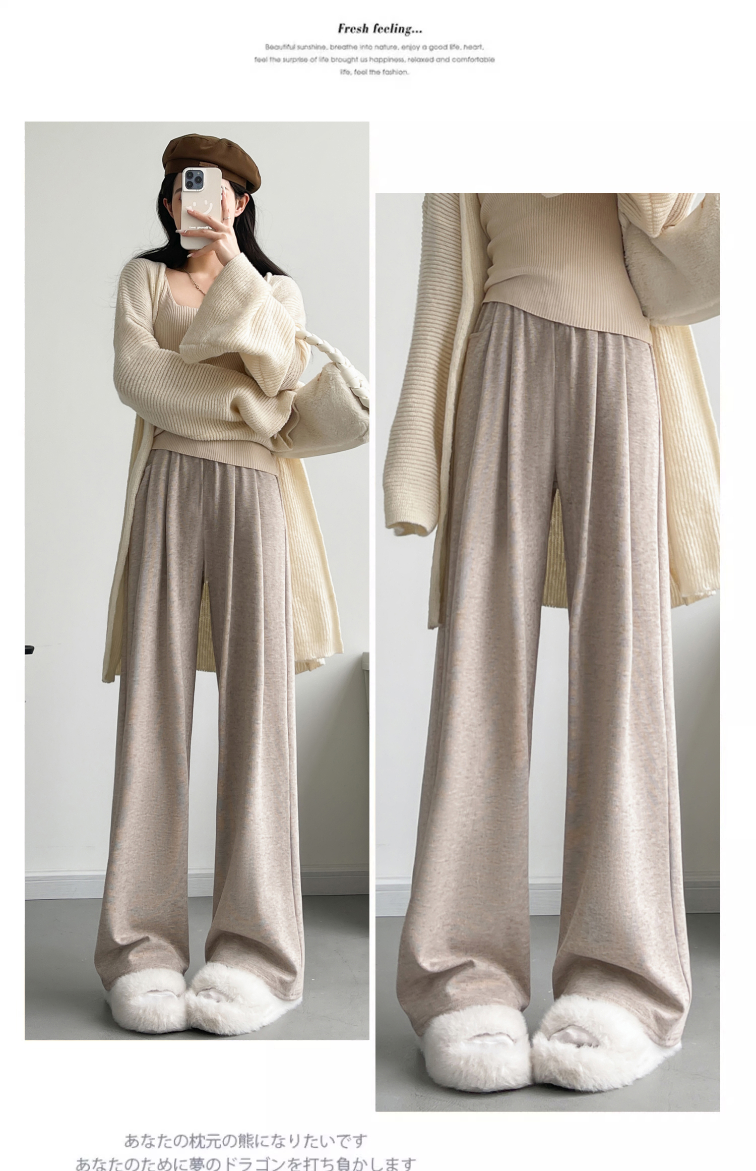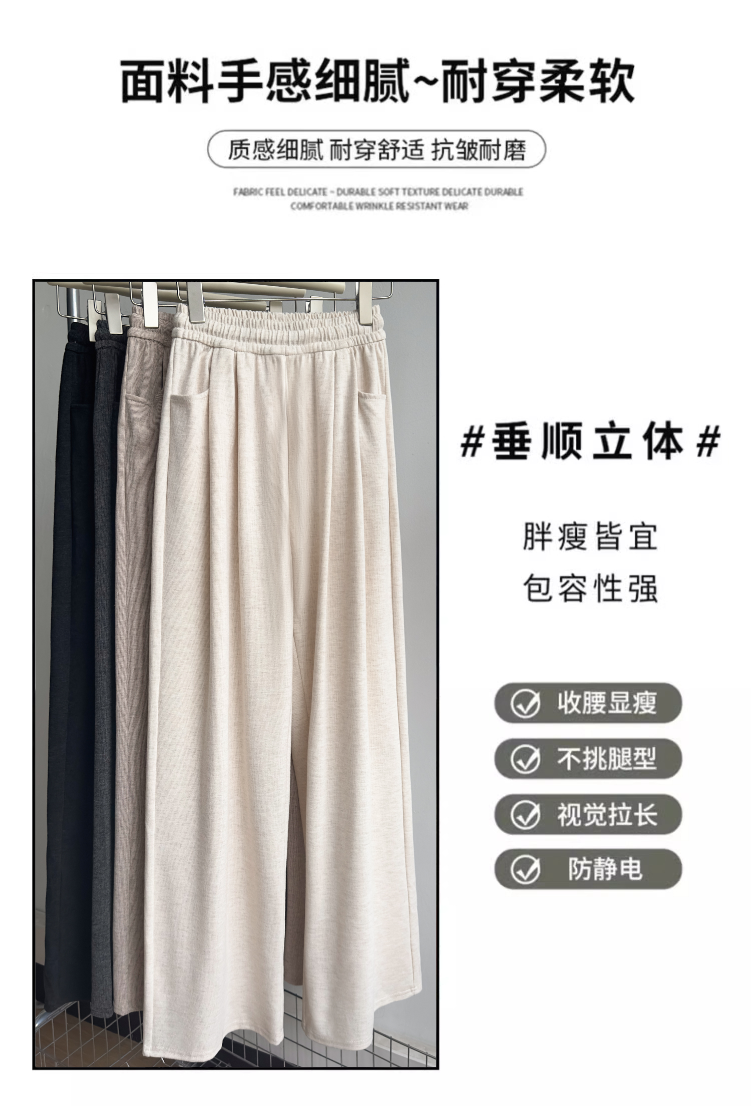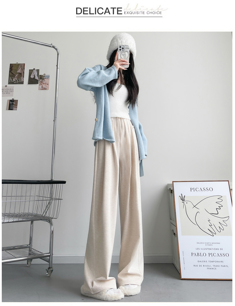 糯米褲女秋冬季2025新款寬松垂感直筒休閒慵懶小個子加絨濶腿褲子