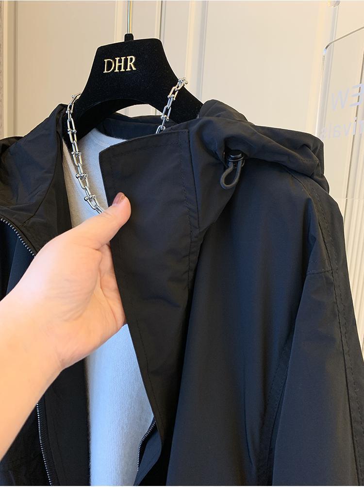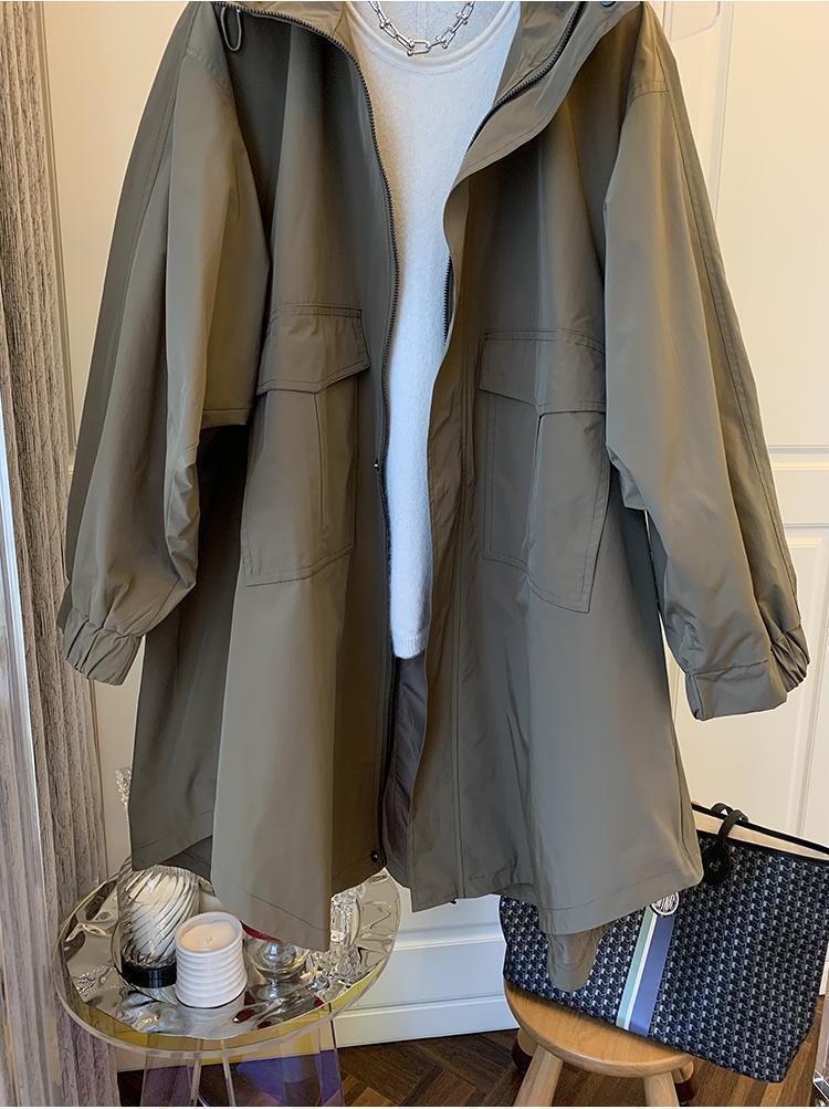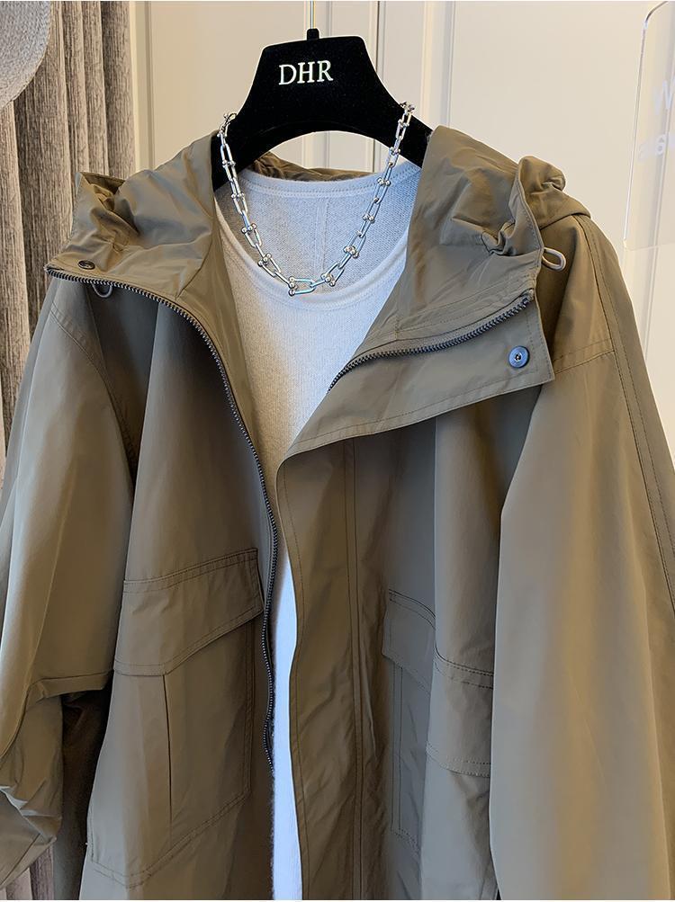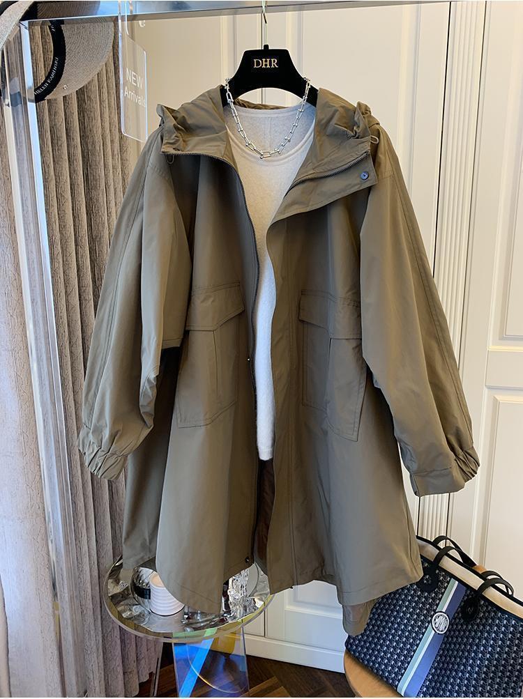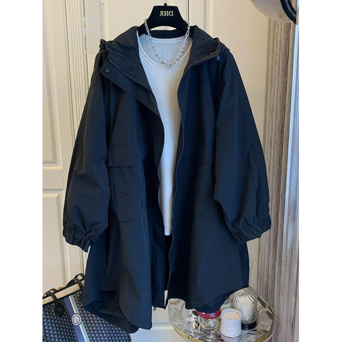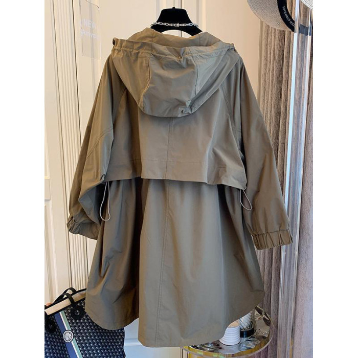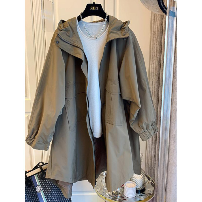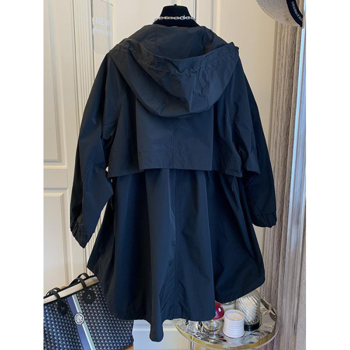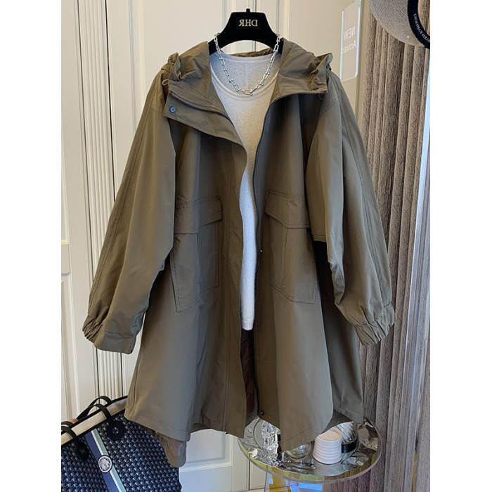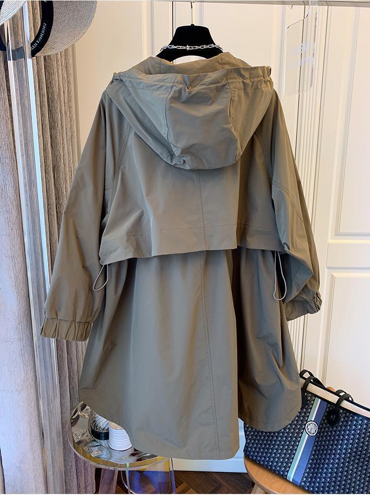 特大碼2-300斤春秋季薄款中長款寬松風衣女胖MM連帽工裝外套ins潮