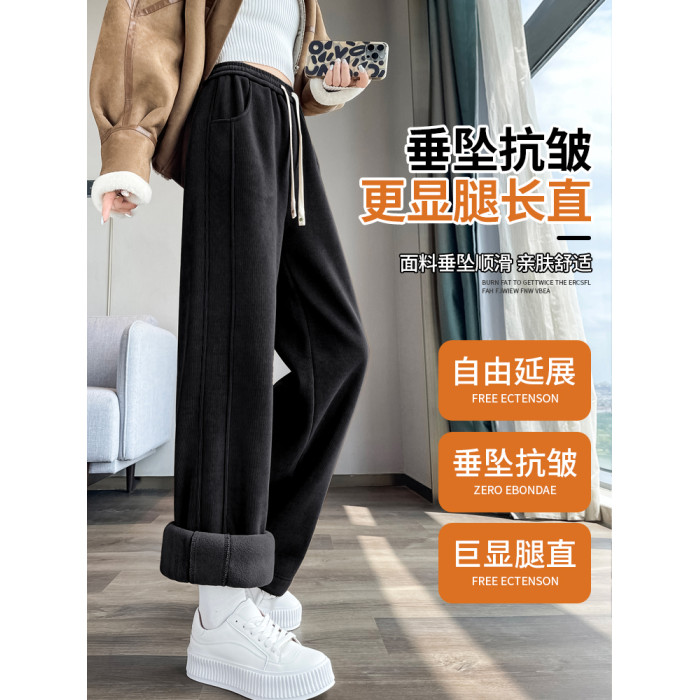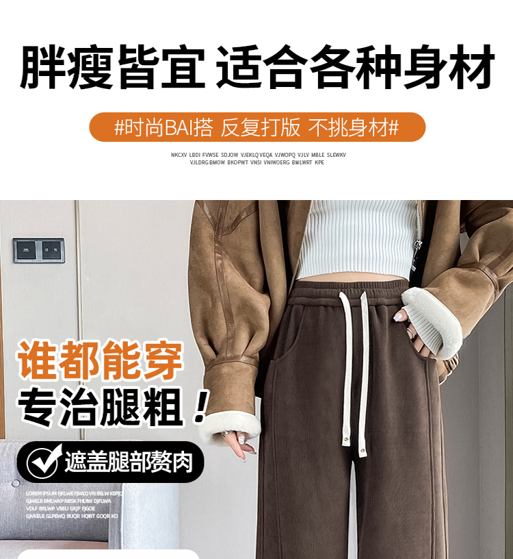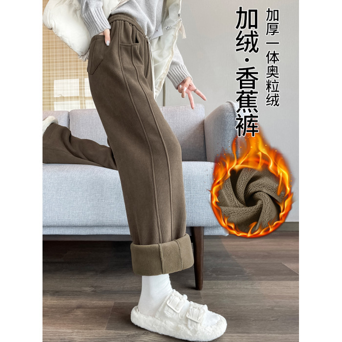 加絨香蕉濶腿褲女秋冬季2025新款東北特厚棉褲小個子直筒運動褲子