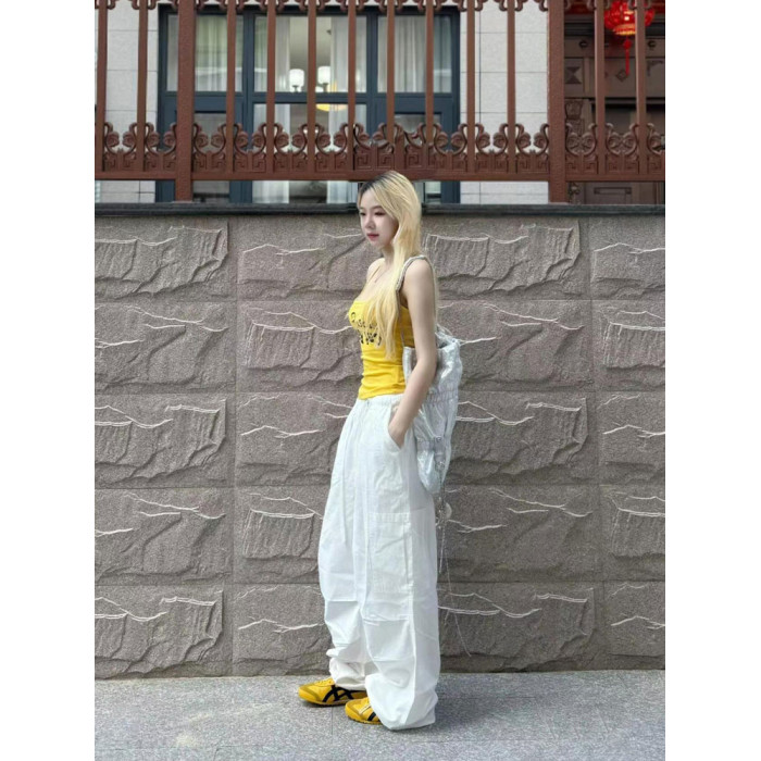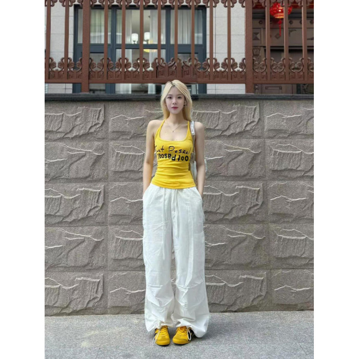 美式復古黃色字母小背心女夏季2025新款辣妹修身外穿無袖吊帶上衣
