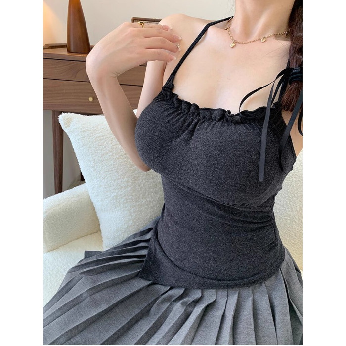 垂涎欲滴!純欲風掛脖打底吊帶背心女秋季小胸顯大帶胸墊打底上衣
