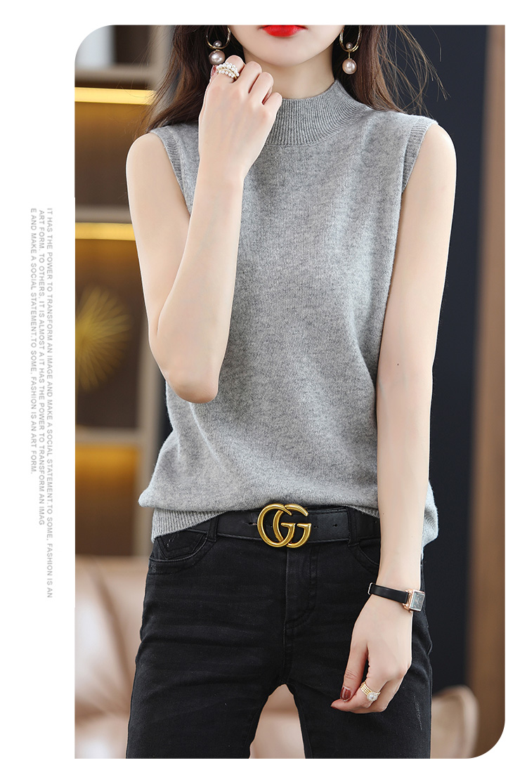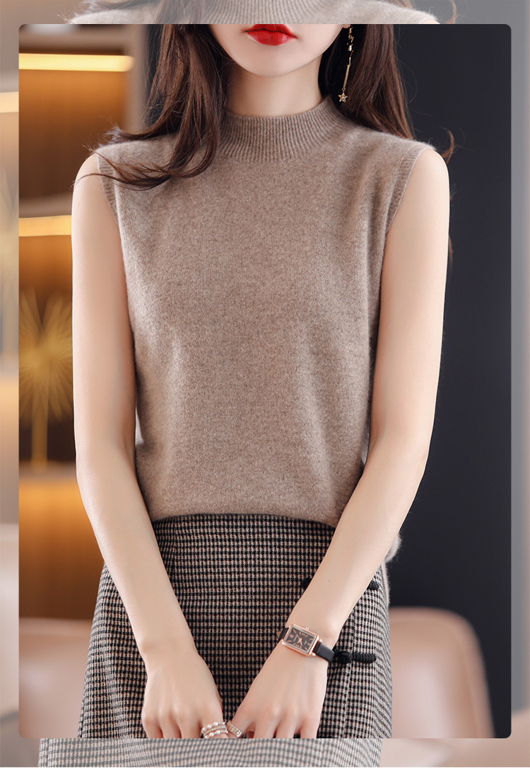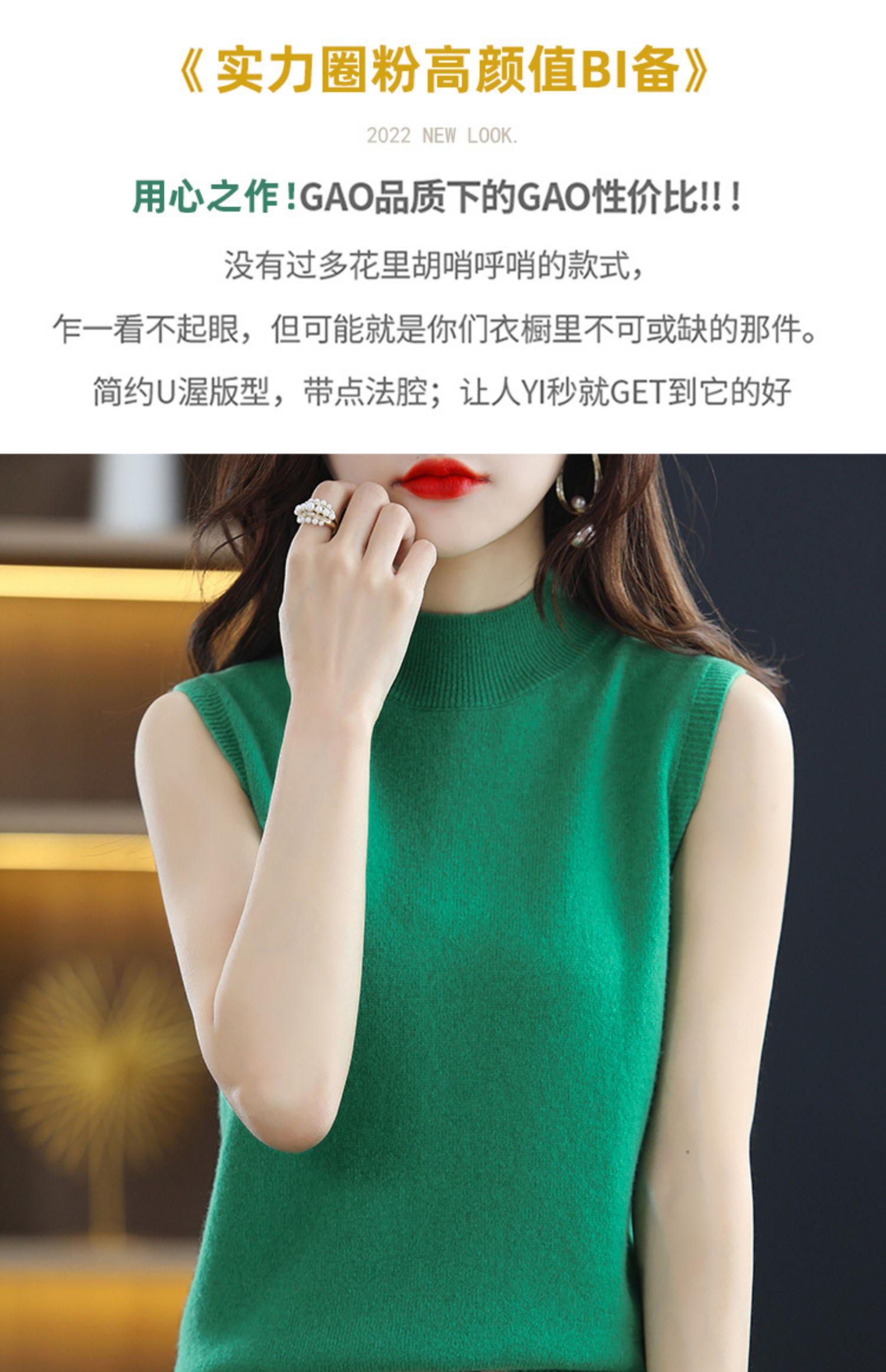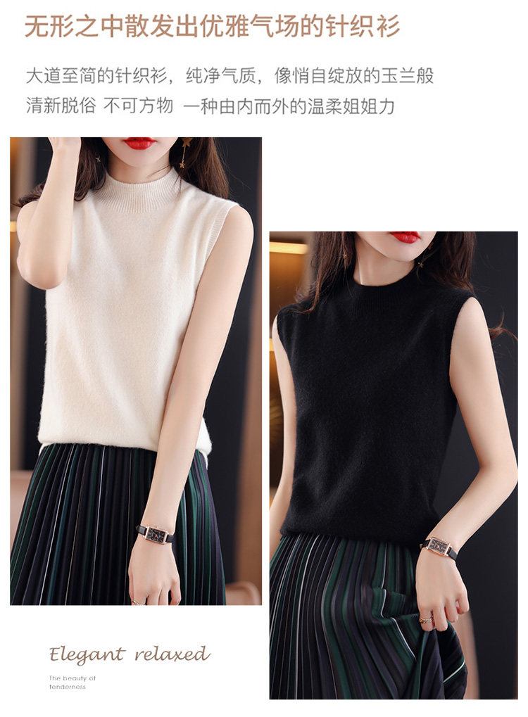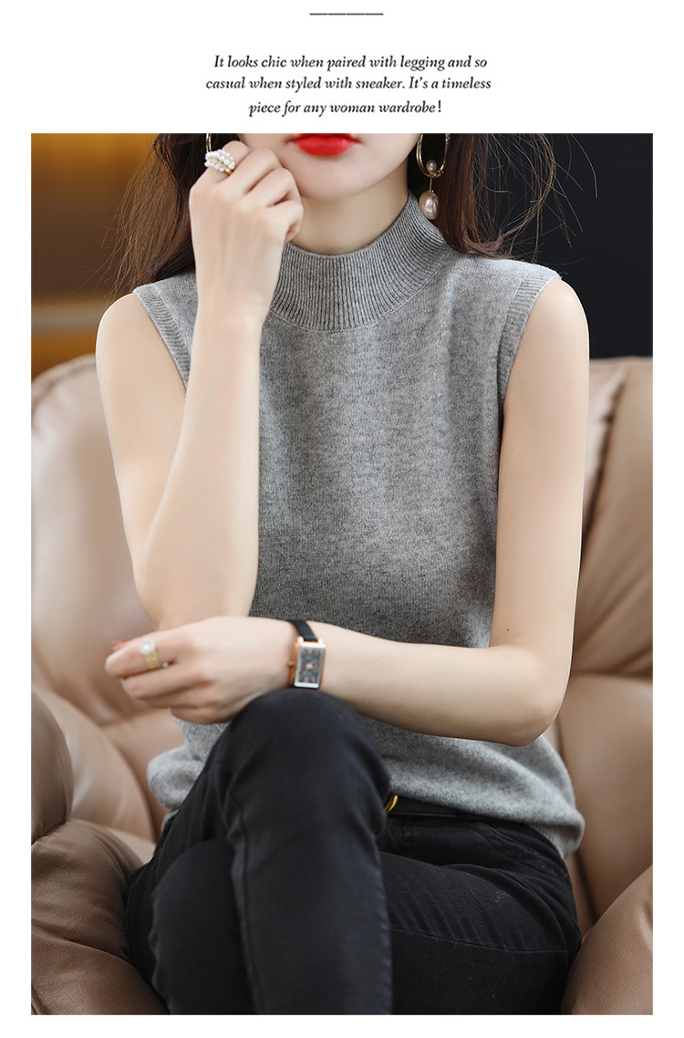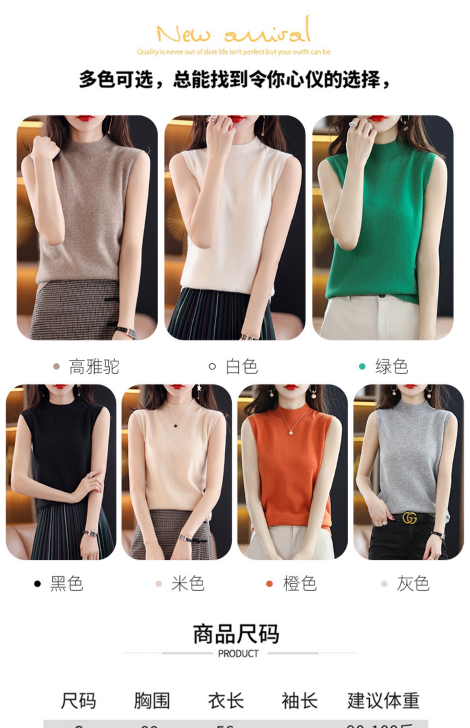 春季新無袖女半高領吊帶打底衫女純色西裝內搭羊毛針織衫套頭背心