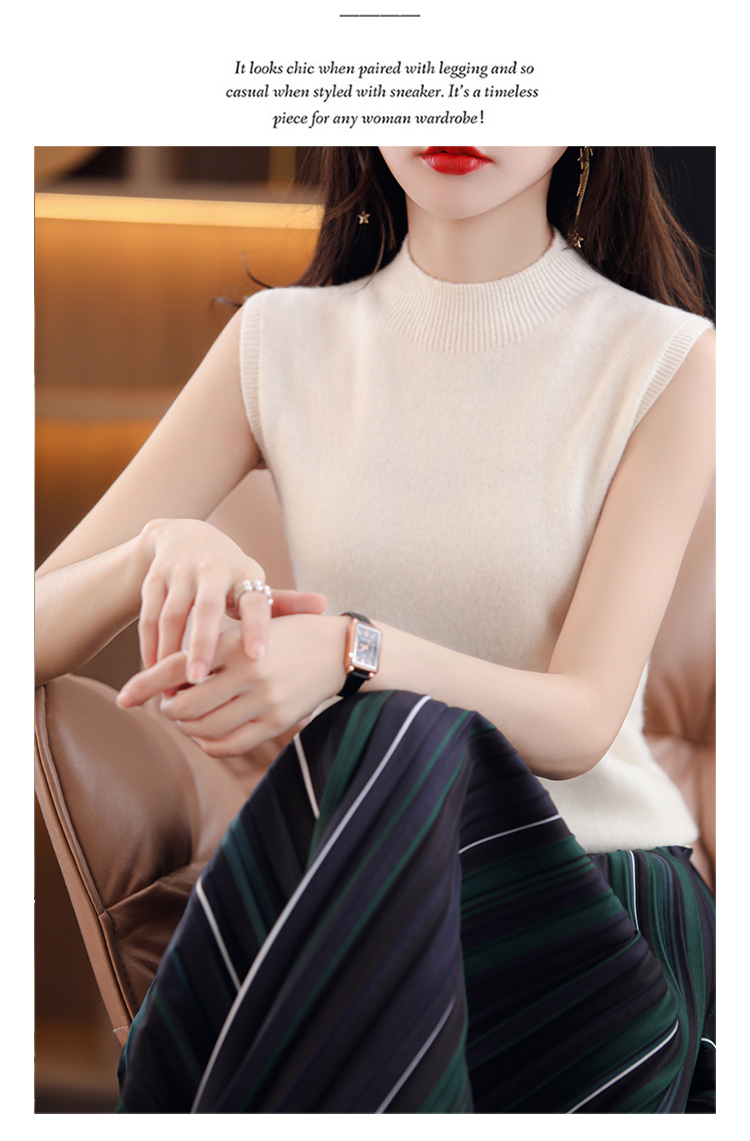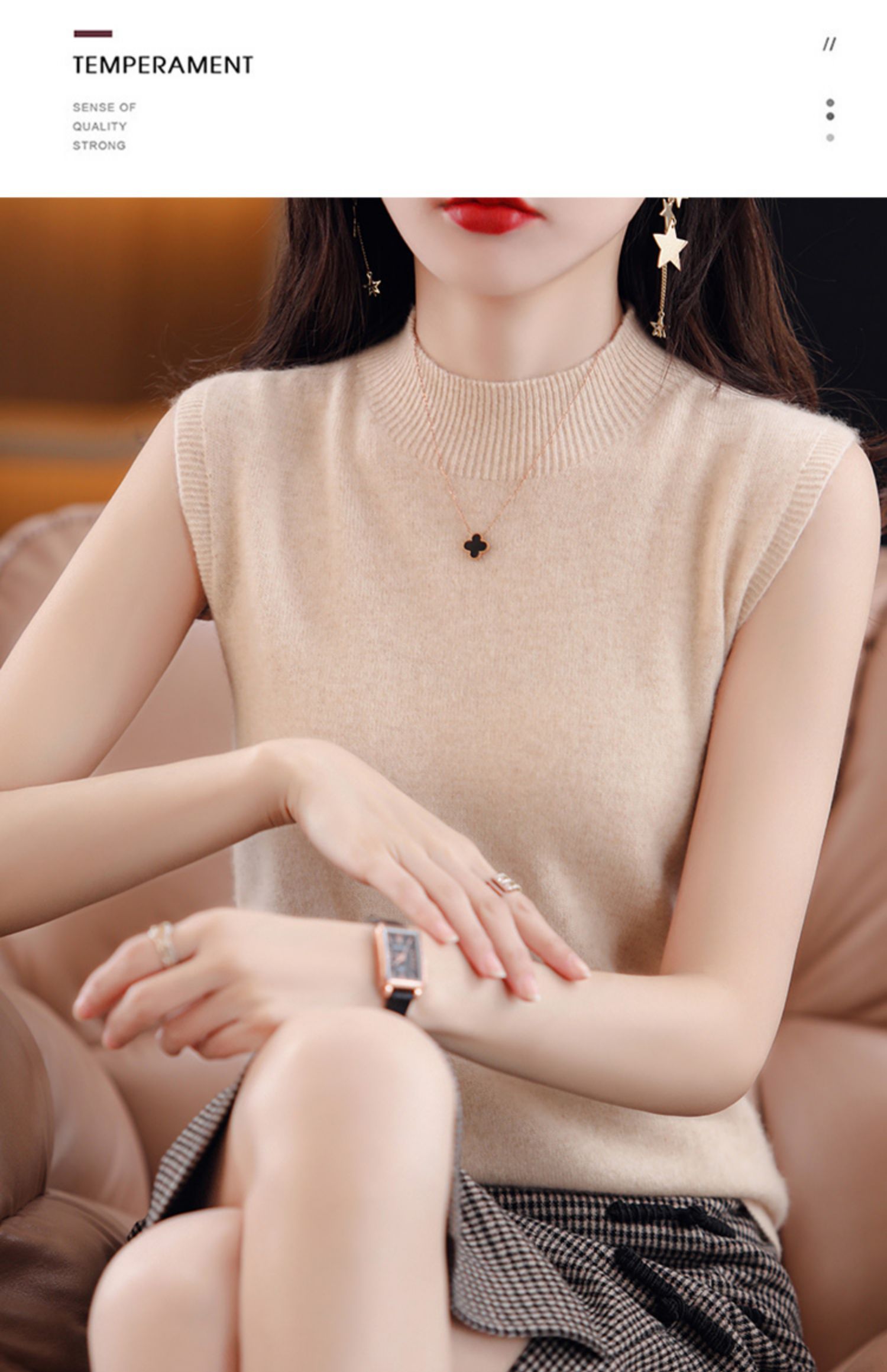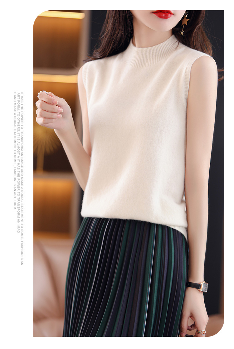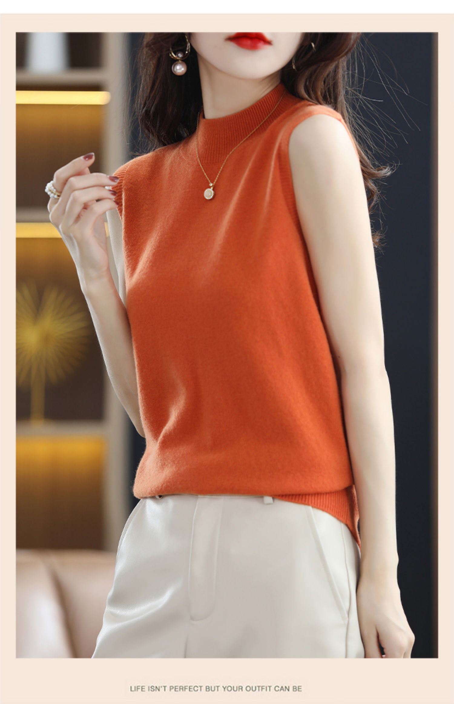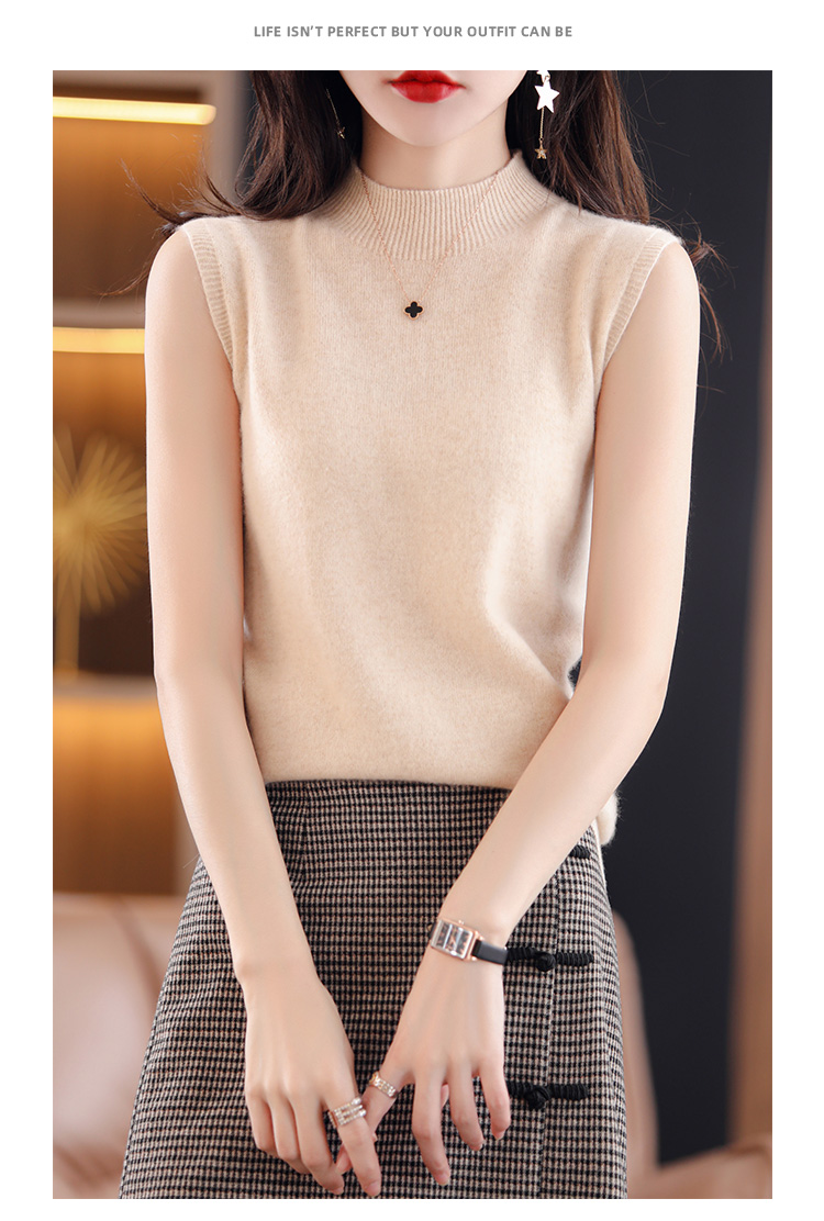 春季新無袖女半高領吊帶打底衫女純色西裝內搭羊毛針織衫套頭背心
