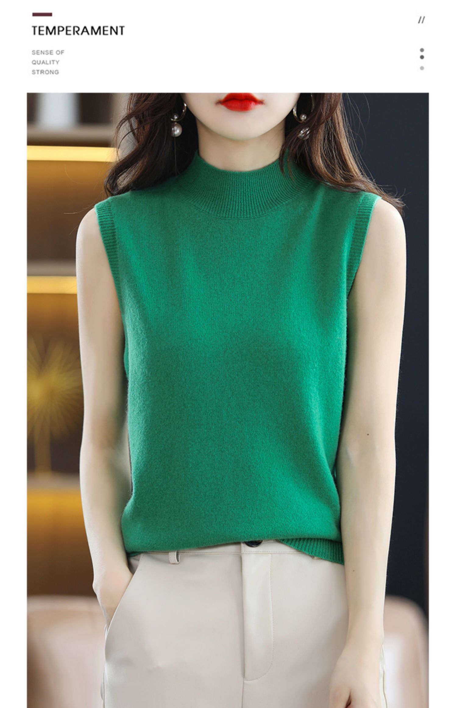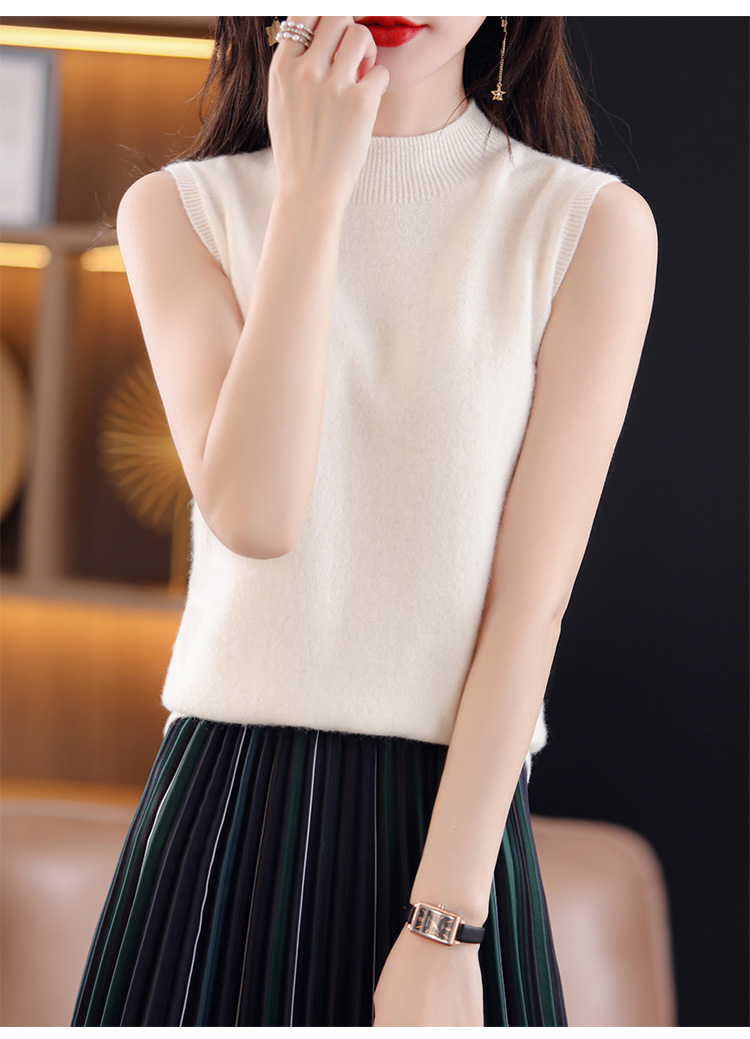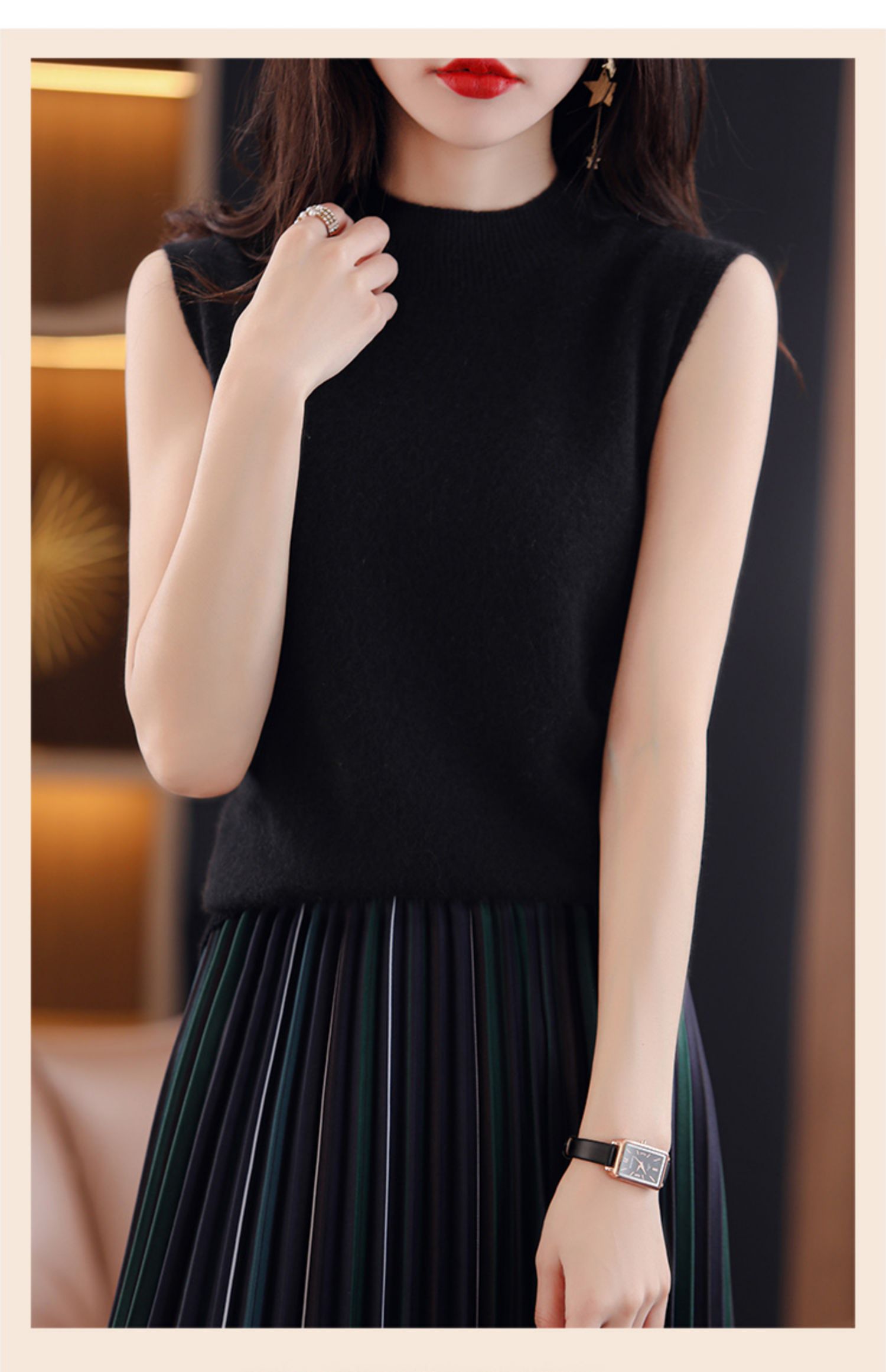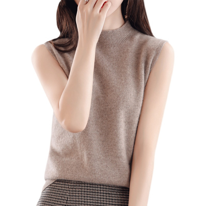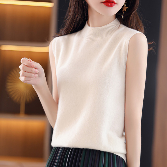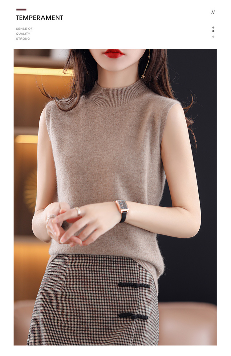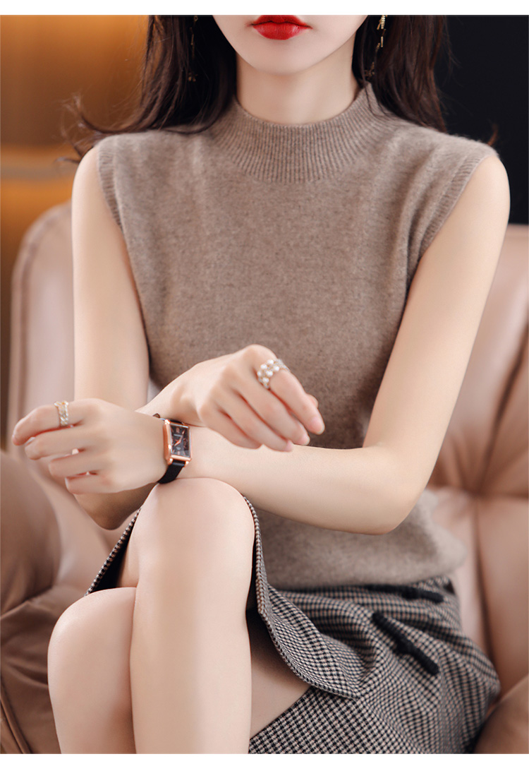 春季新無袖女半高領吊帶打底衫女純色西裝內搭羊毛針織衫套頭背心