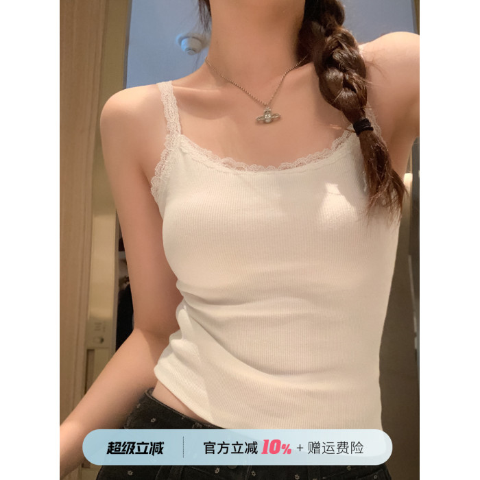 白色吊帶小背心女蕾絲內搭設計感小衆2025新款甜辣打底純欲上衣