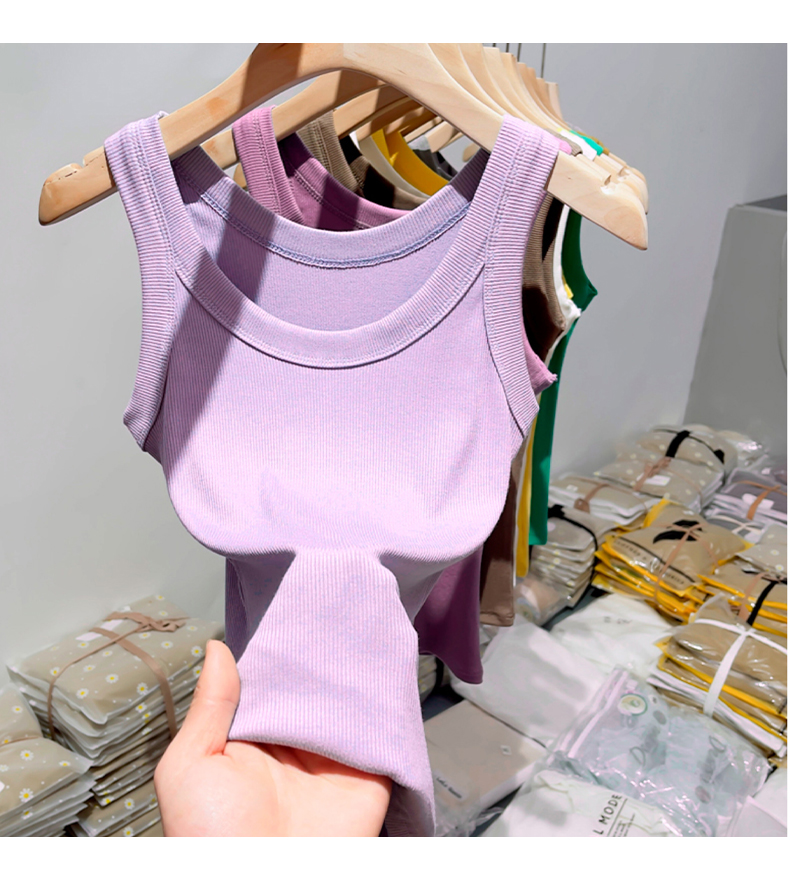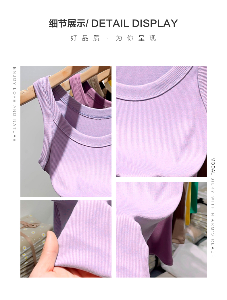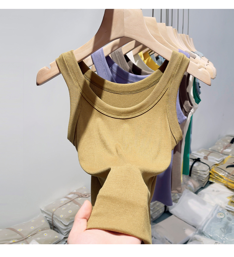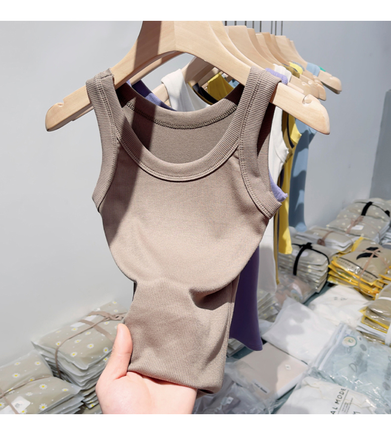 薄款帶胸墊一體式針織螺紋吊帶背心女夏季內搭冰絲莫代爾打底上衣