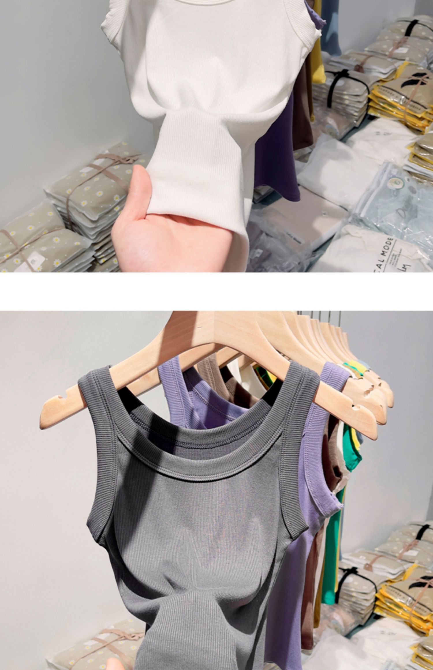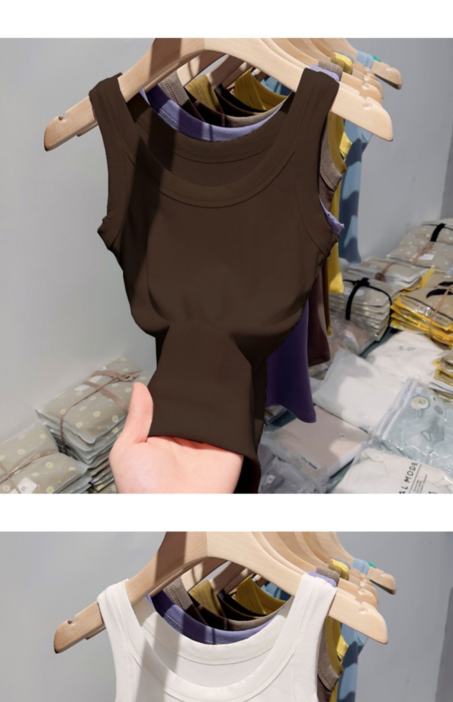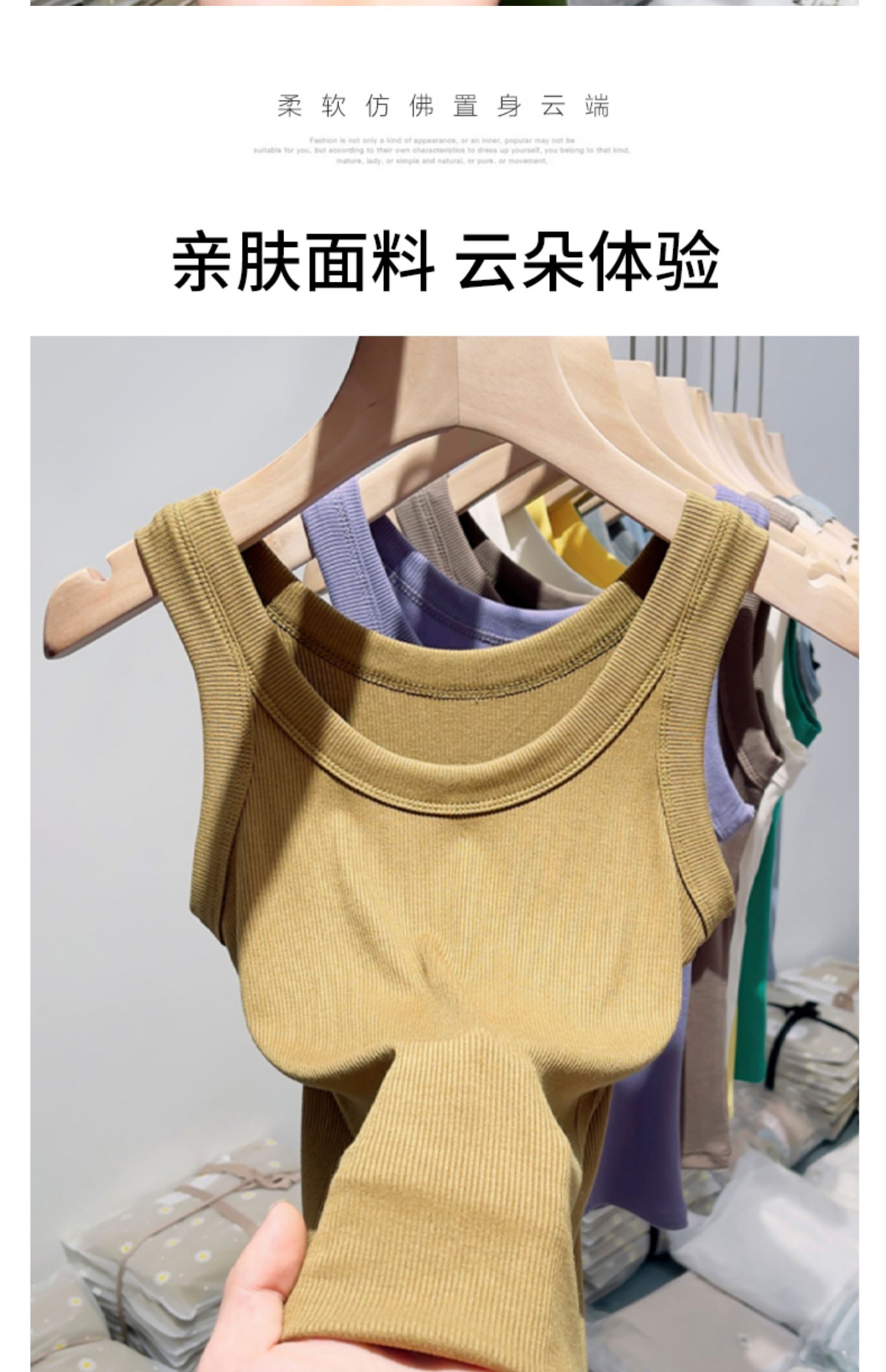 薄款帶胸墊一體式針織螺紋吊帶背心女夏季內搭冰絲莫代爾打底上衣