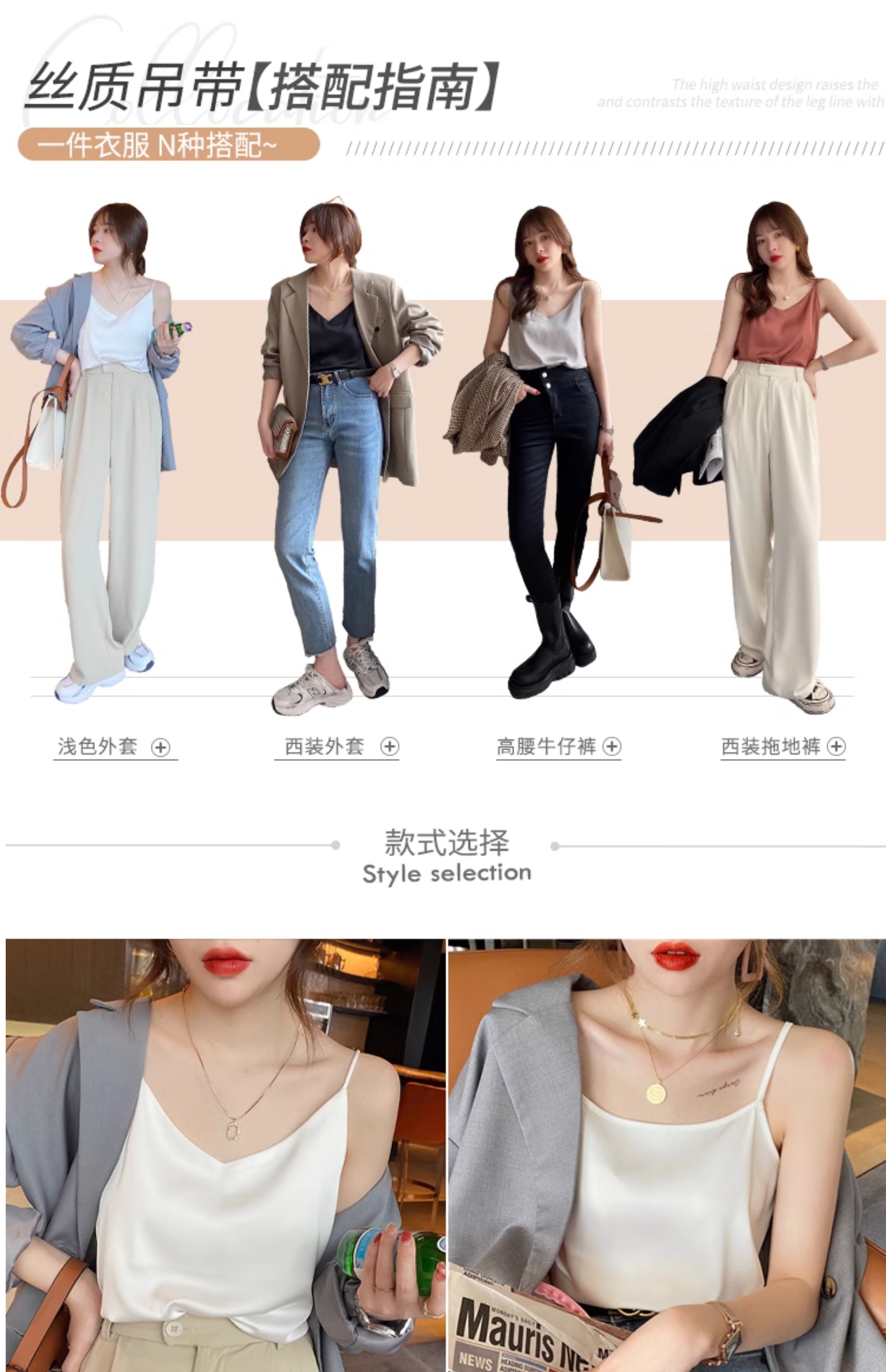 吊帶背心女內搭西裝2025新款寬松白色打底緞面仿真絲上衣夏外穿