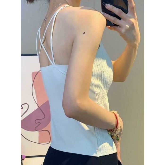 四季顯瘦打底吊帶內搭外穿美背文胸一體白色長款遮肚子百搭上衣女