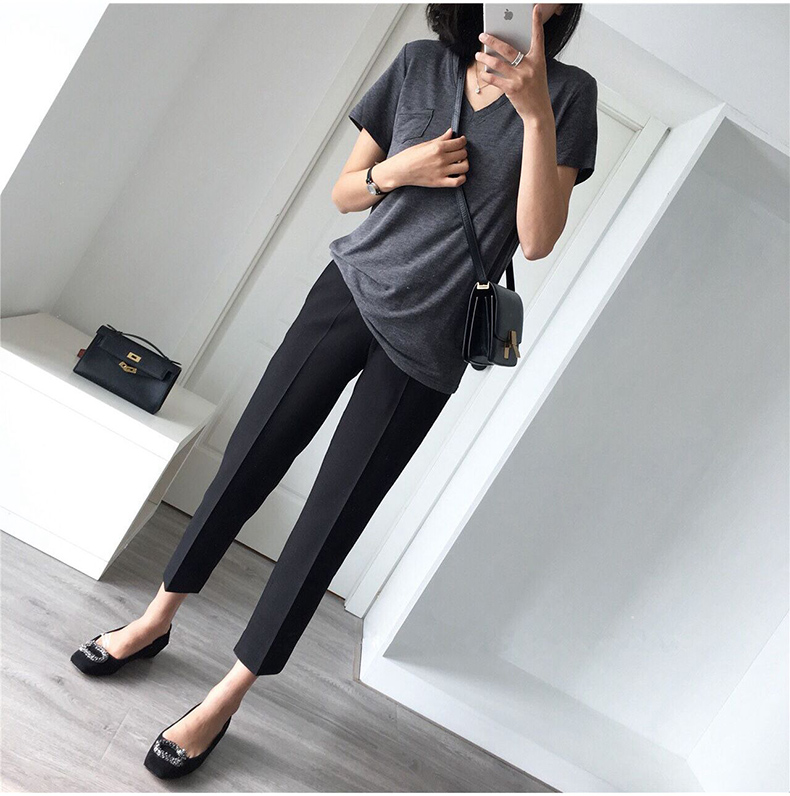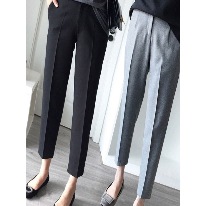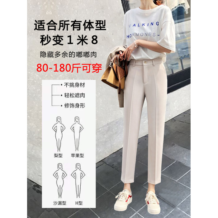 黑色西裝褲女九分褲西褲灰色褲子小個子女褲垂感直筒褲職業菸管褲