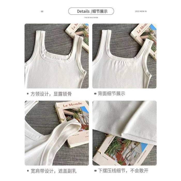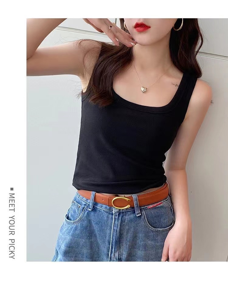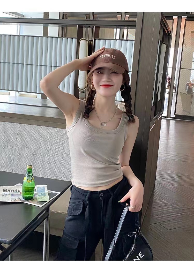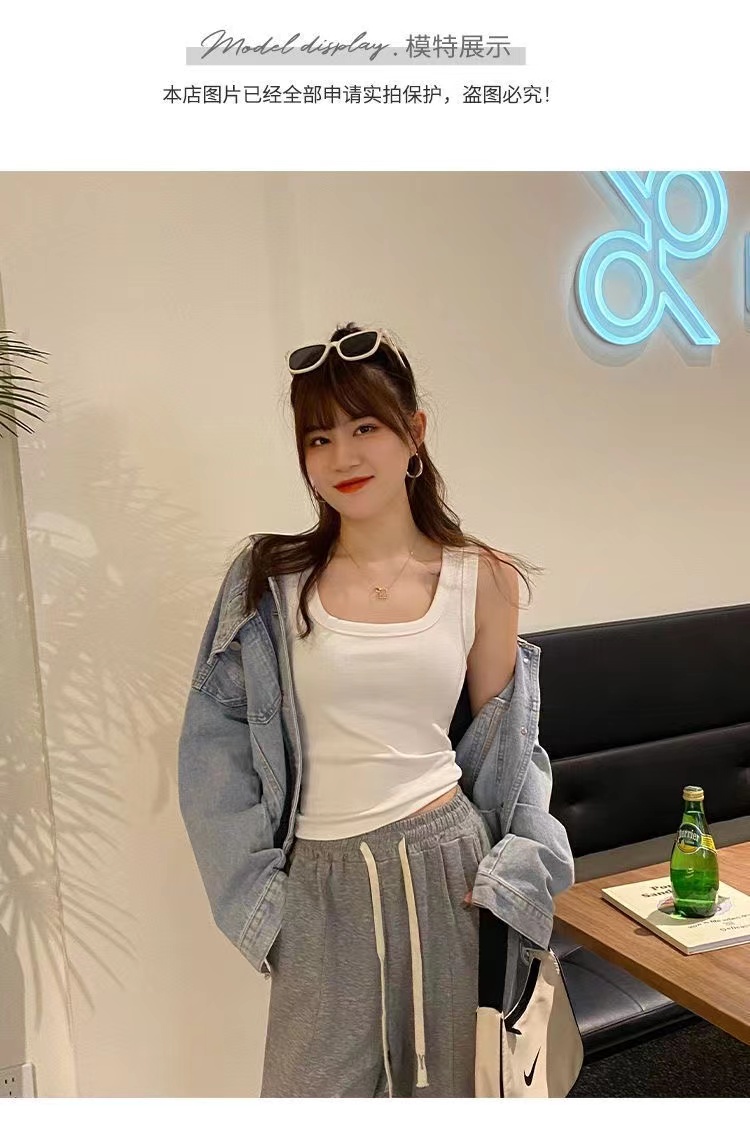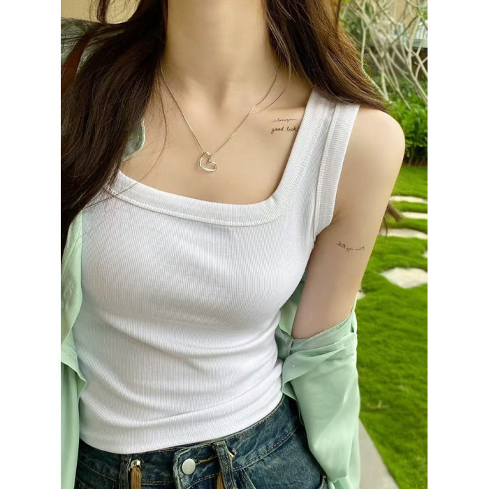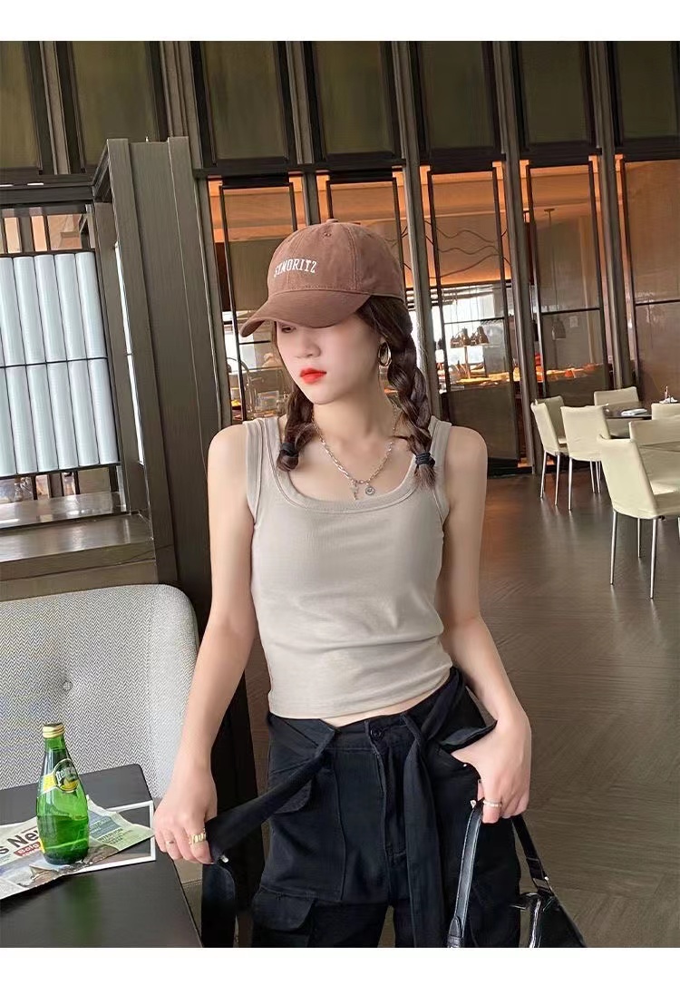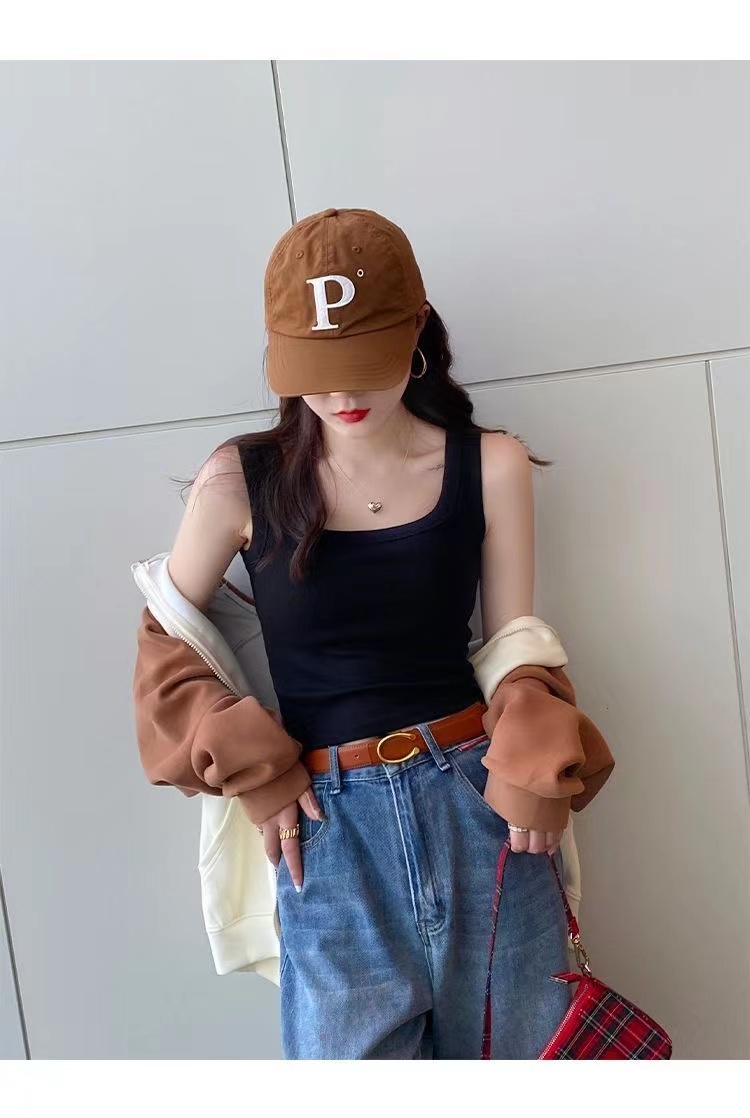 純棉法式方領吊帶背心女夏季修身大碼胖妹妹內搭打底衫無袖上衣