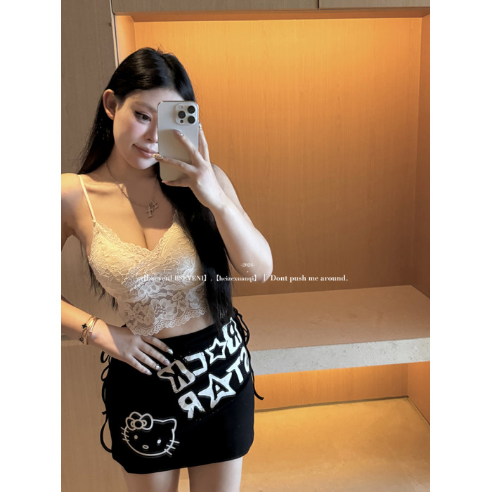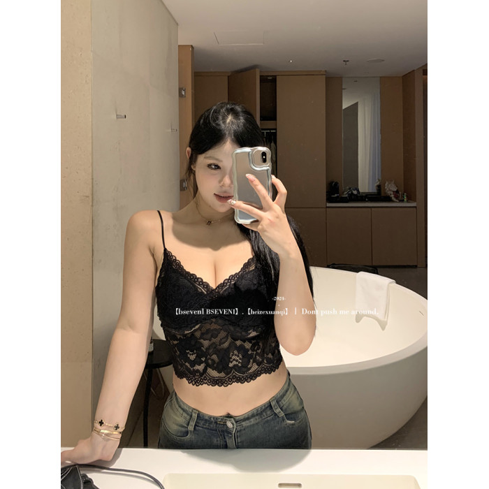 黑澤玄七女2025春季新款胖mm顯瘦百搭帶胸墊蕾絲文胸吊帶背心女