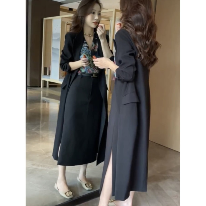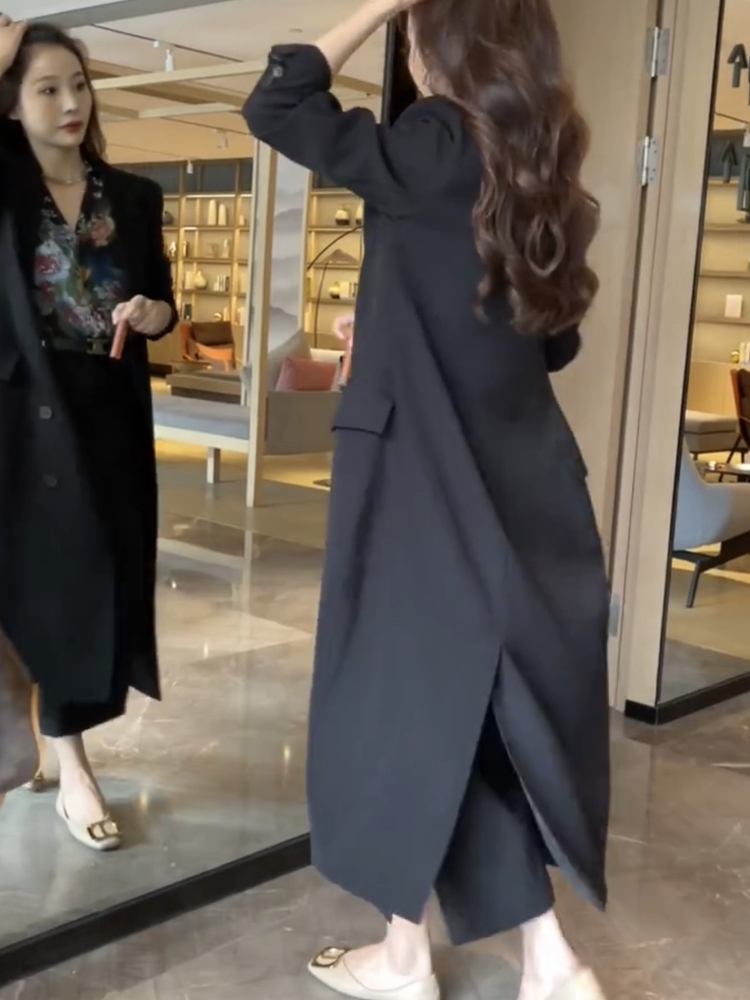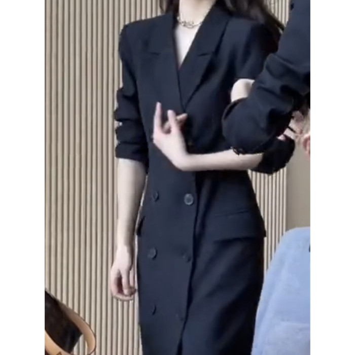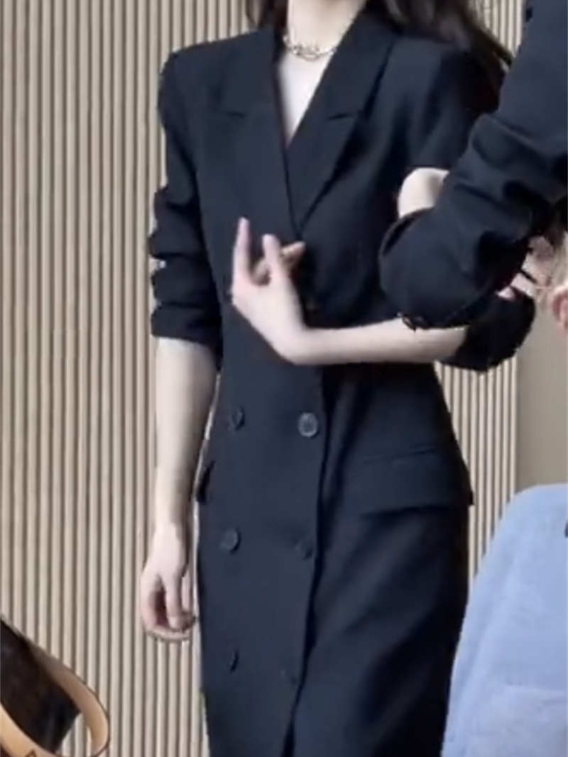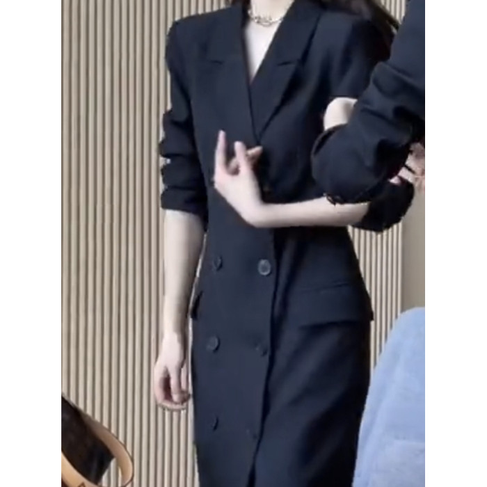 網紅爆款時尚氣質小個子風衣裙2023秋新款韓版雙排釦中長款西裝裙