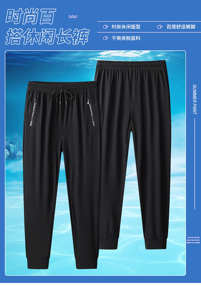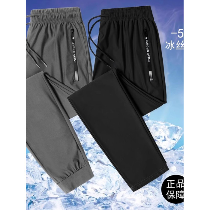 冰絲運動褲男女休閒長褲大碼寬松潮流2025年新夏季薄款速乾束腳褲