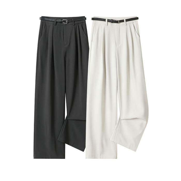 XinmonLee高腰直筒百搭休閒褲女春秋寬松顯瘦垂墜感濶腿西裝長褲