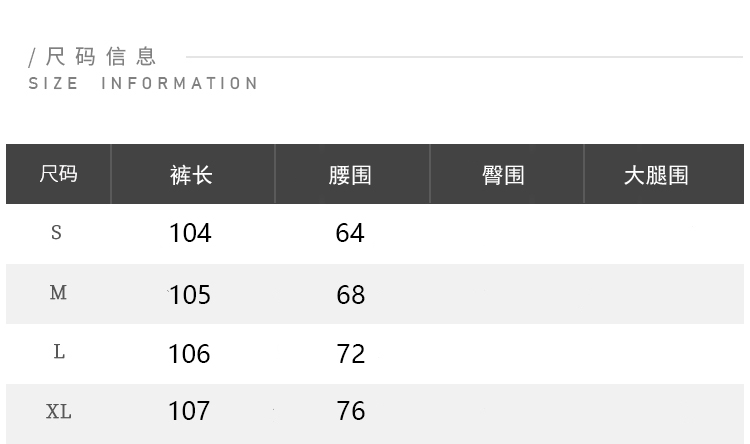 | 褲長 | 長褲 |