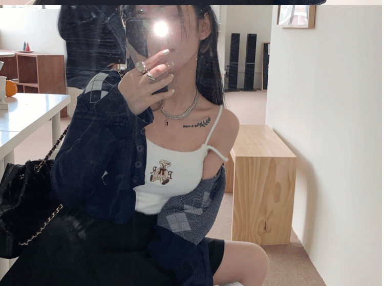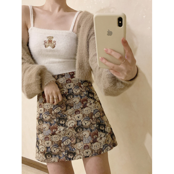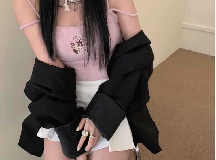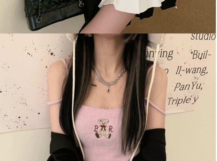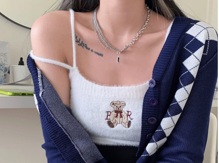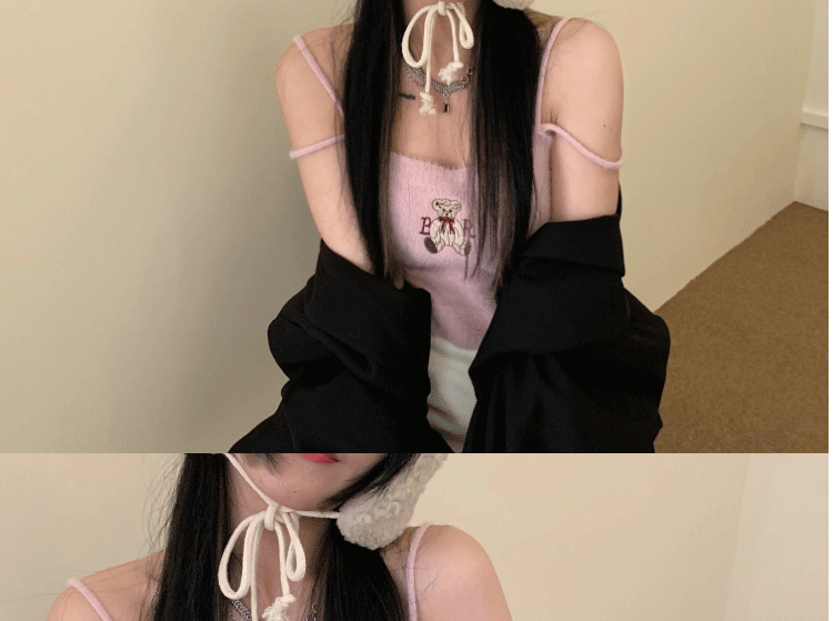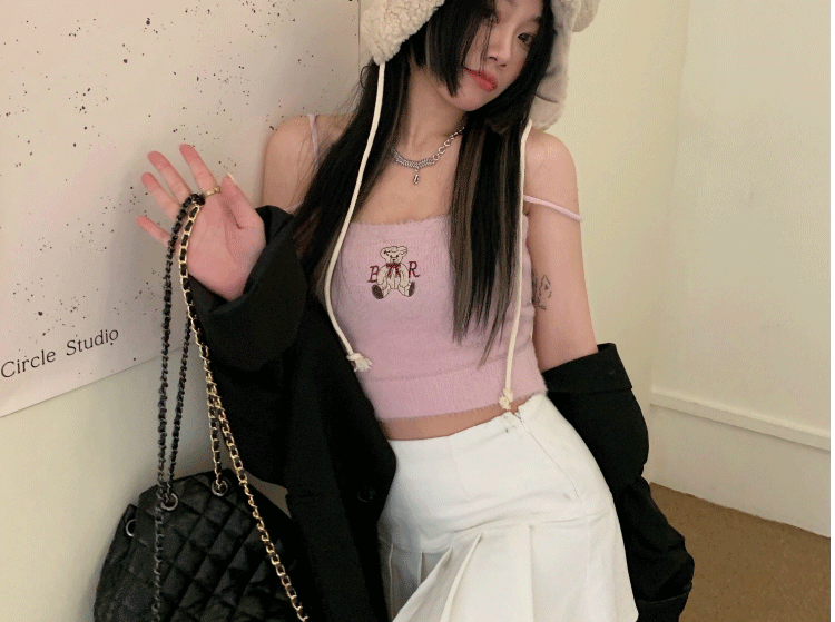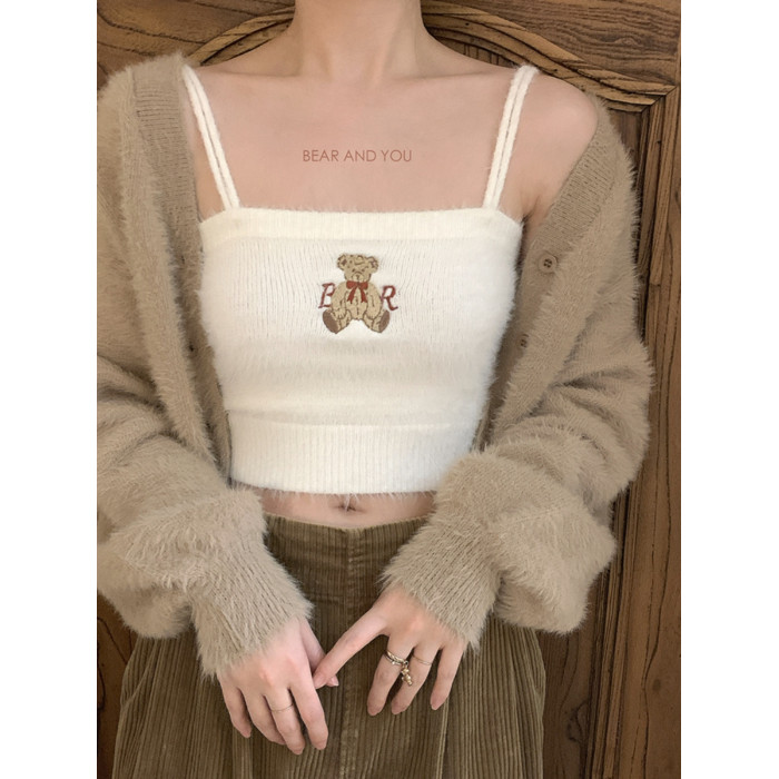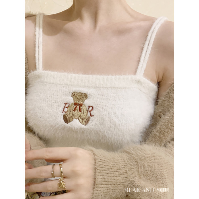 2025新款毛絨絨小熊刺綉少女感背心女夏外穿內搭辣妹針織吊帶上衣