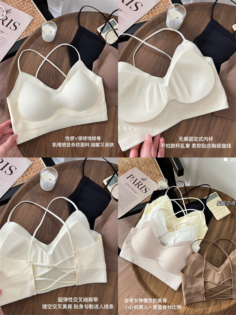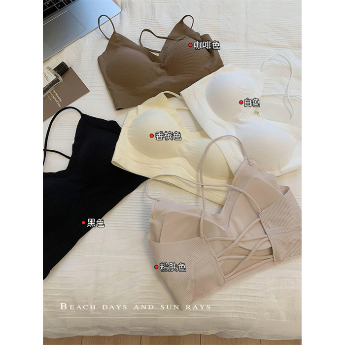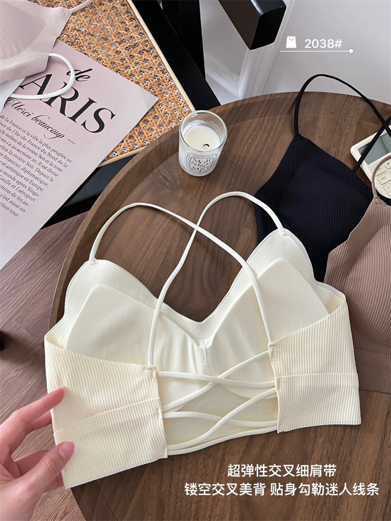 硬控版 無痕交叉美背吊帶背心女自帶胸墊夏薄款露背透氣文胸罩