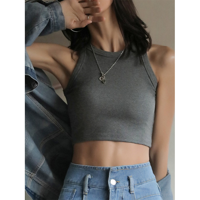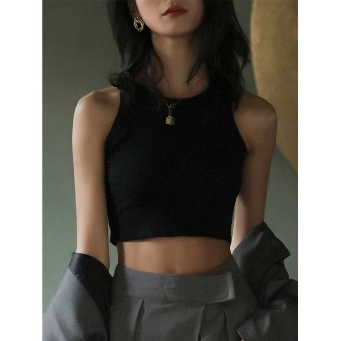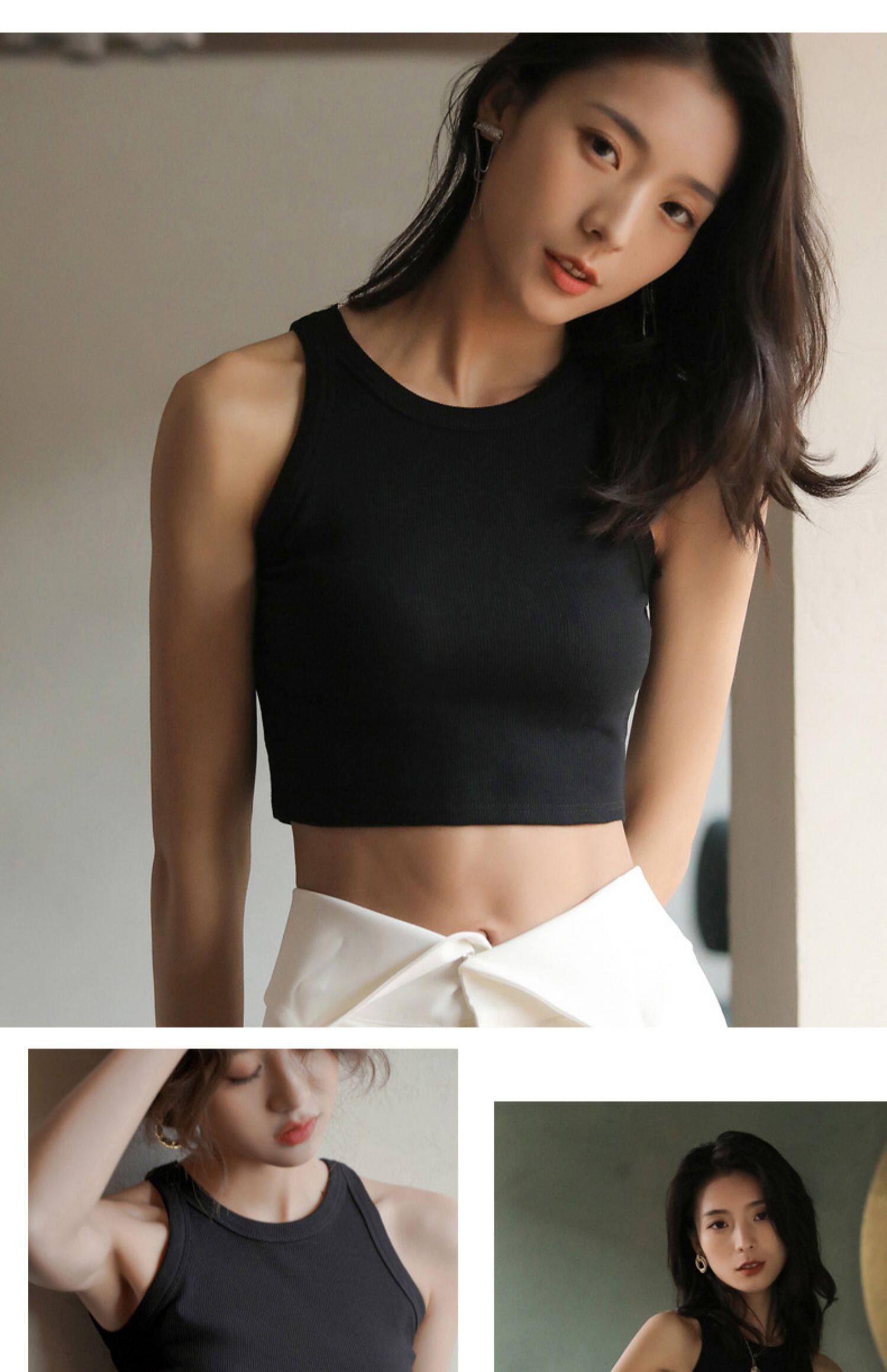 白色背心女夏季內搭螺紋無袖吊帶短款帶胸墊打底針織上衣外穿2025