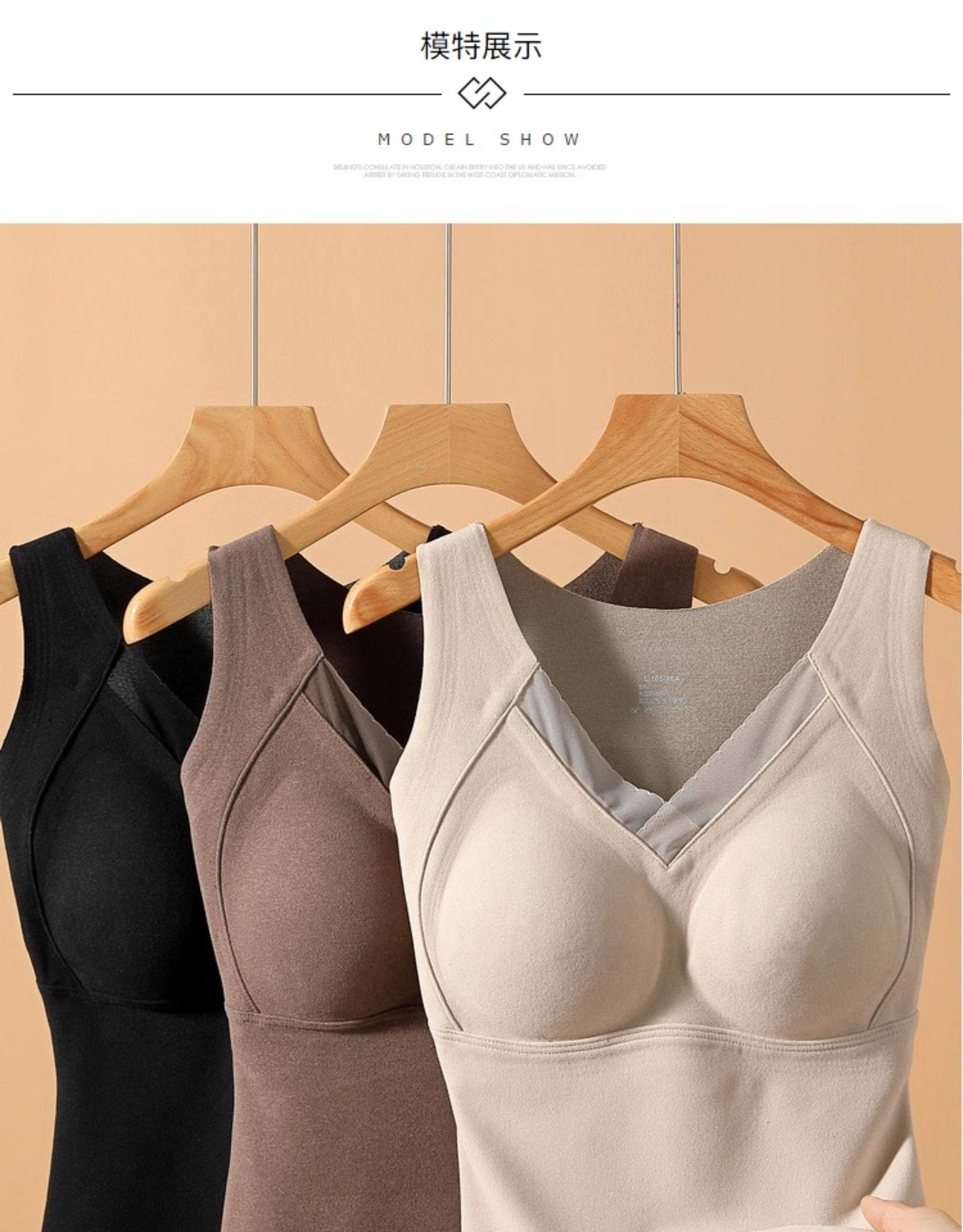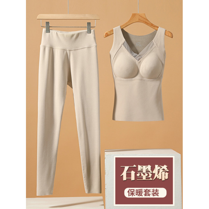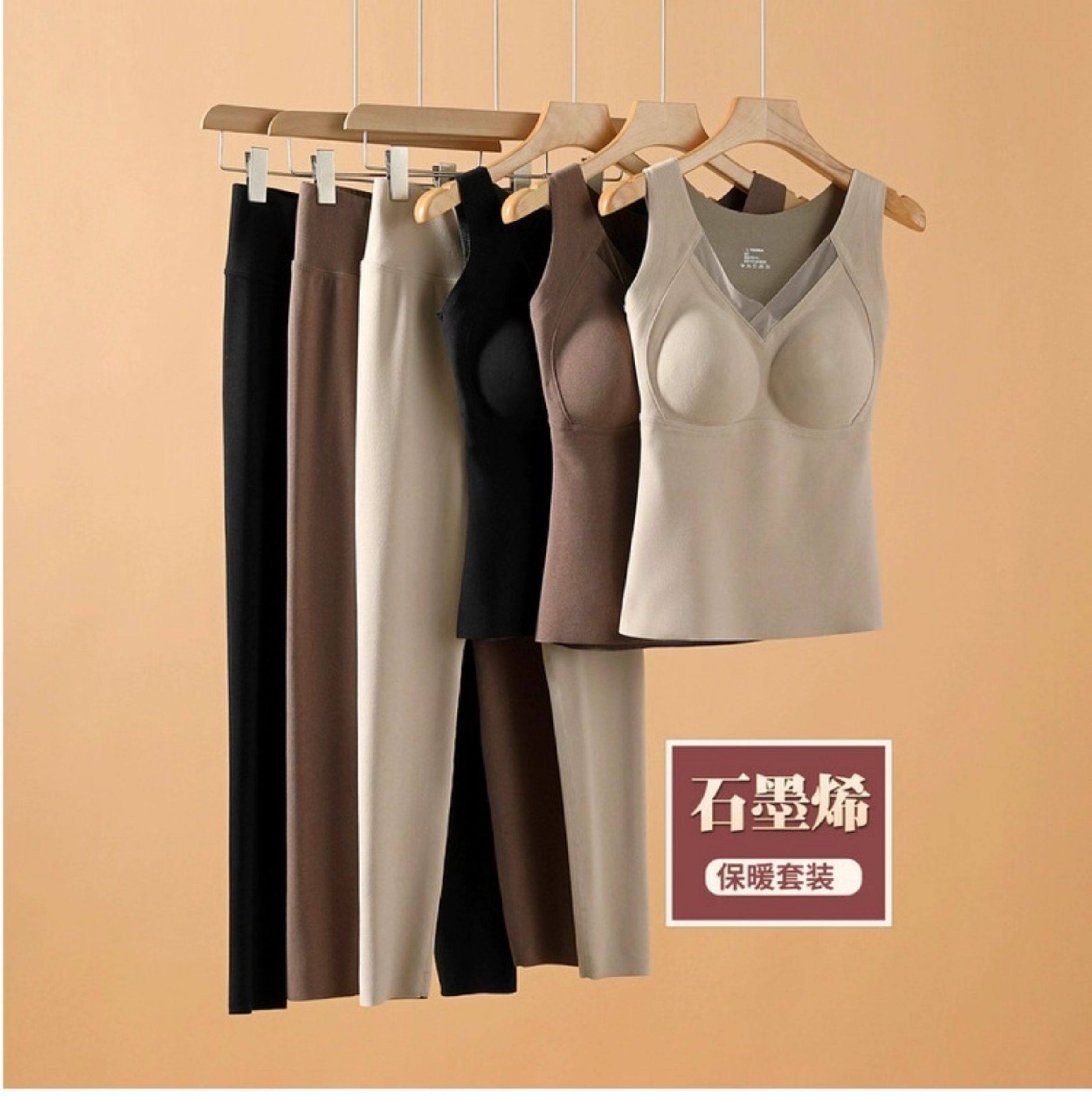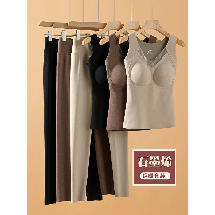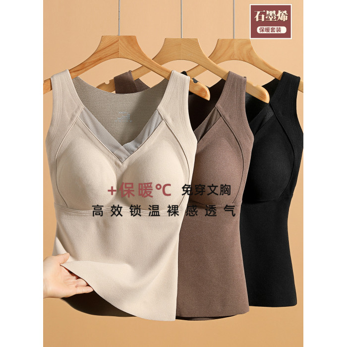石墨烯保暖吊帶背心女2025冬內搭上衣加絨帶胸墊一體式打底套裝