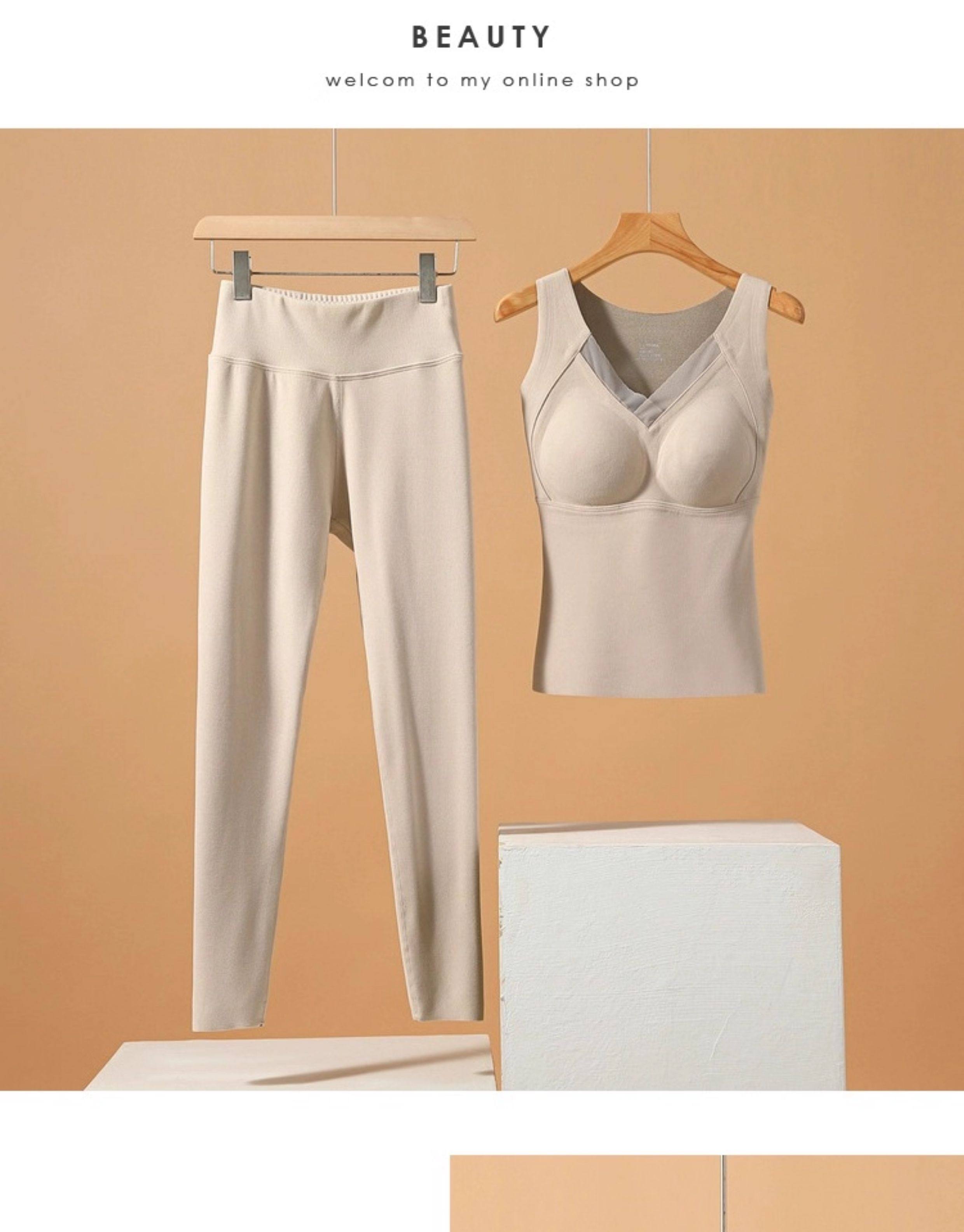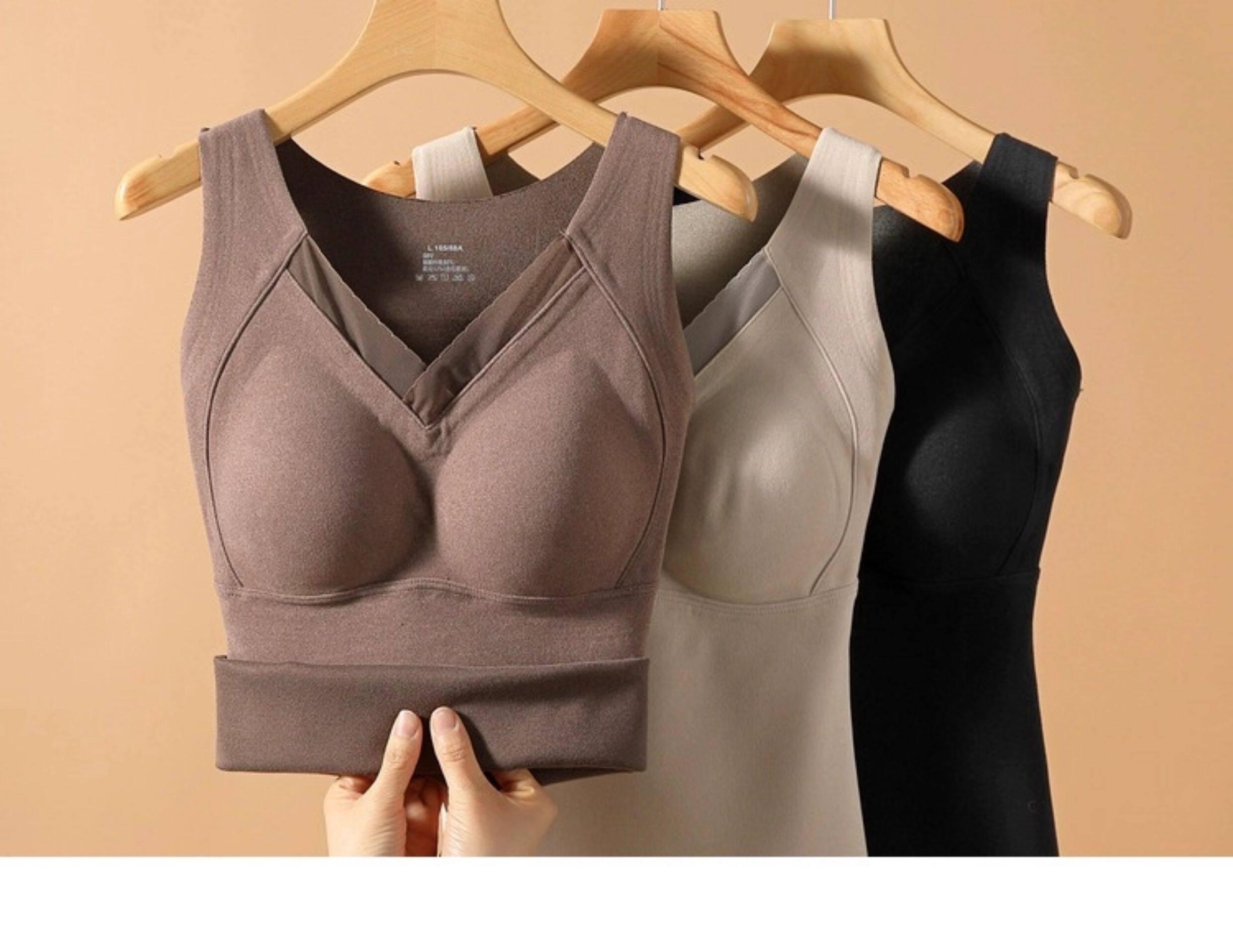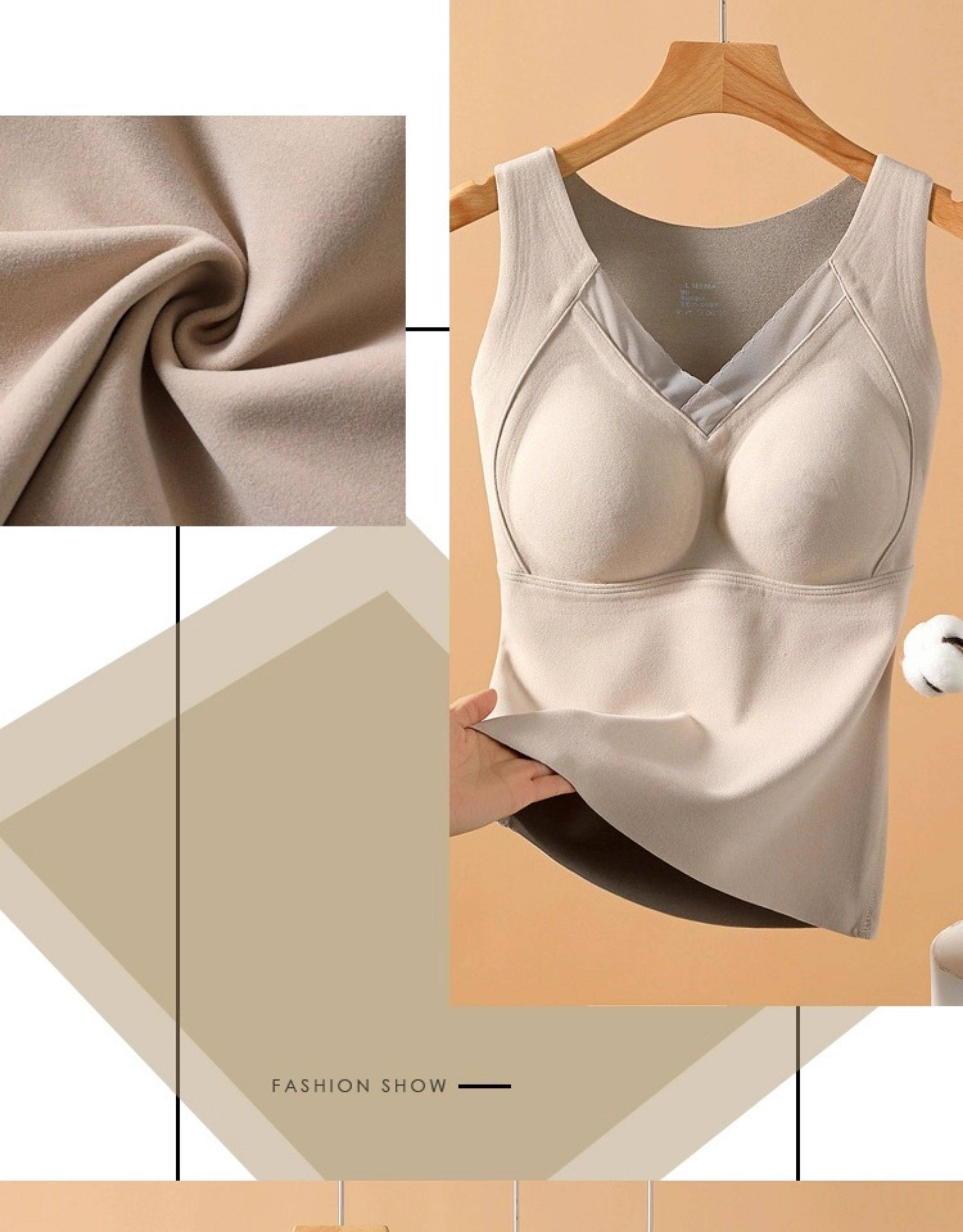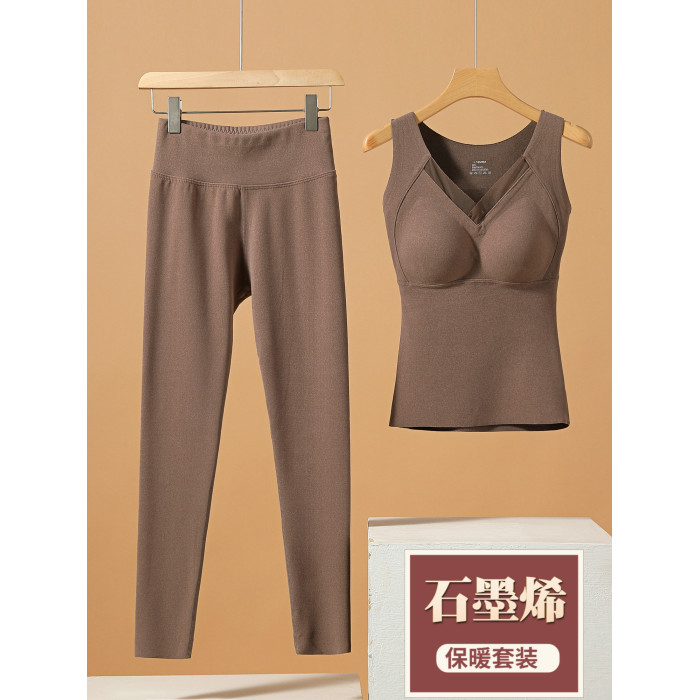 石墨烯保暖吊帶背心女2025冬內搭上衣加絨帶胸墊一體式打底套裝