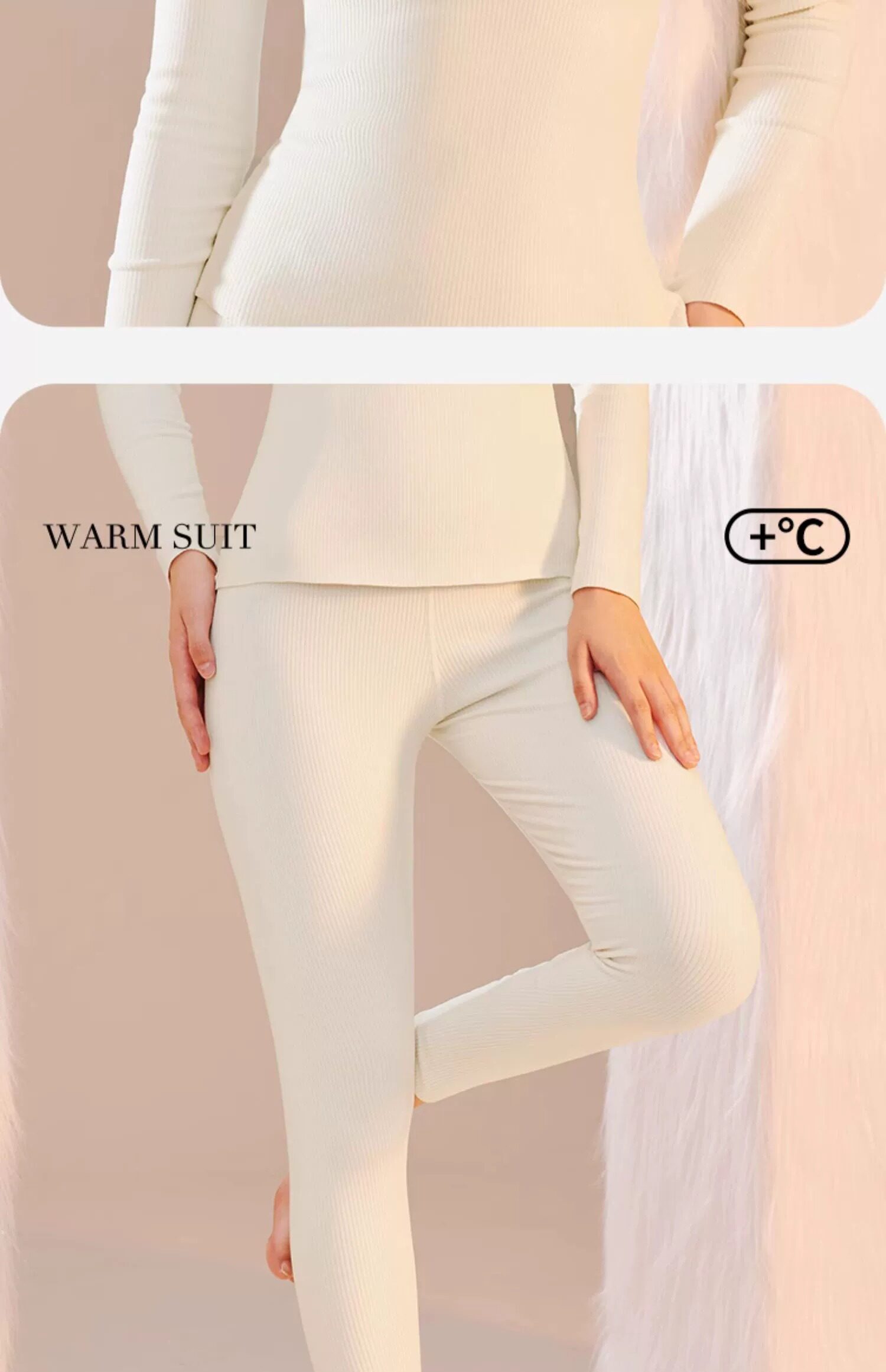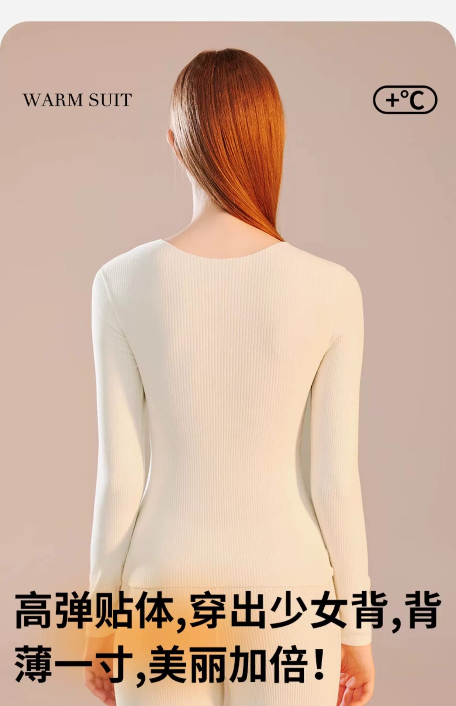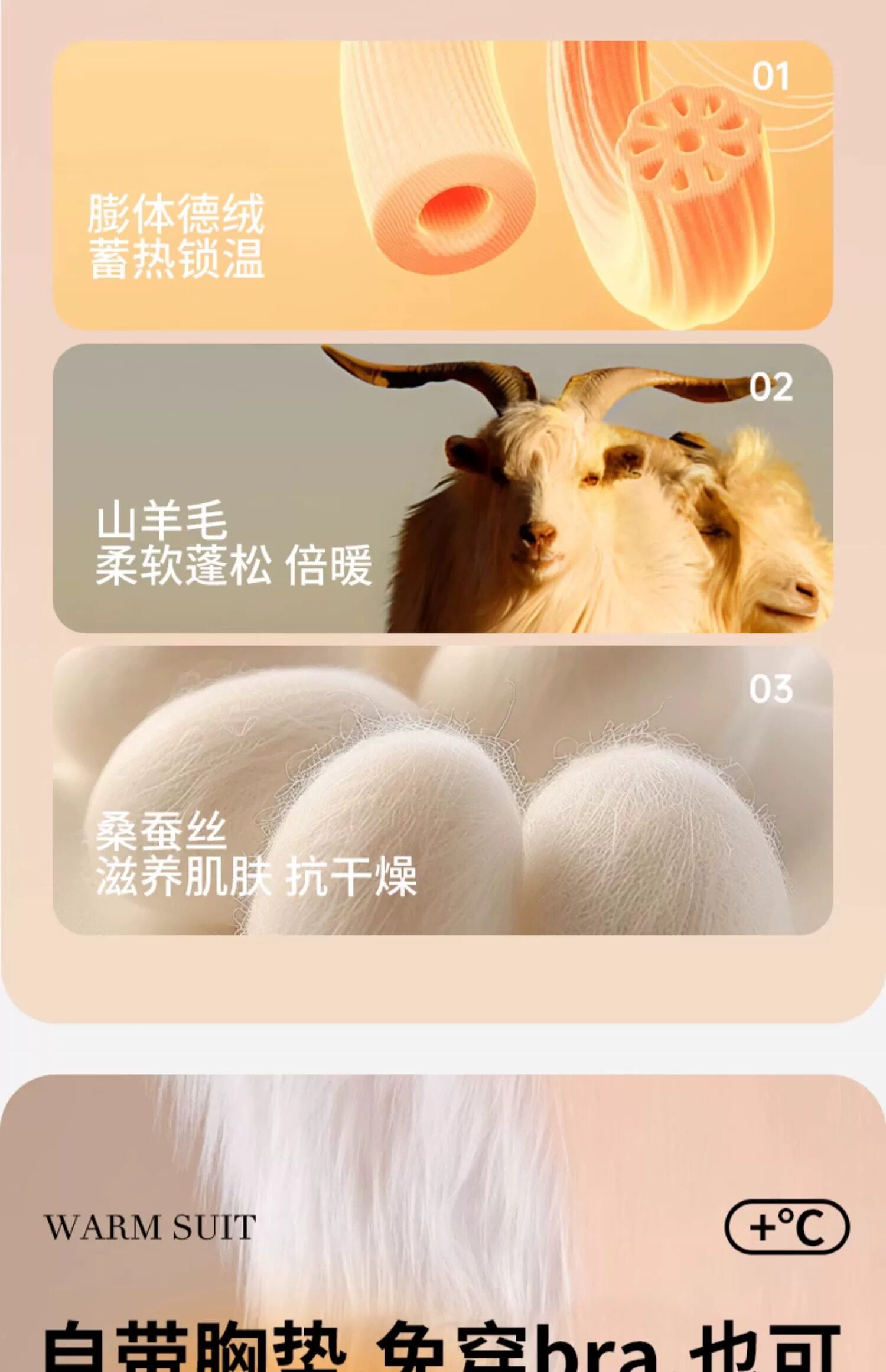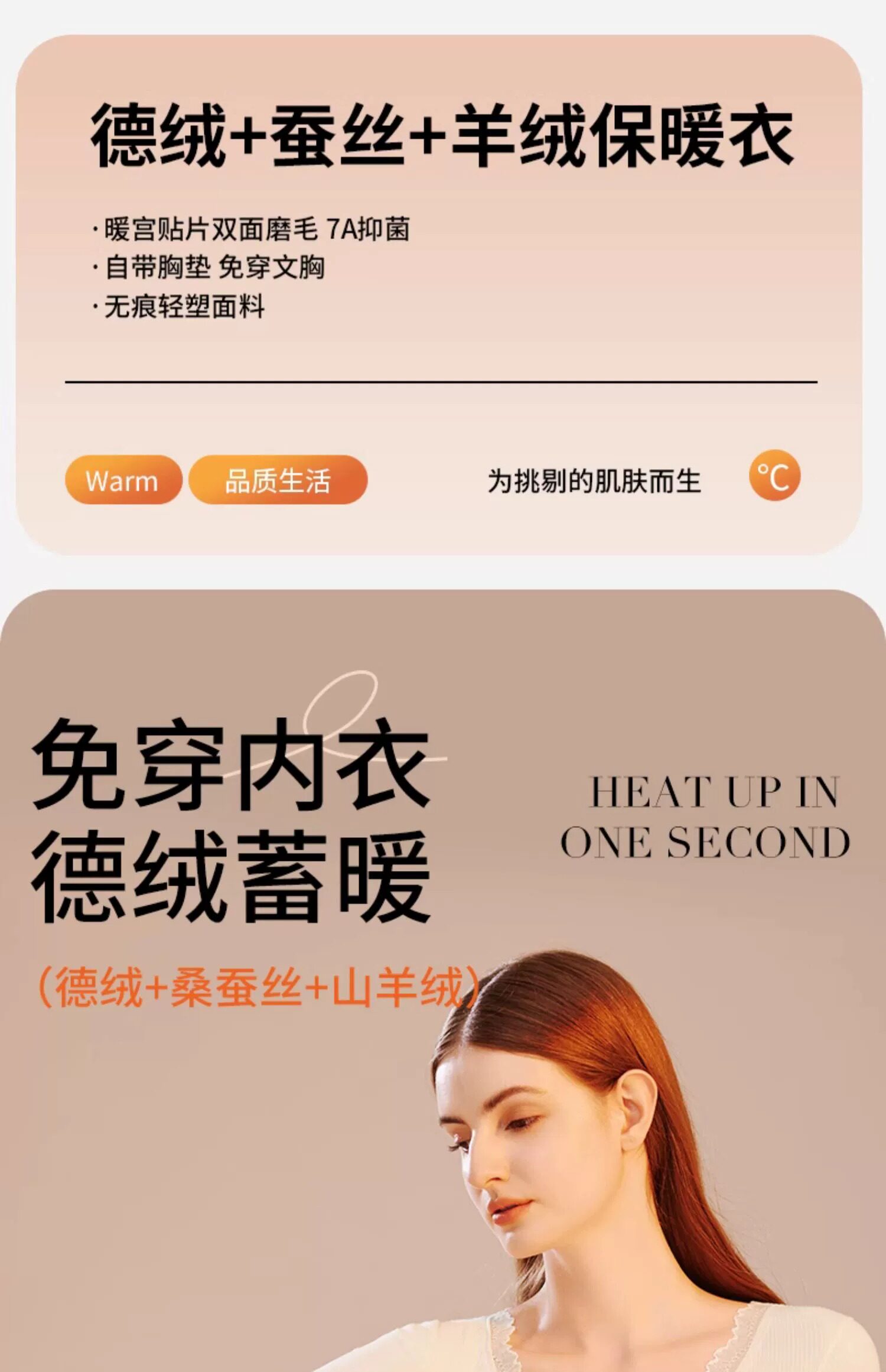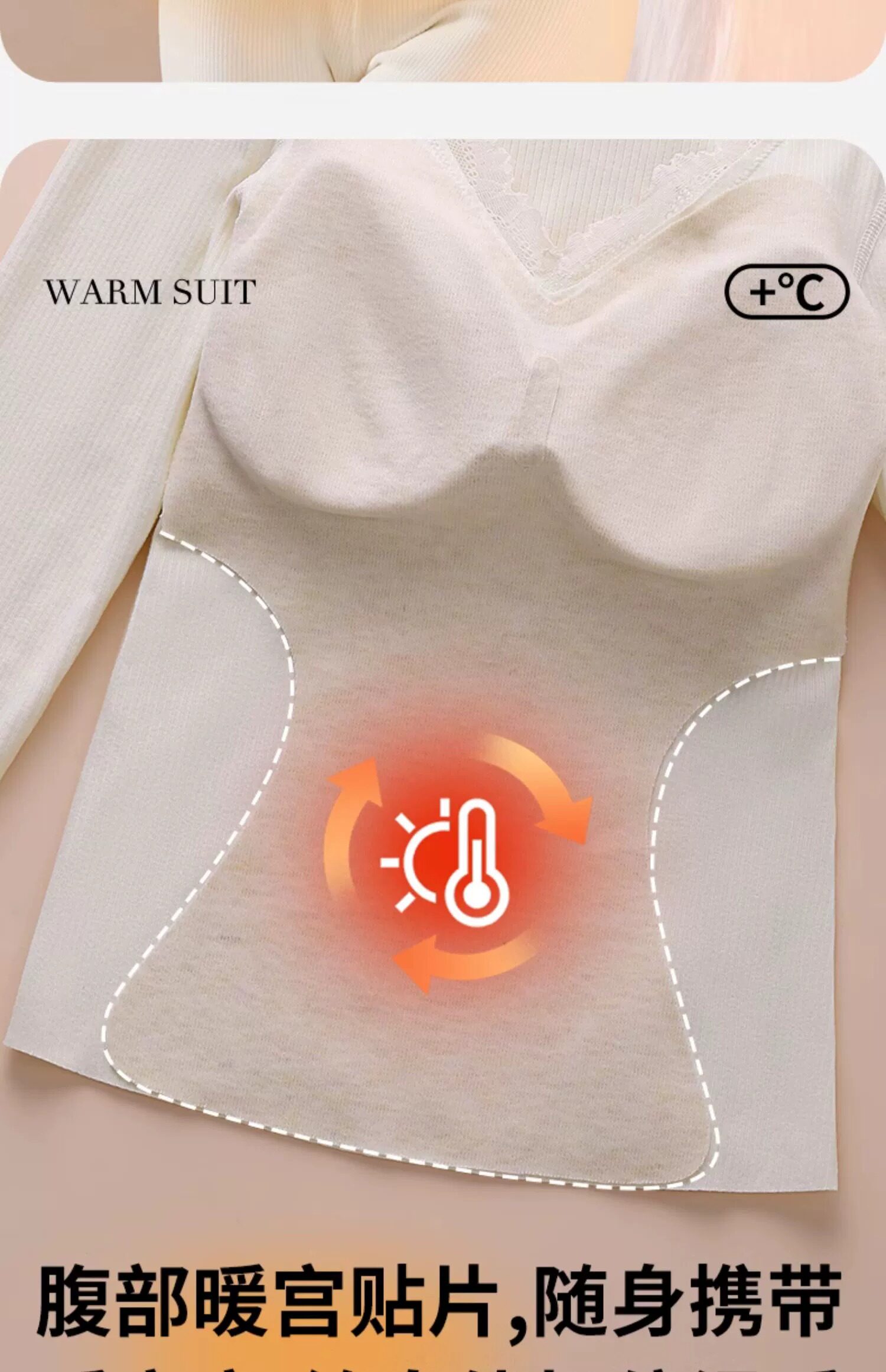 帶胸墊羊絨蠶絲保暖內衣套裝女秋冬髮熱秋衣秋褲蕾絲V領內搭打底