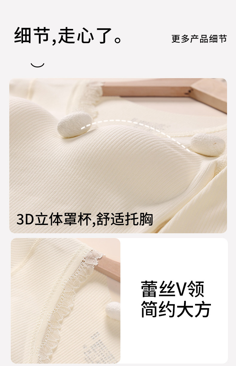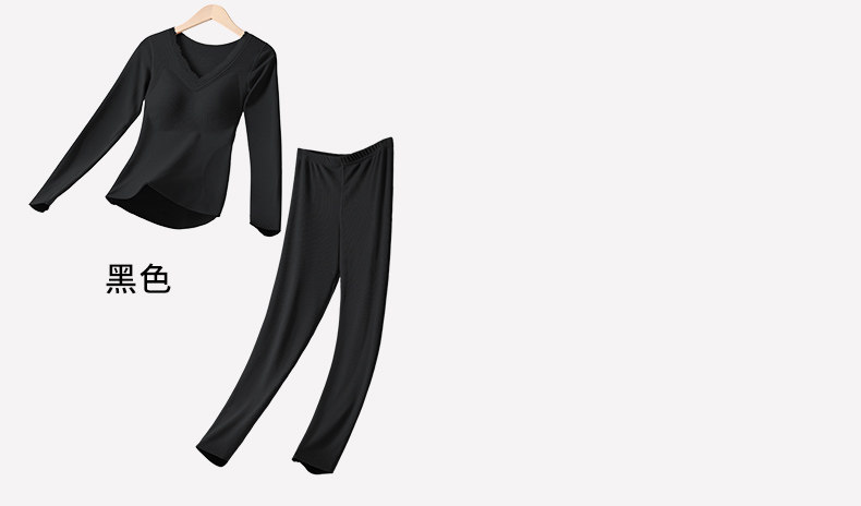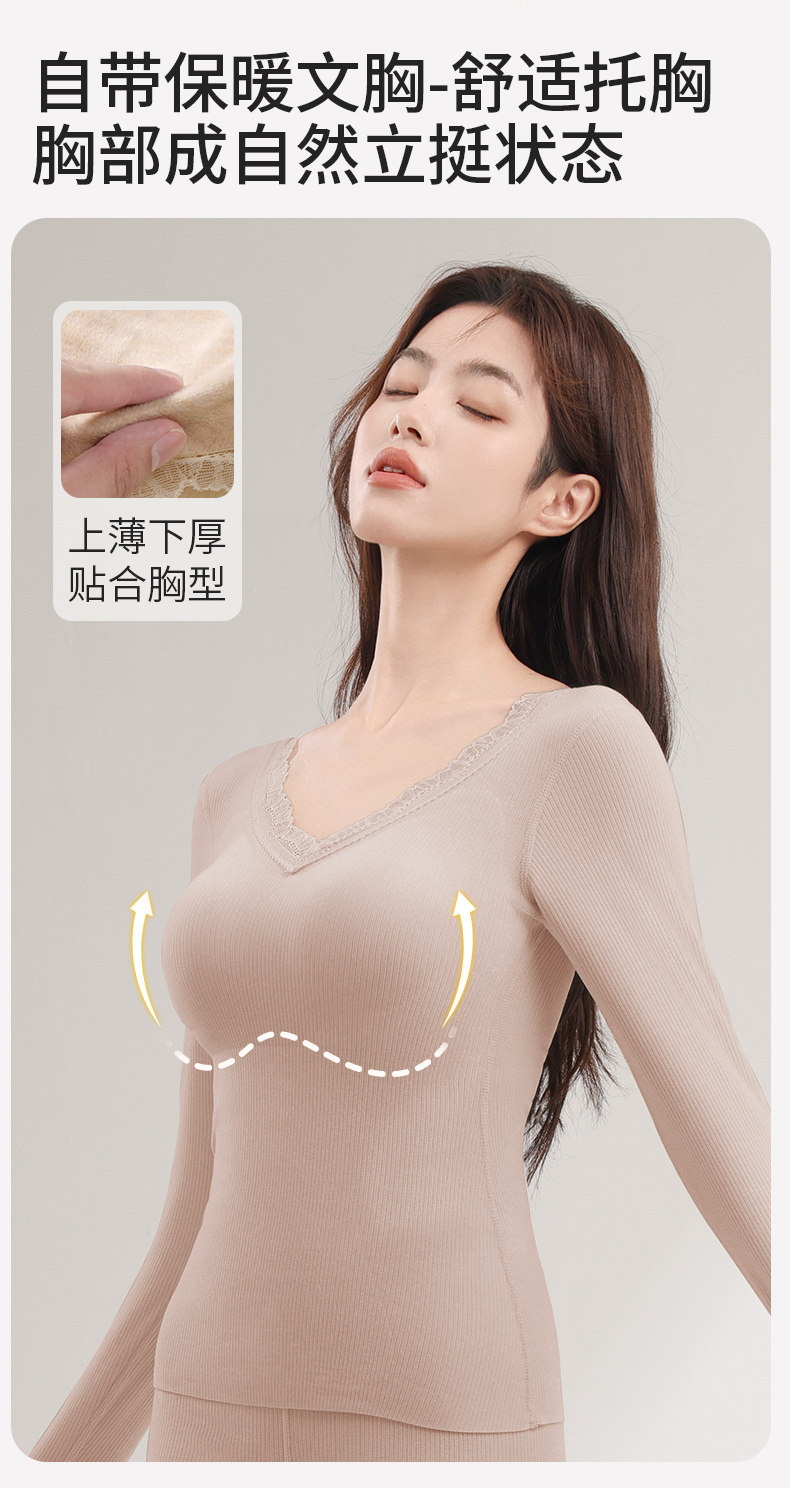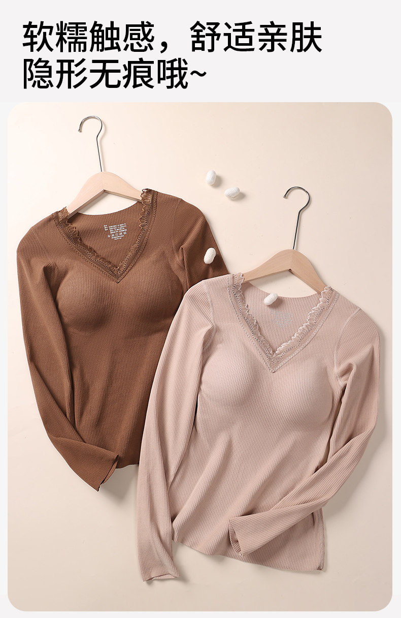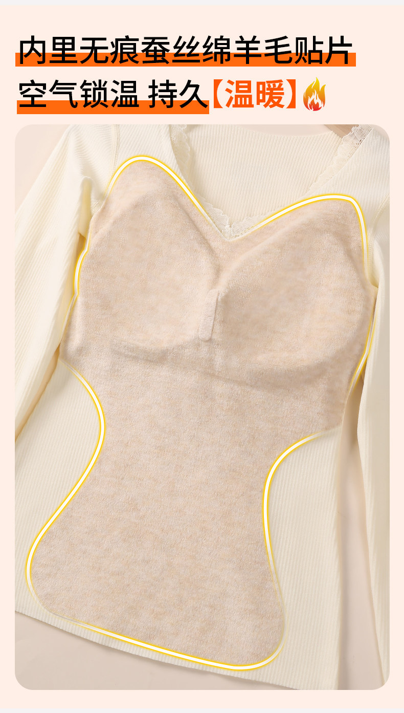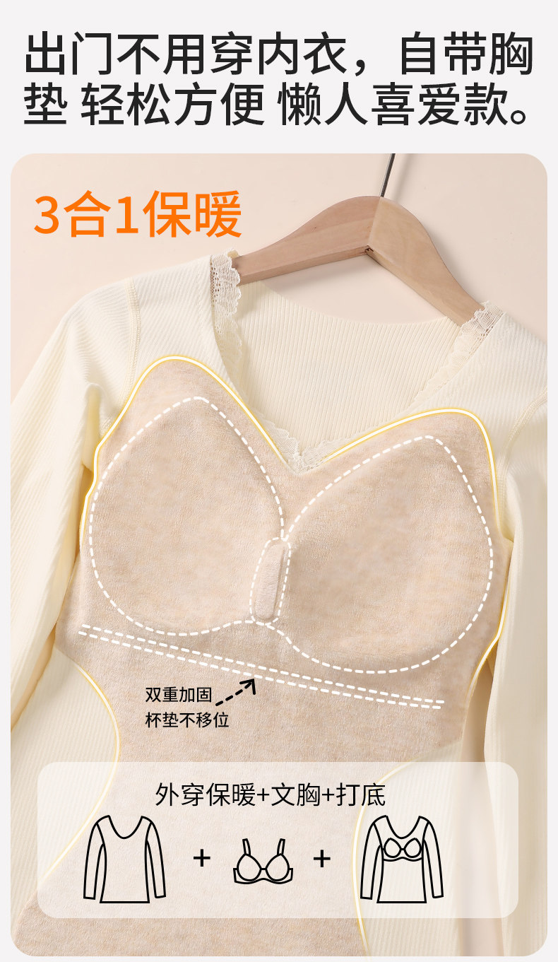 7A羊絨保暖內衣女款帶胸墊一體加絨加厚內搭上衣外穿秋衣秋褲套裝