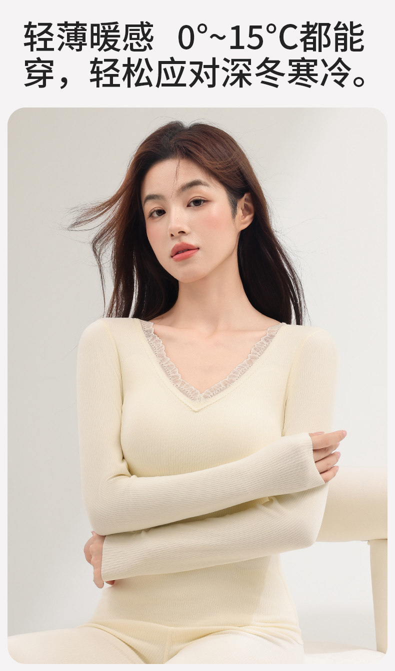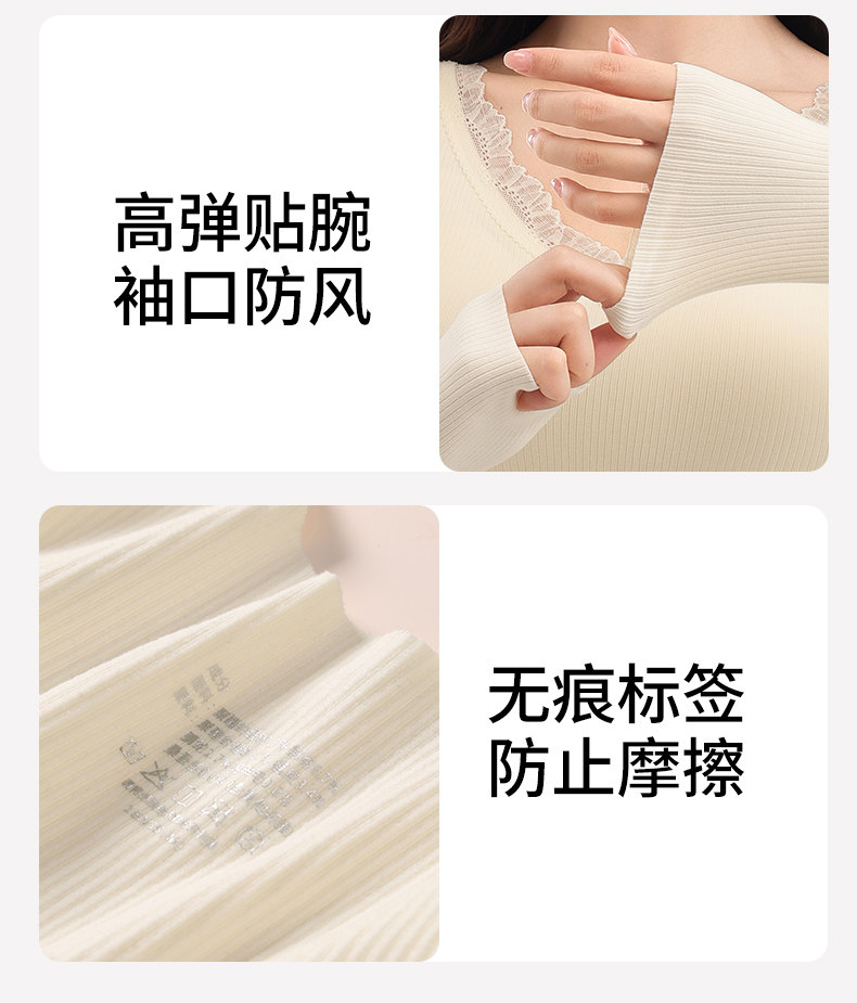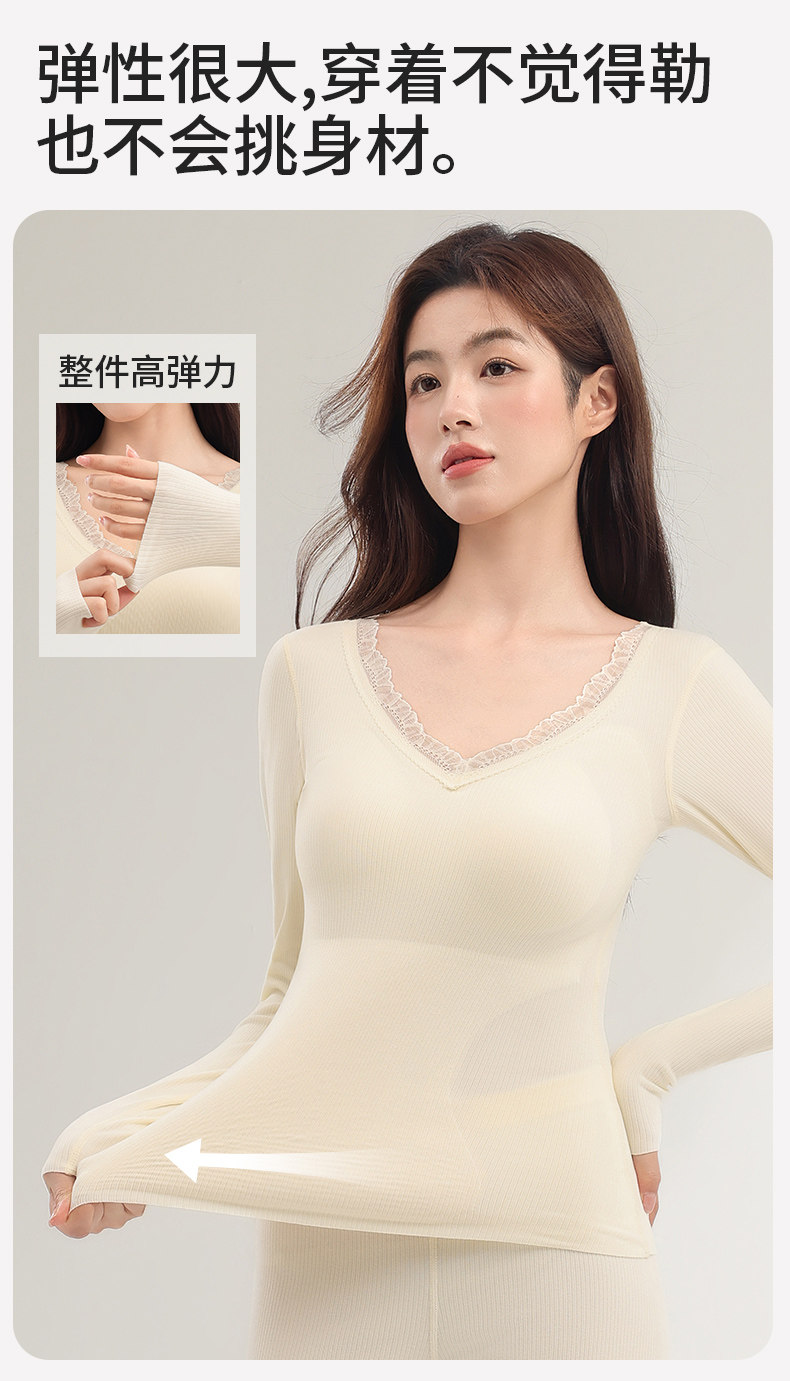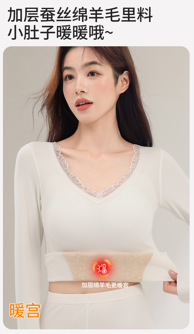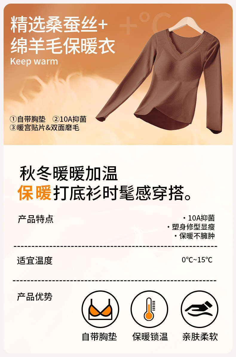 7A羊絨保暖內衣女款帶胸墊一體加絨加厚內搭上衣外穿秋衣秋褲套裝