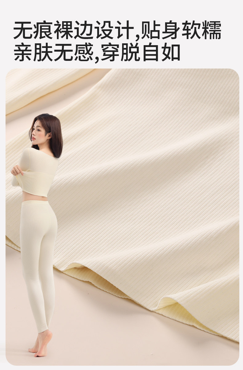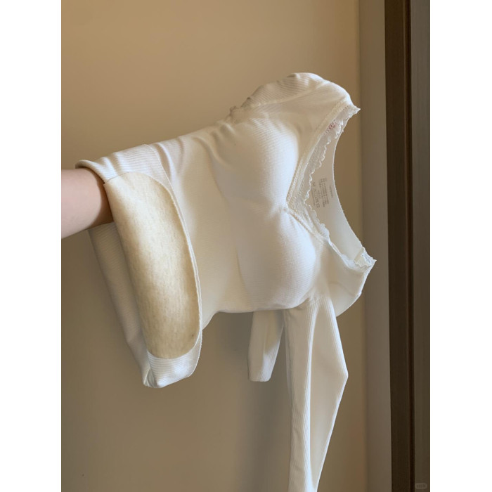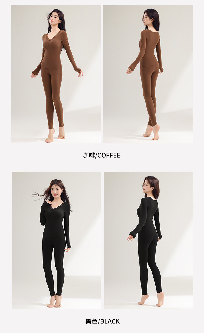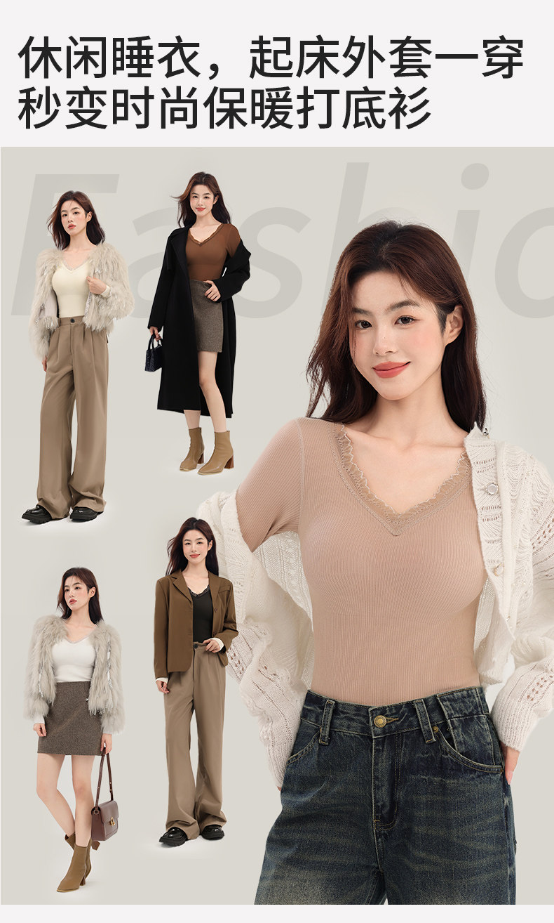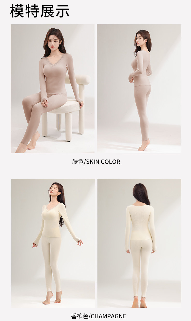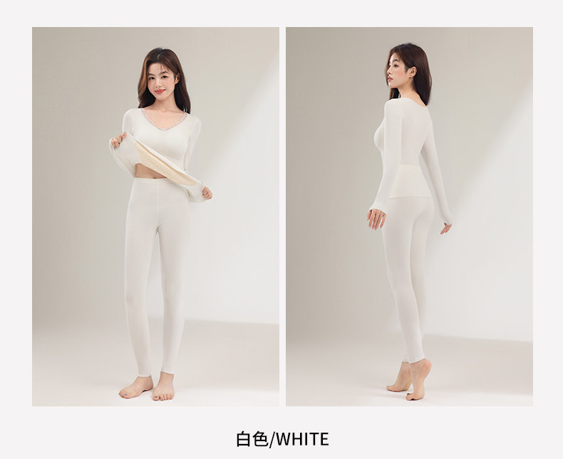 7A羊絨保暖內衣女款帶胸墊一體加絨加厚內搭上衣外穿秋衣秋褲套裝