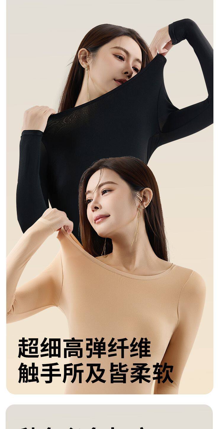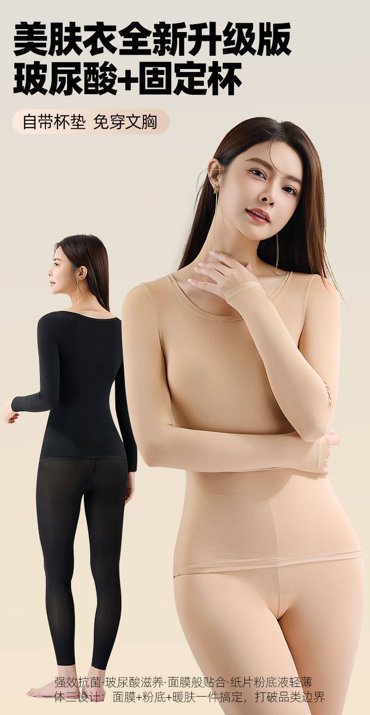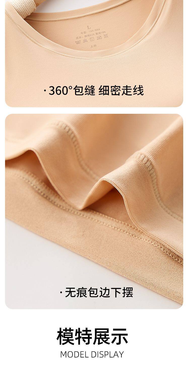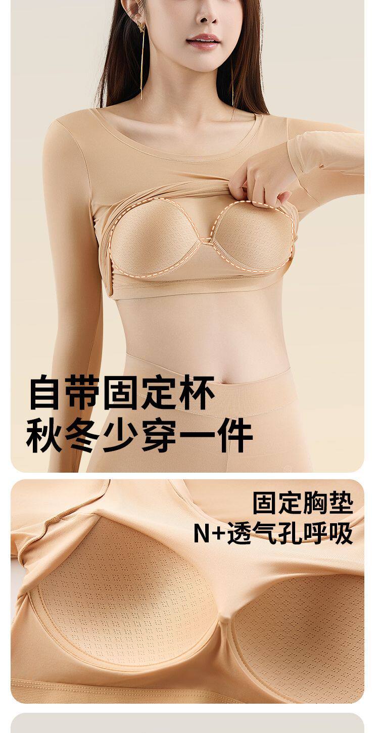 帶胸墊美膚肌底衣女無痕秋衣秋褲套裝秋冬打底衫免穿文胸保暖內衣