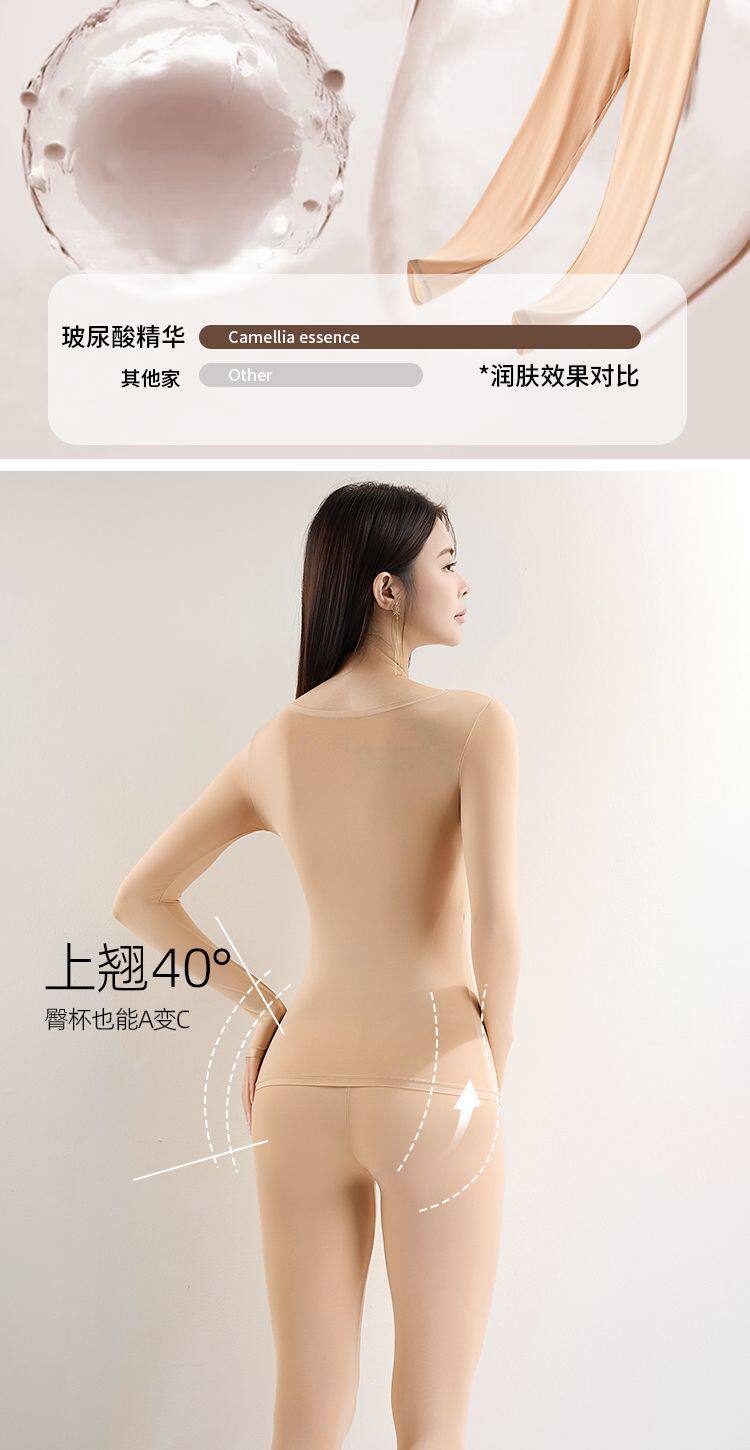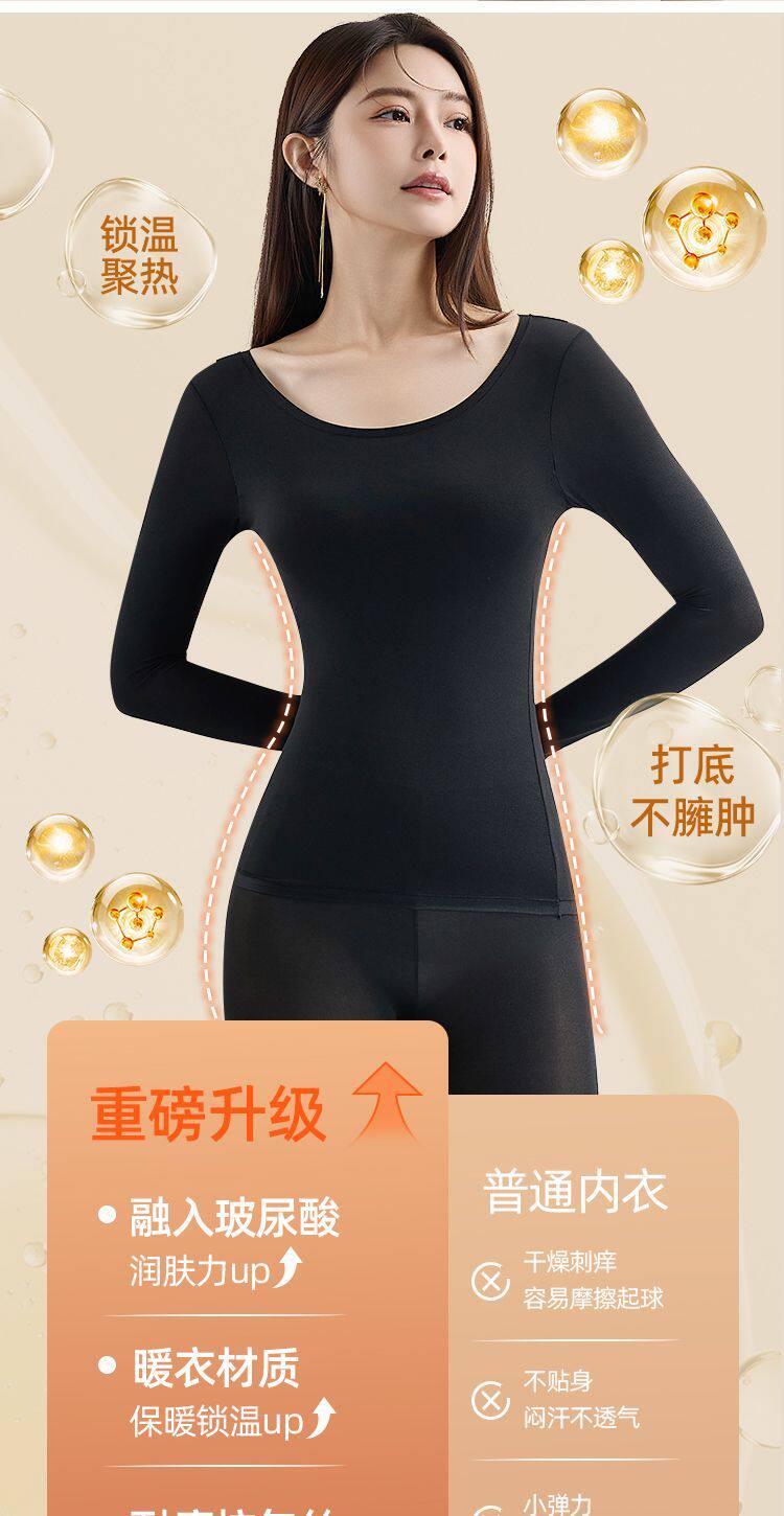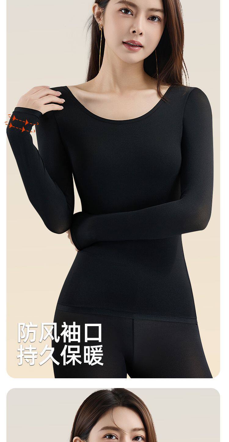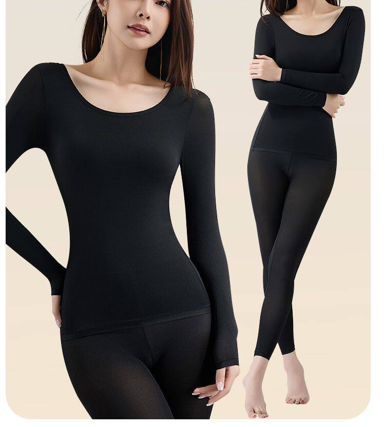 帶胸墊美膚肌底衣女無痕秋衣秋褲套裝秋冬打底衫免穿文胸保暖內衣