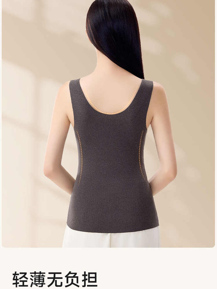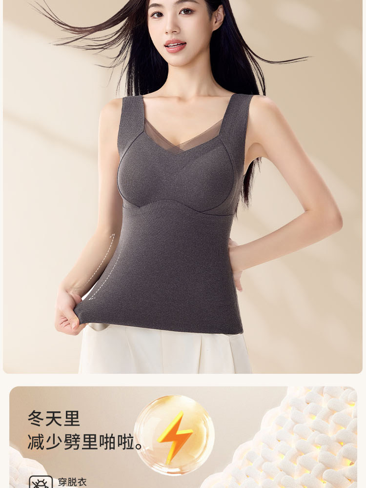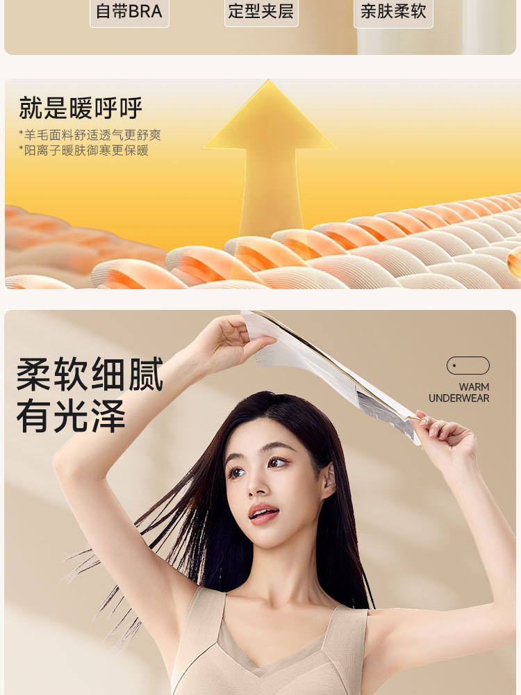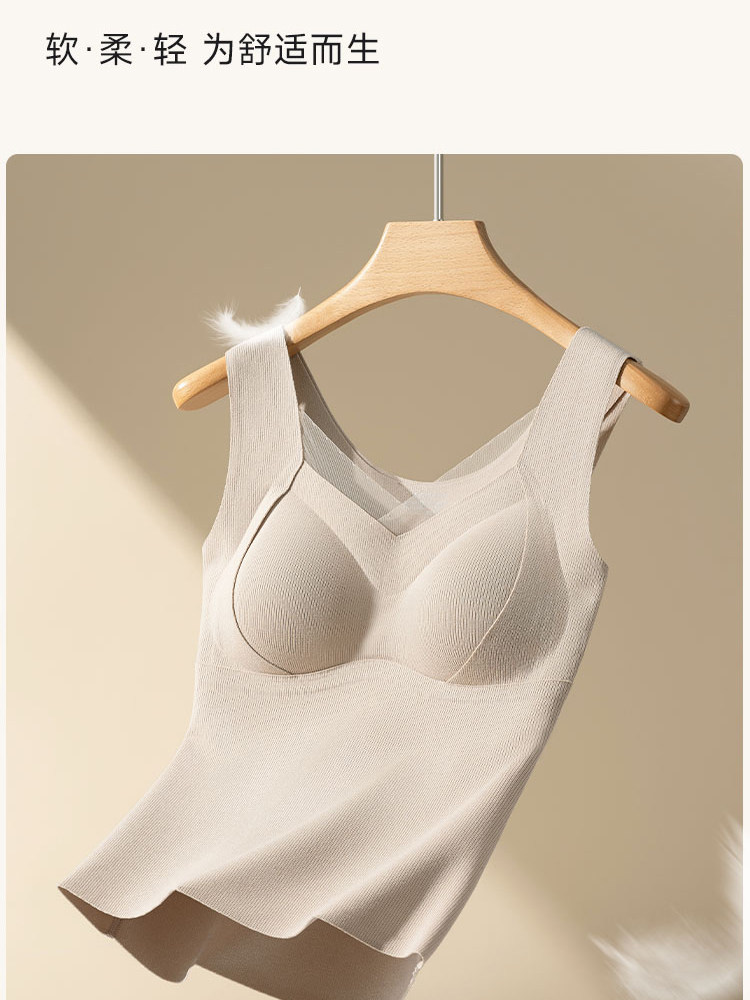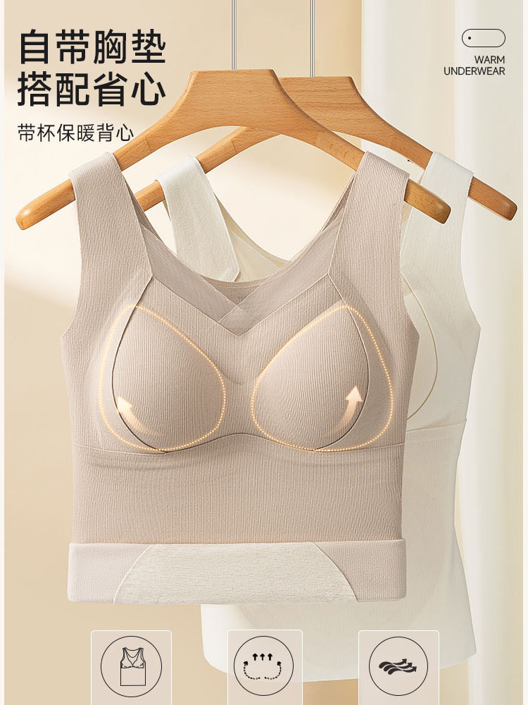 貓人保暖內衣女士帶胸墊羊毛蠶絲背心加絨加厚無痕秋冬季打底上衣