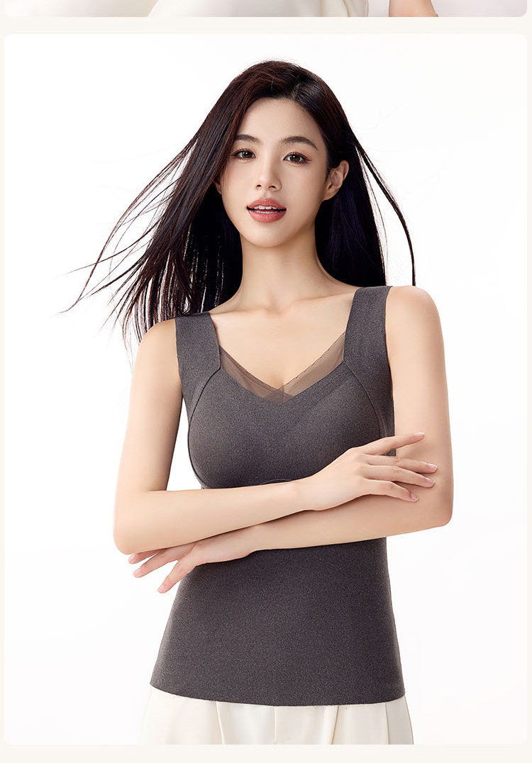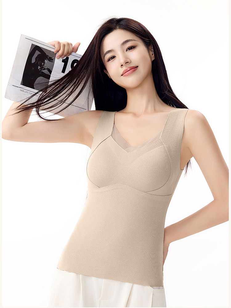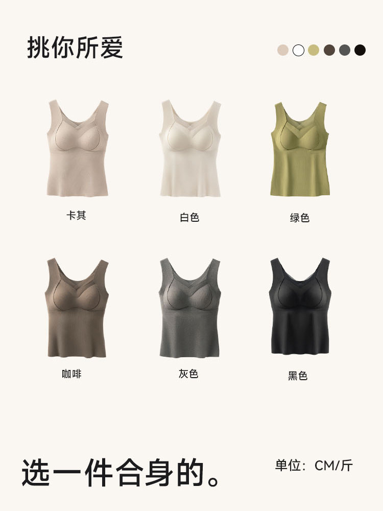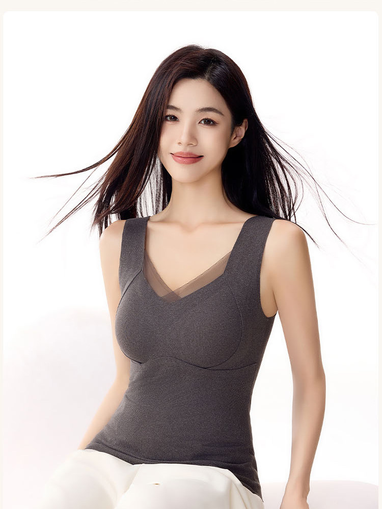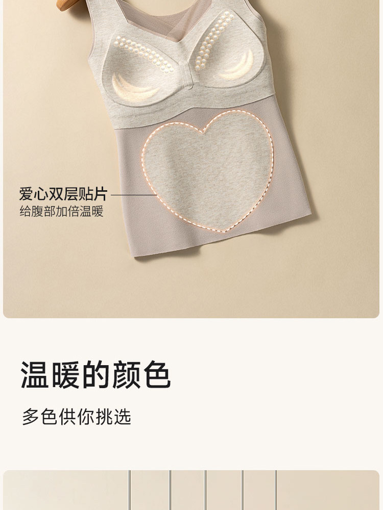 貓人保暖內衣女士帶胸墊羊毛蠶絲背心加絨加厚無痕秋冬季打底上衣