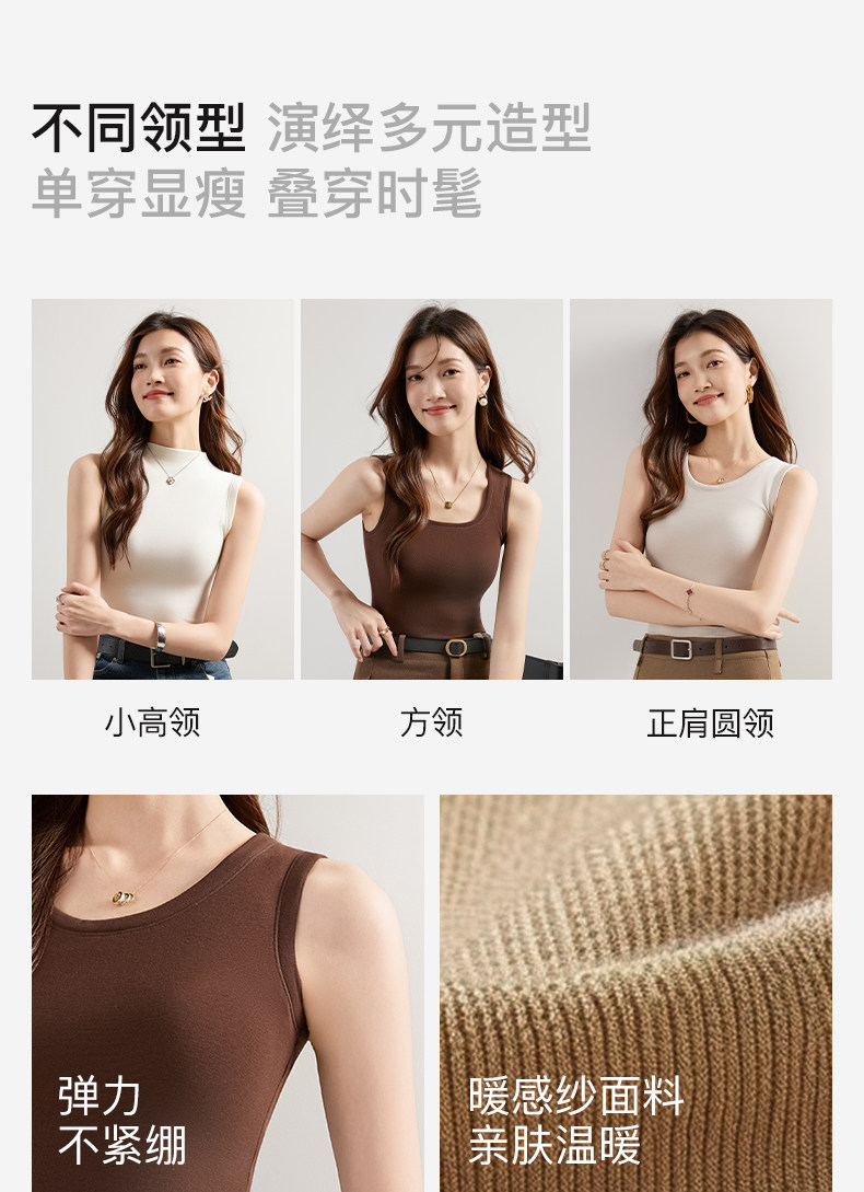 貓人白色羊毛保暖背心女款內搭無痕打底2025秋冬遮副乳顯瘦上衣新