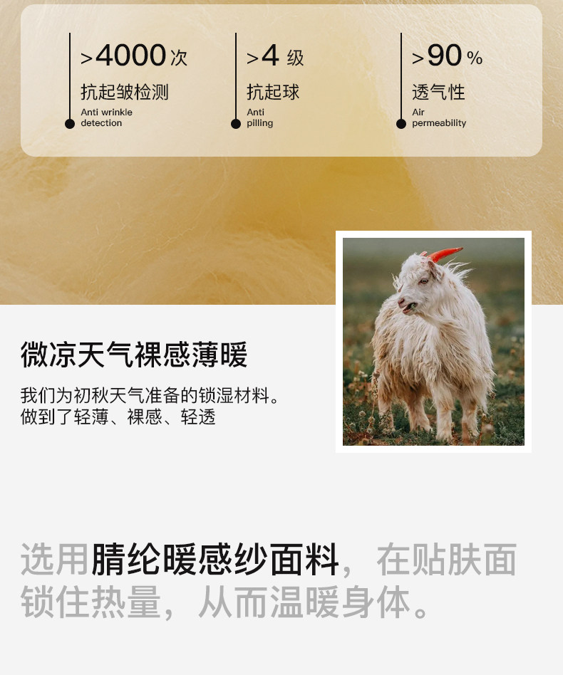 面料材質成分 粘膠纖維(粘纖)42.5% 聚丙烯腈纖維(腈綸)29.5% 萊賽爾纖維(萊賽爾)16.6% 聚氨酯彈性纖維(氨綸)7.5% 綿羊毛3.9%