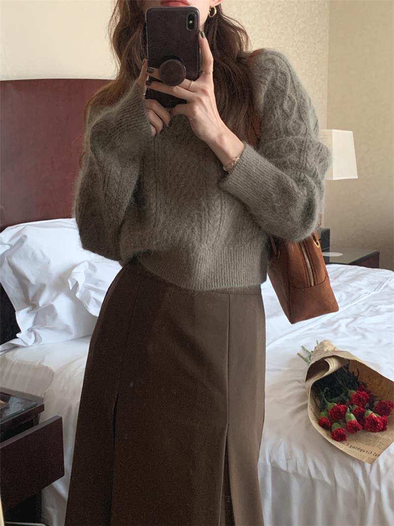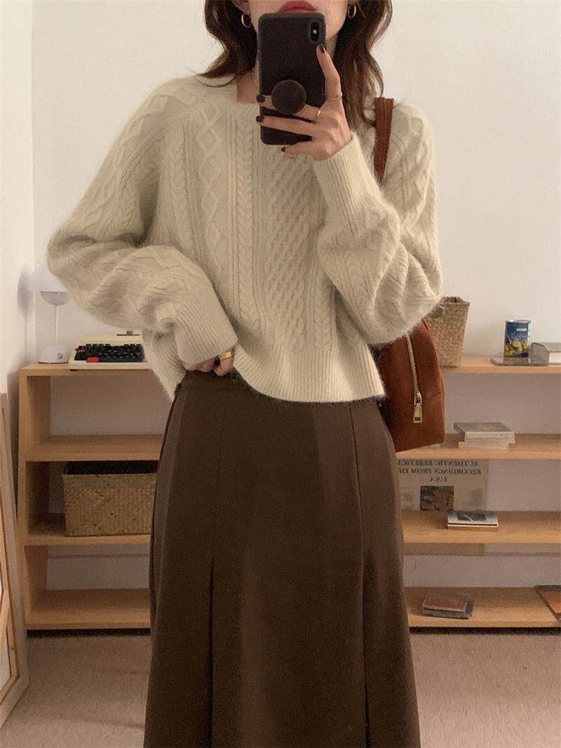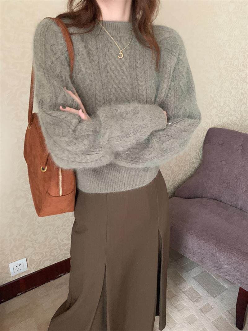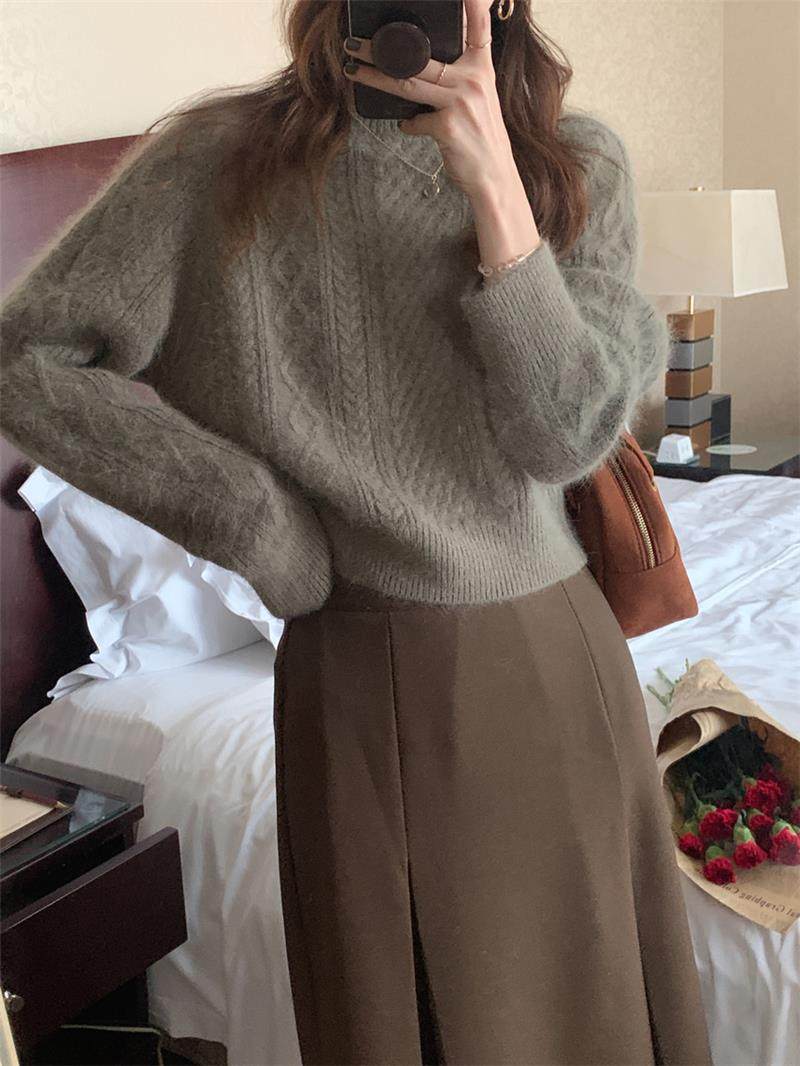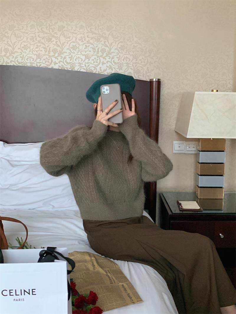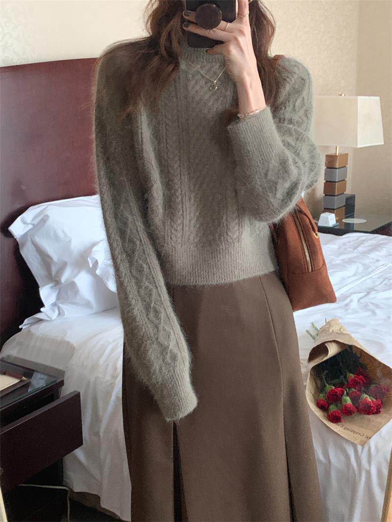 馬海毛麻花毛衣女秋冬新款復古慵懶風加厚仿浣熊絨短款上衣針織衫