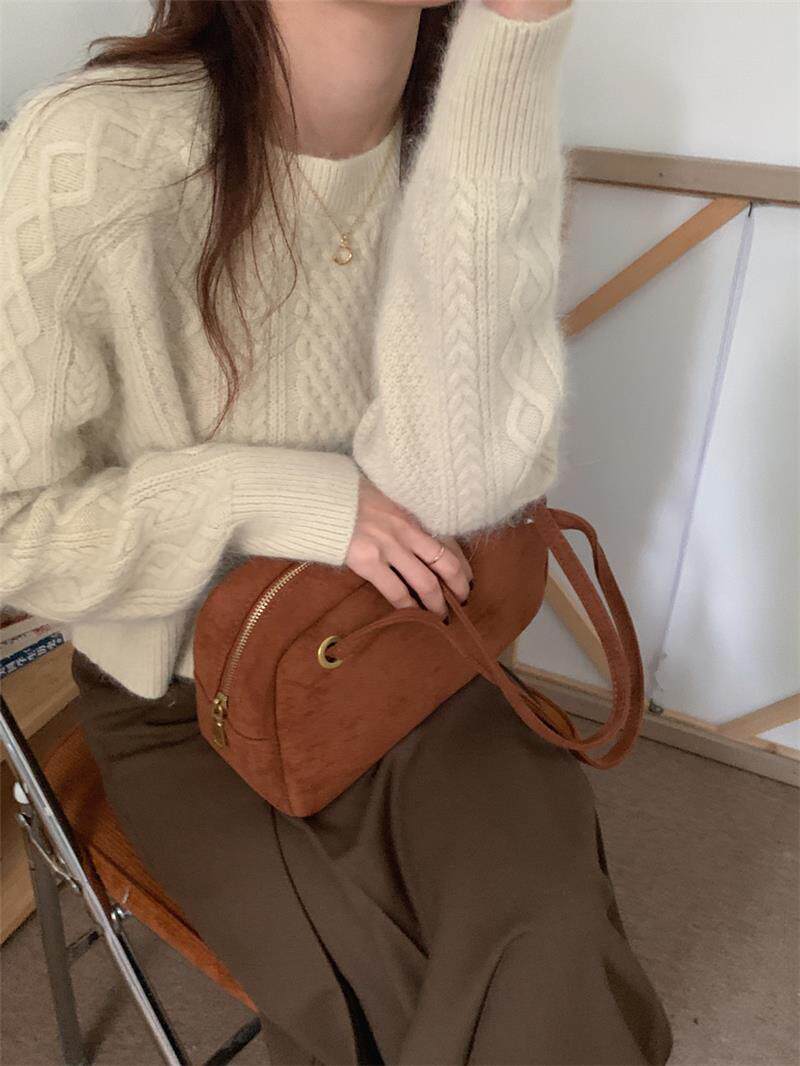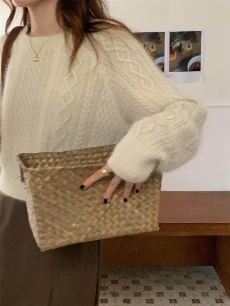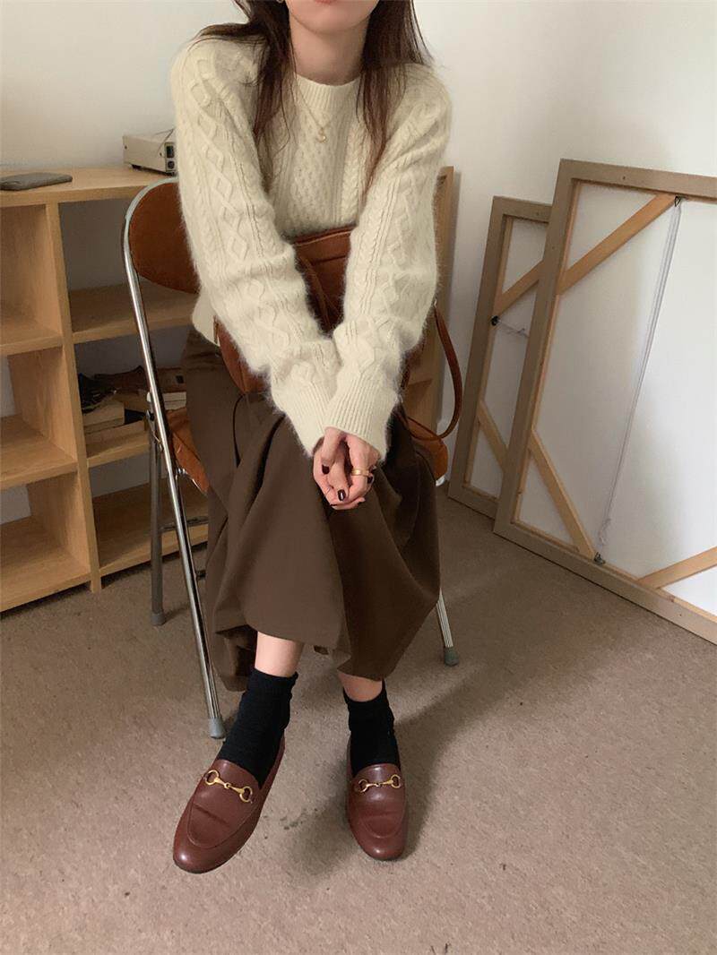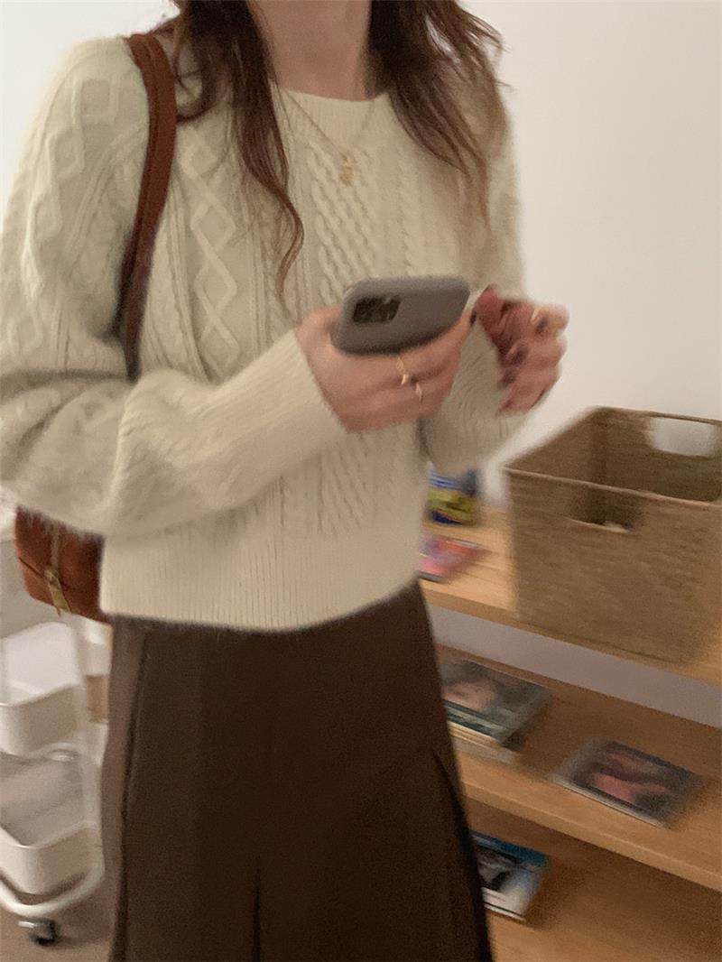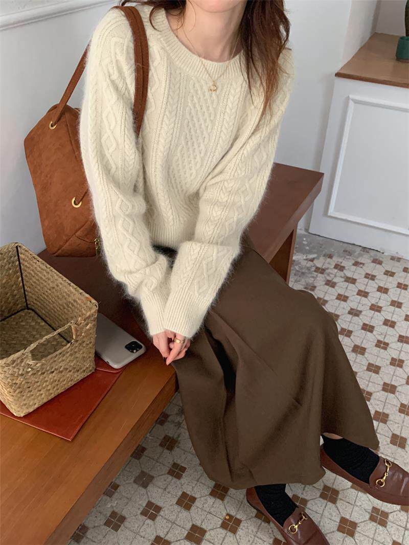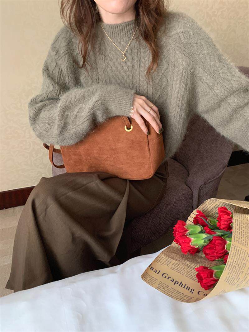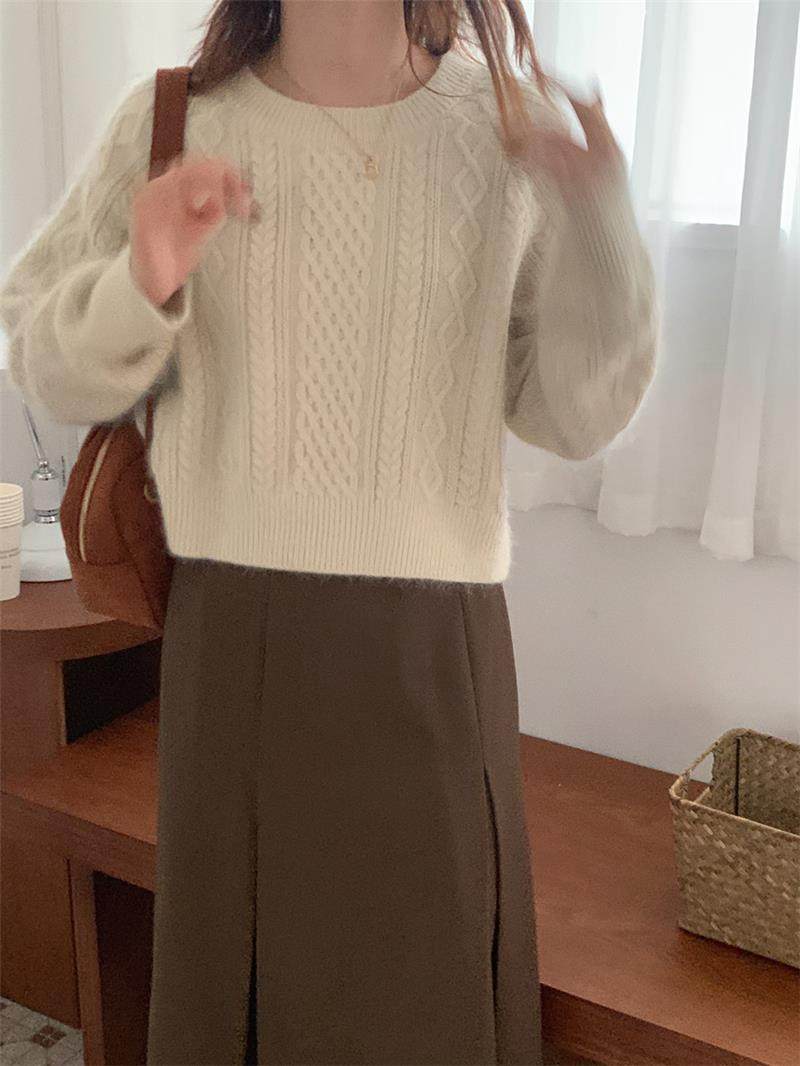 馬海毛麻花毛衣女秋冬新款復古慵懶風加厚仿浣熊絨短款上衣針織衫