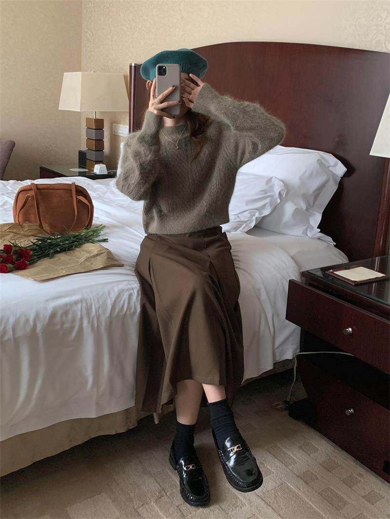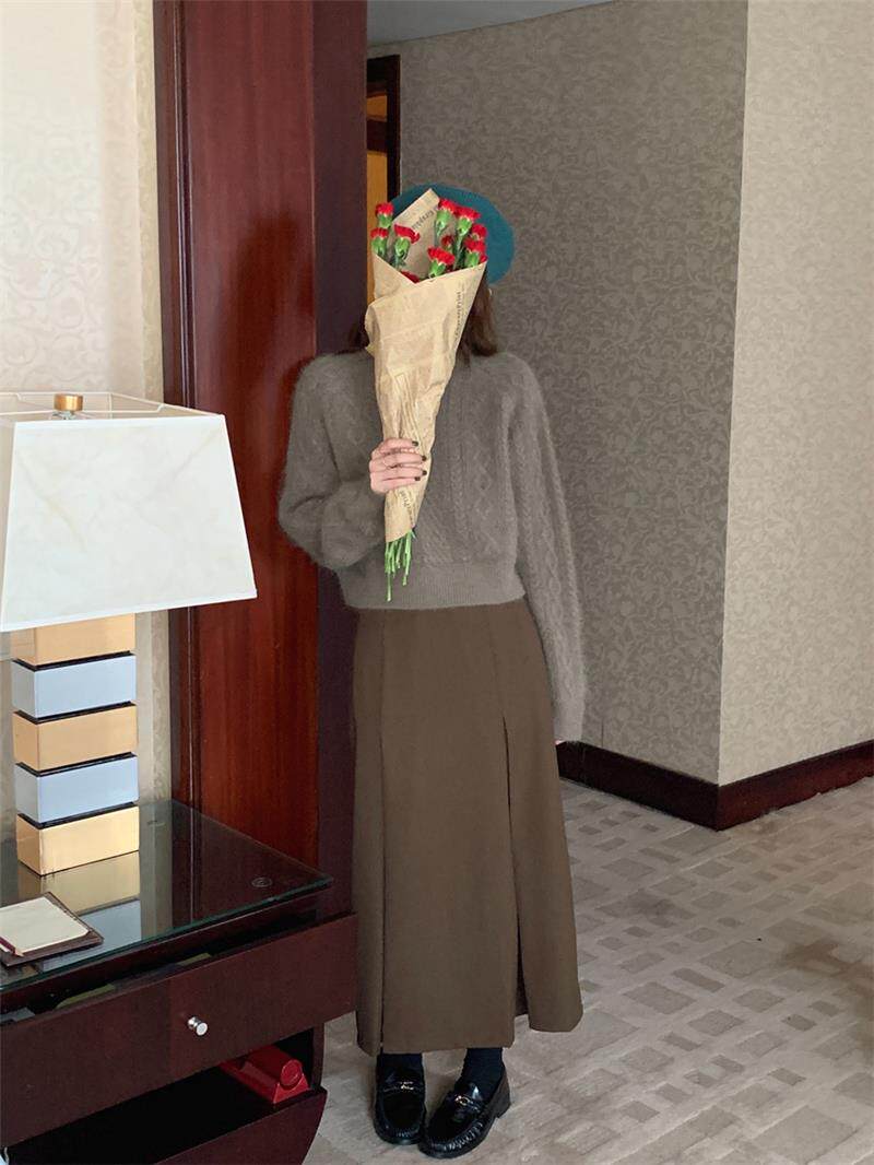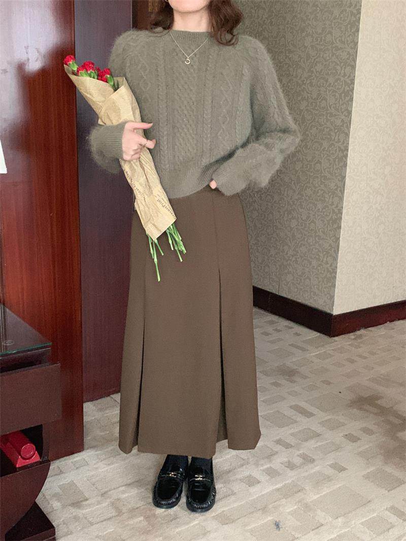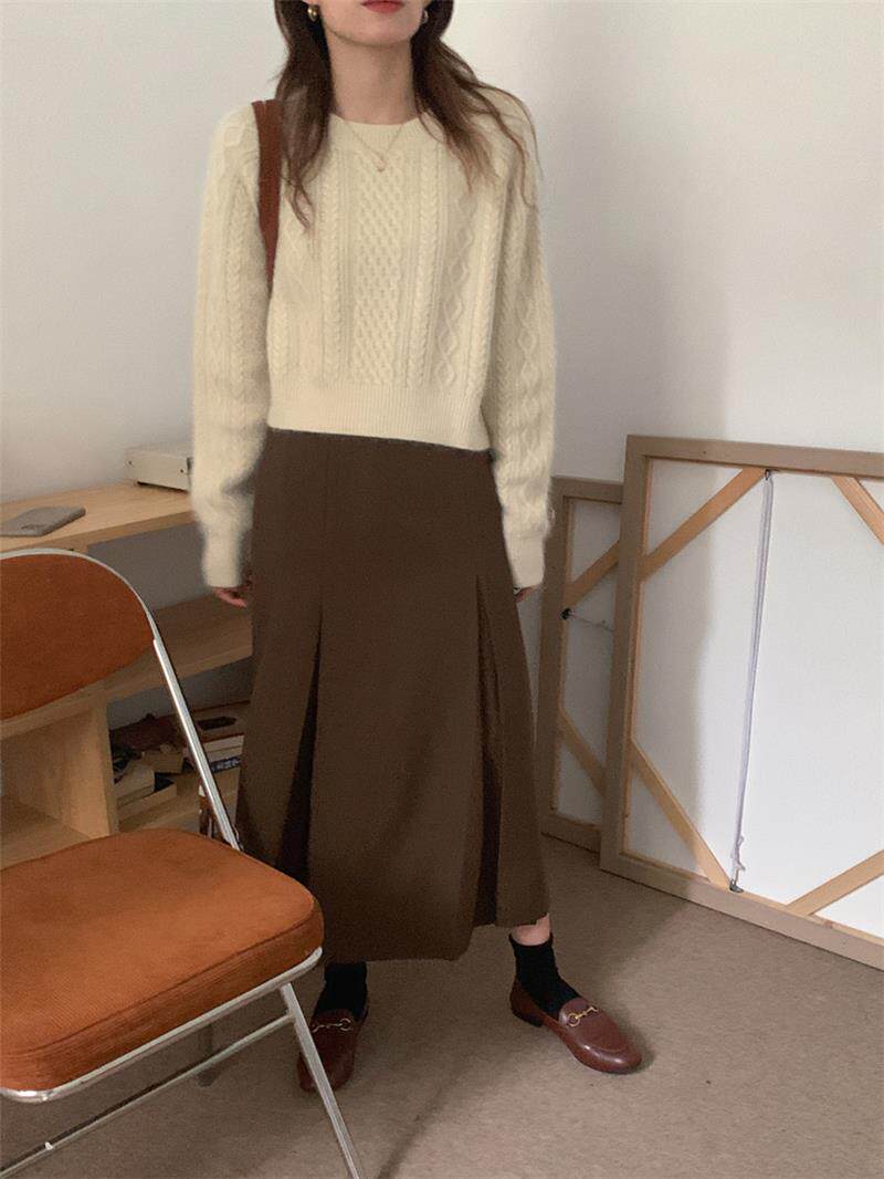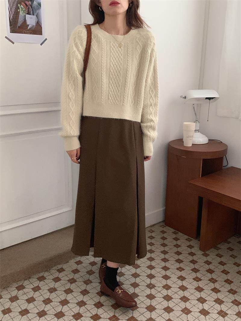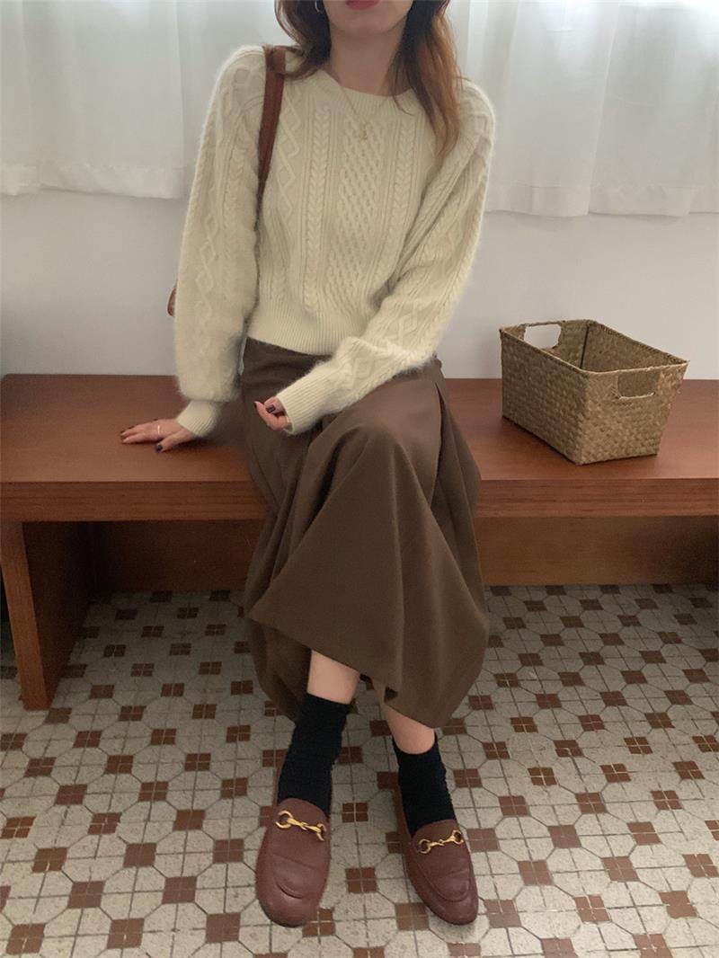 馬海毛麻花毛衣女秋冬新款復古慵懶風加厚仿浣熊絨短款上衣針織衫