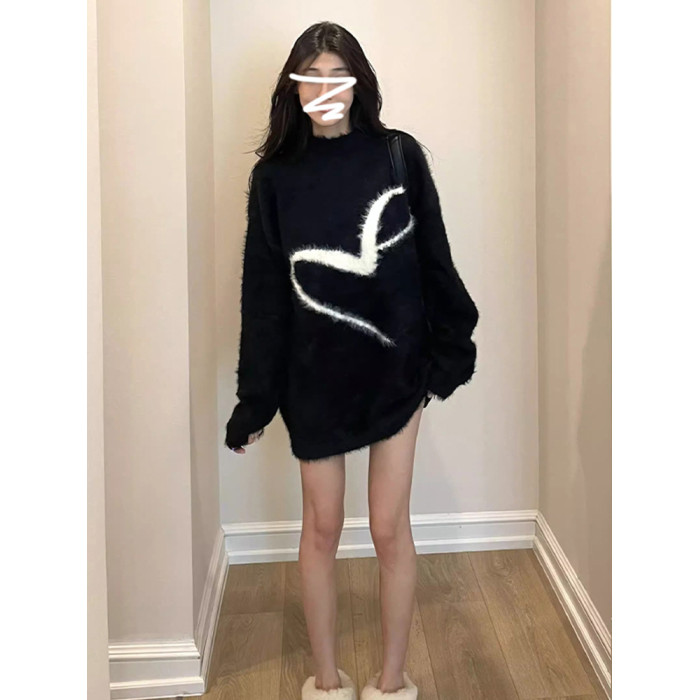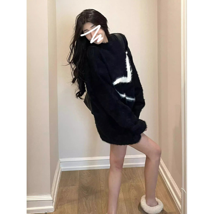 黑色仿馬海毛毛衣女秋冬內搭2025新款慵懶高級感寬松加厚針織上衣