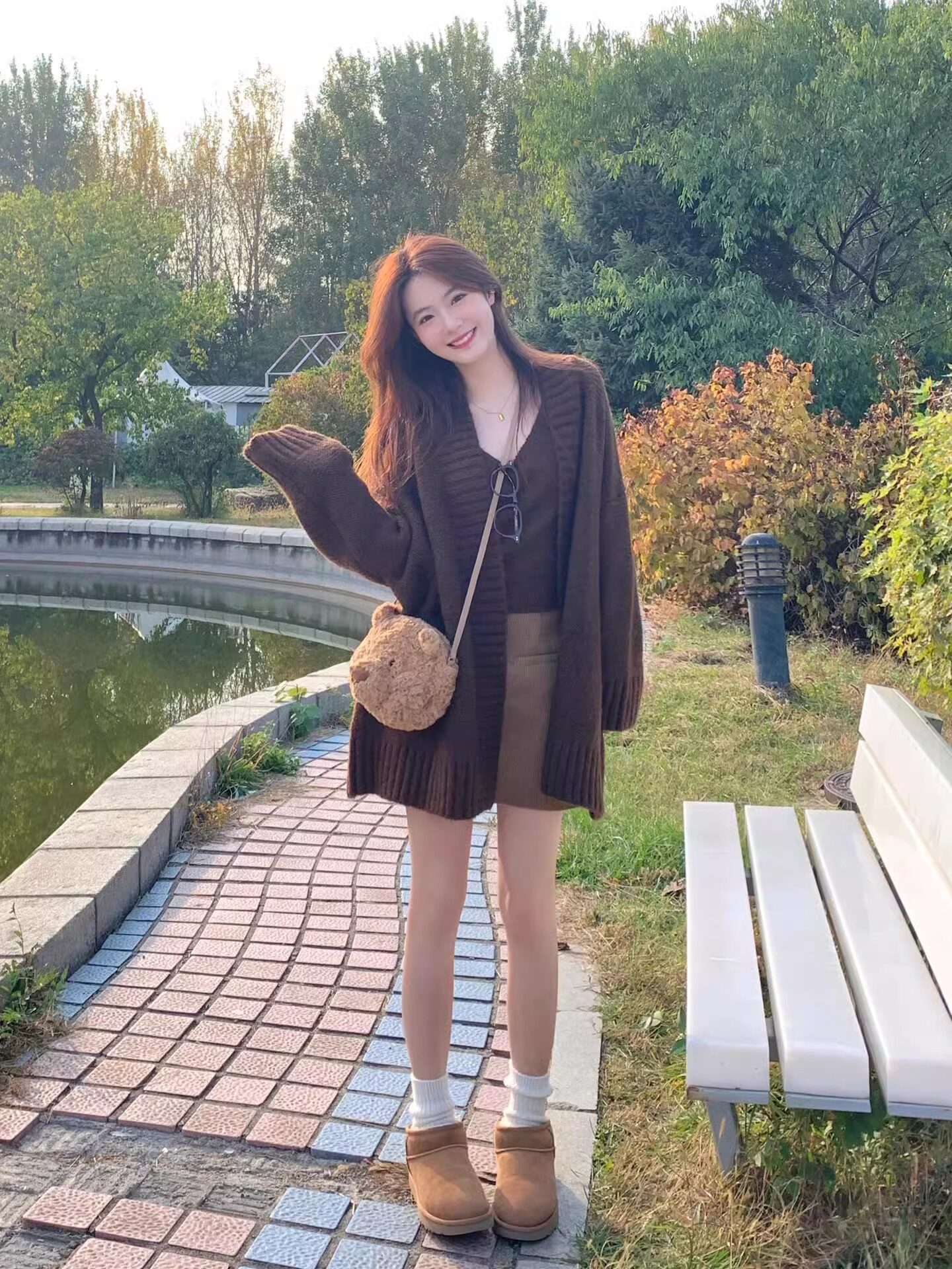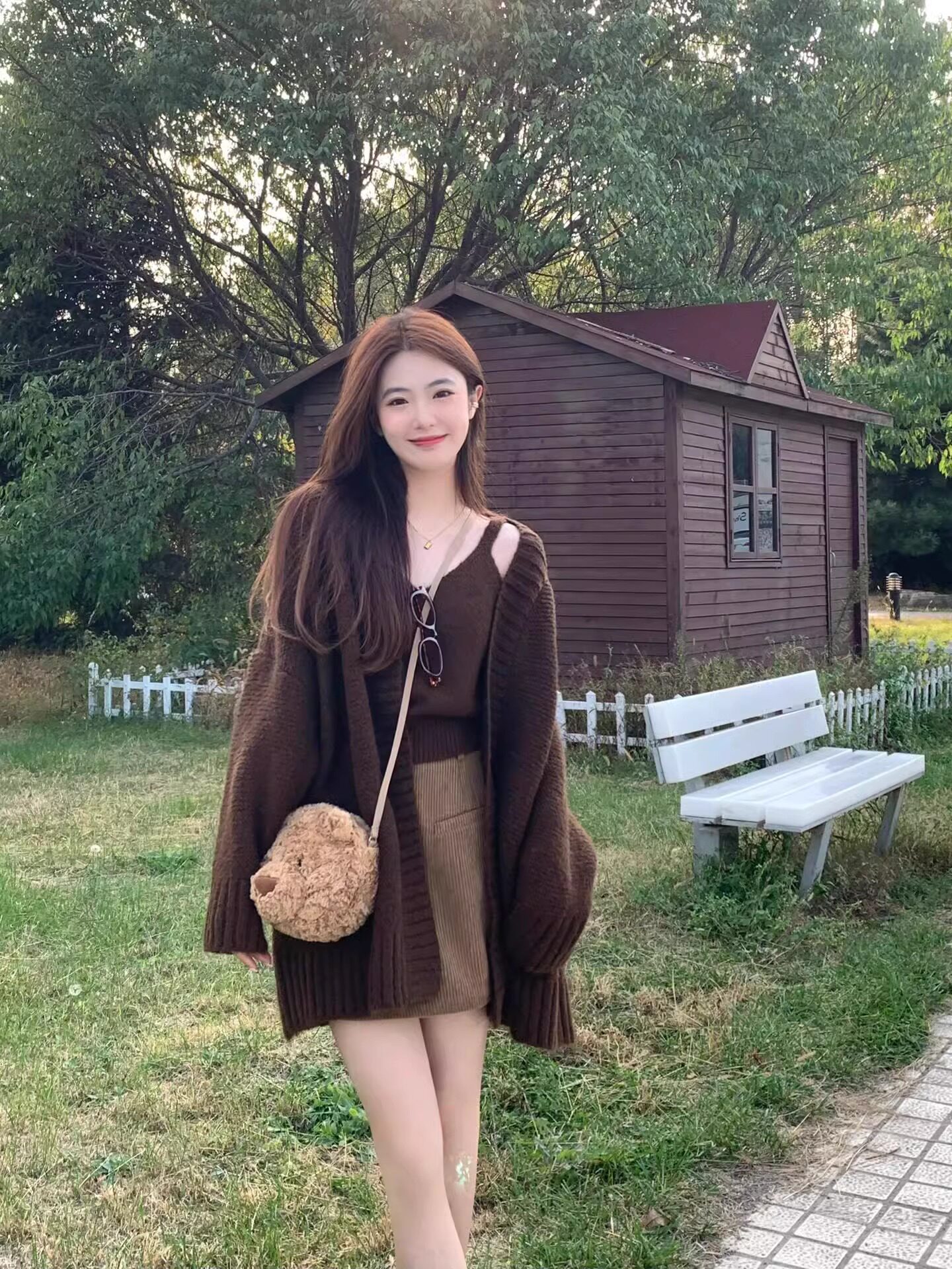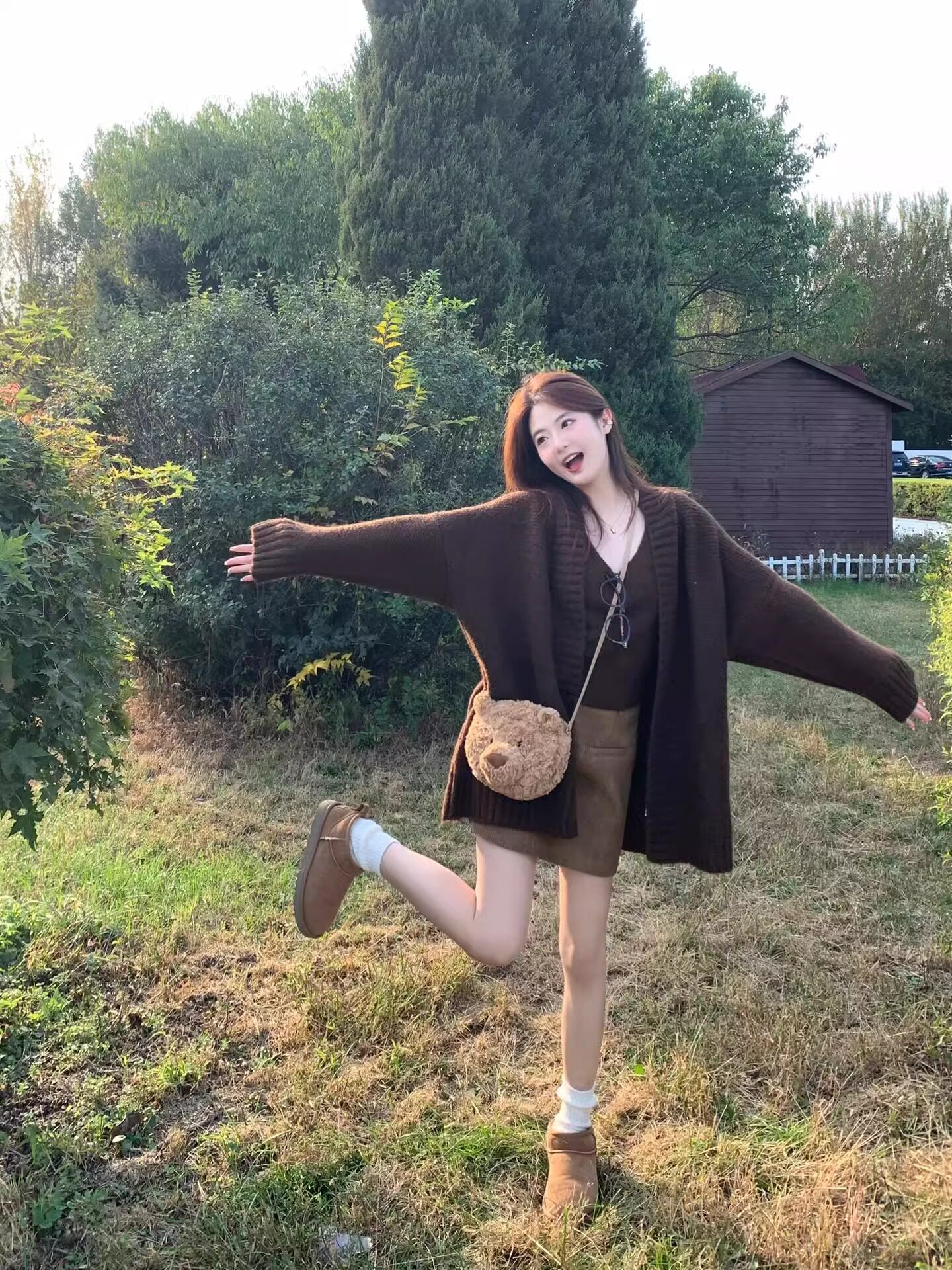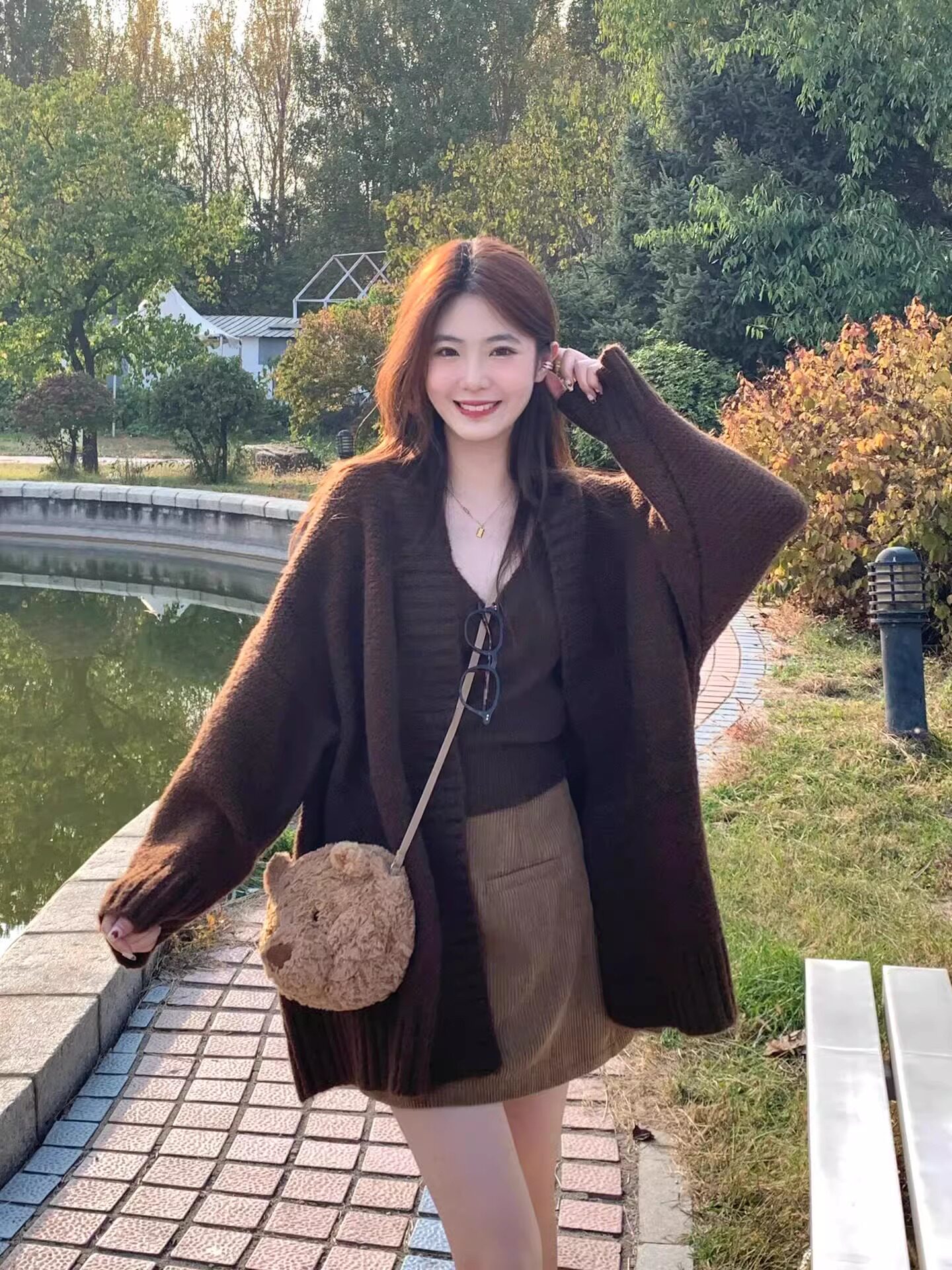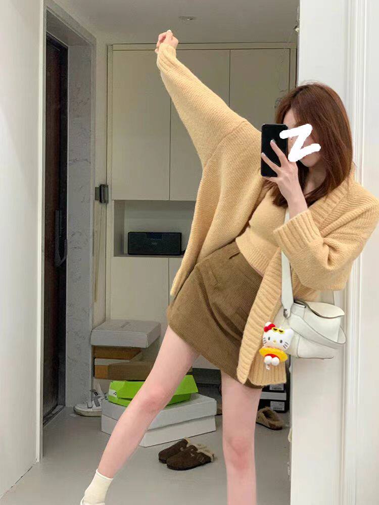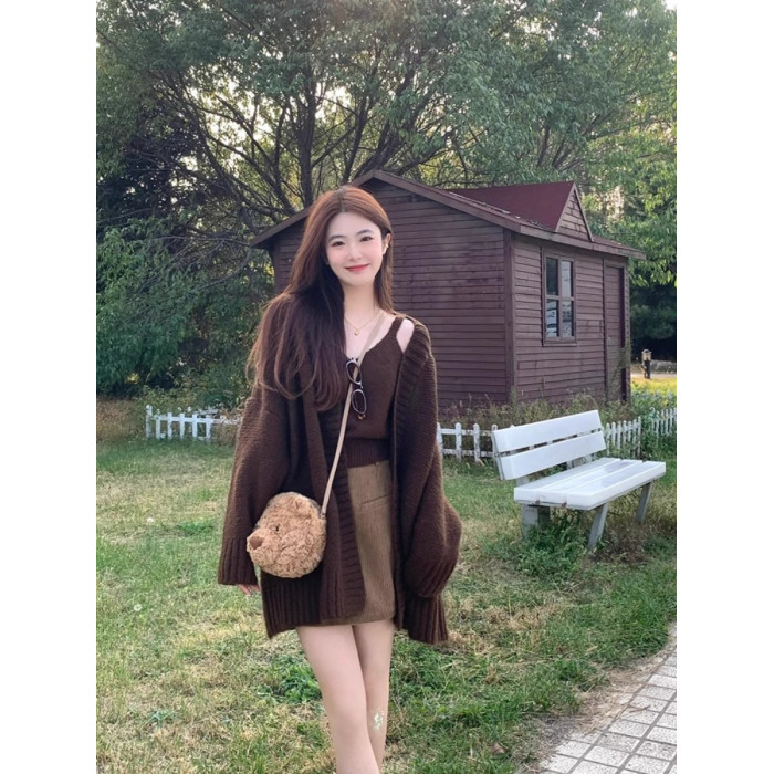 復古美拉德套裝慵懶風軟糯毛衣開衫女秋冬2025新款針織背心兩件套